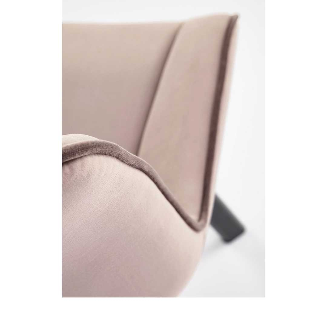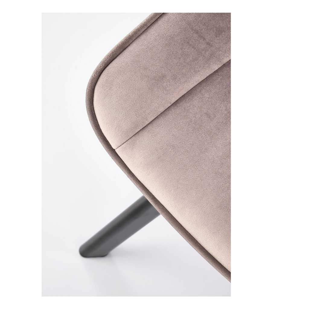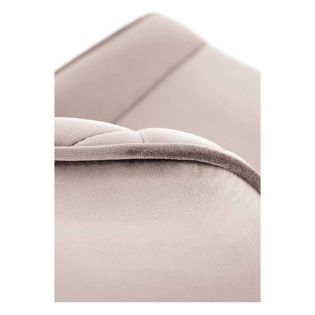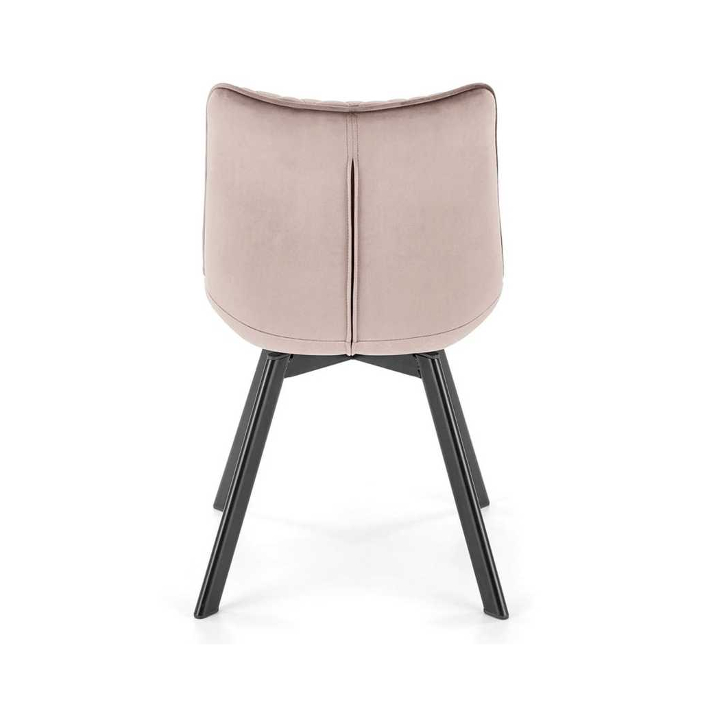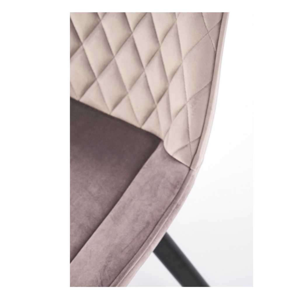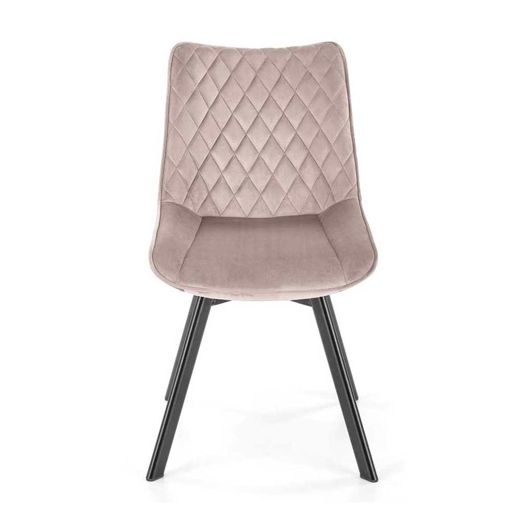Sedadlo je čalúnené mäkkou látkou s diamantovým vzorom na operadle. Tento vkusný dizajnový prvok zvýrazňuje inak minimalistický vzhľad stoličky.