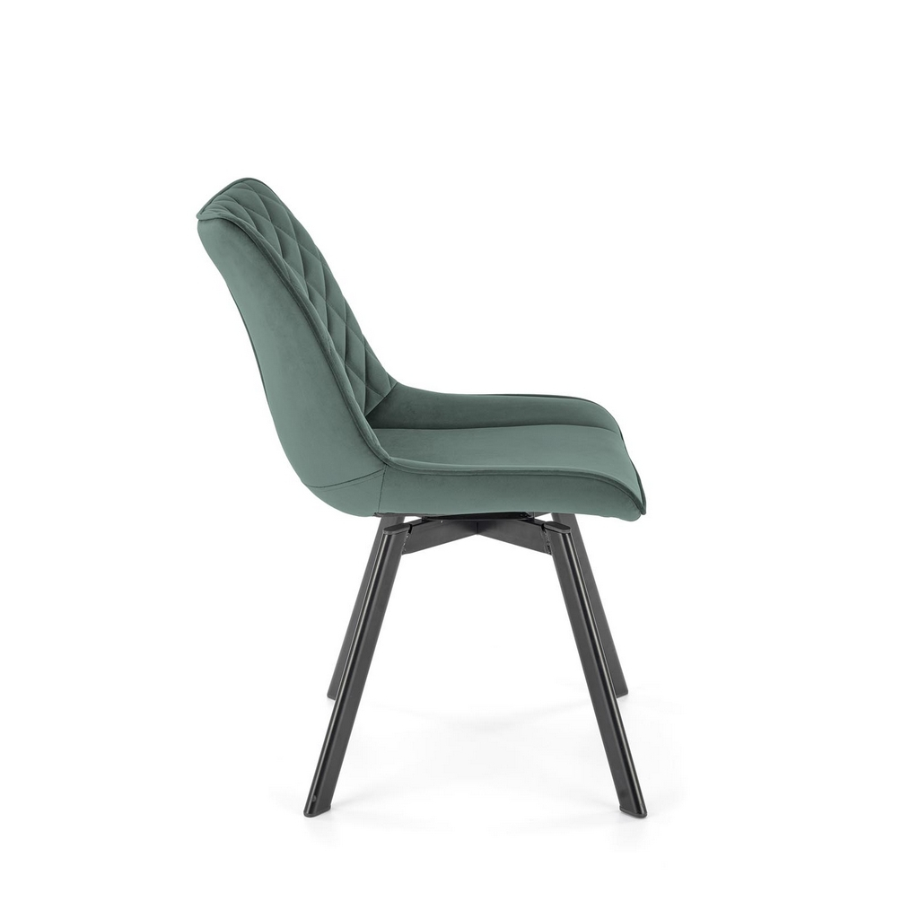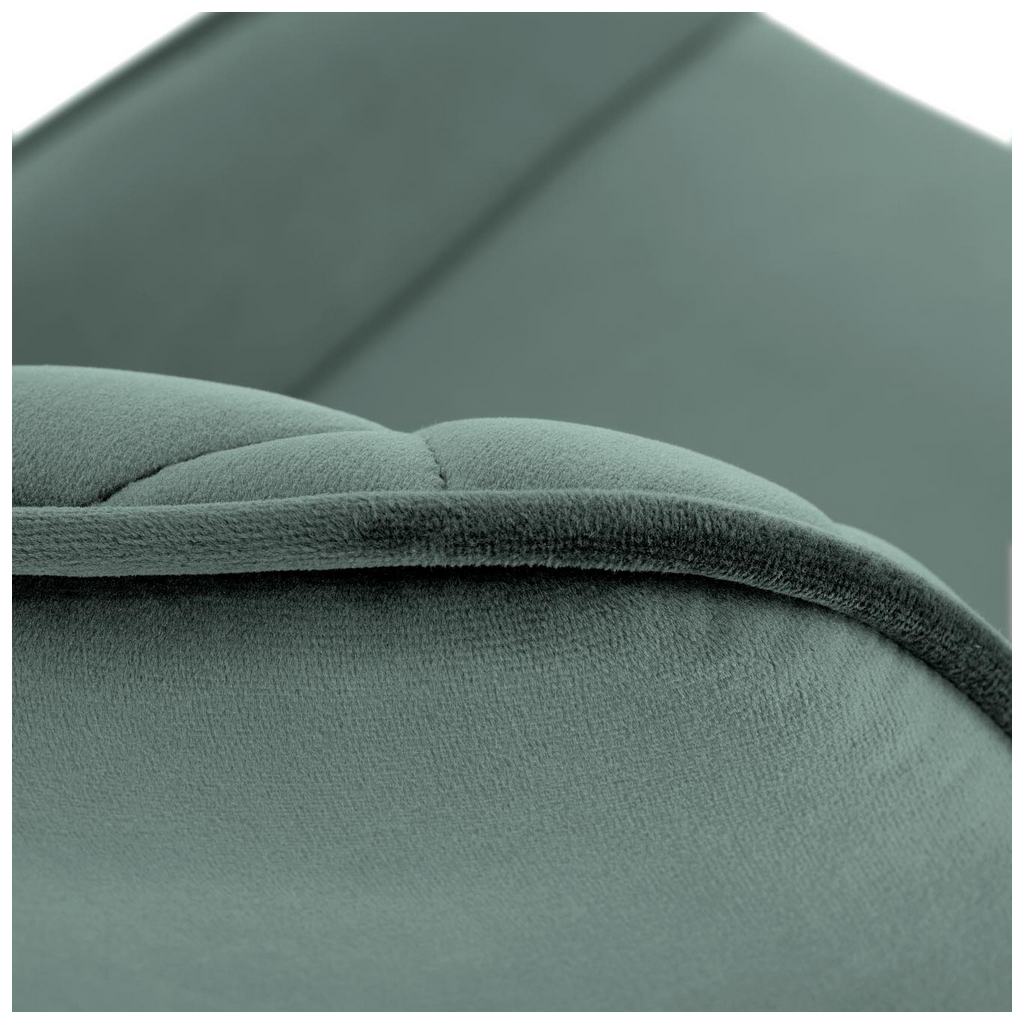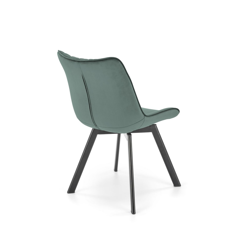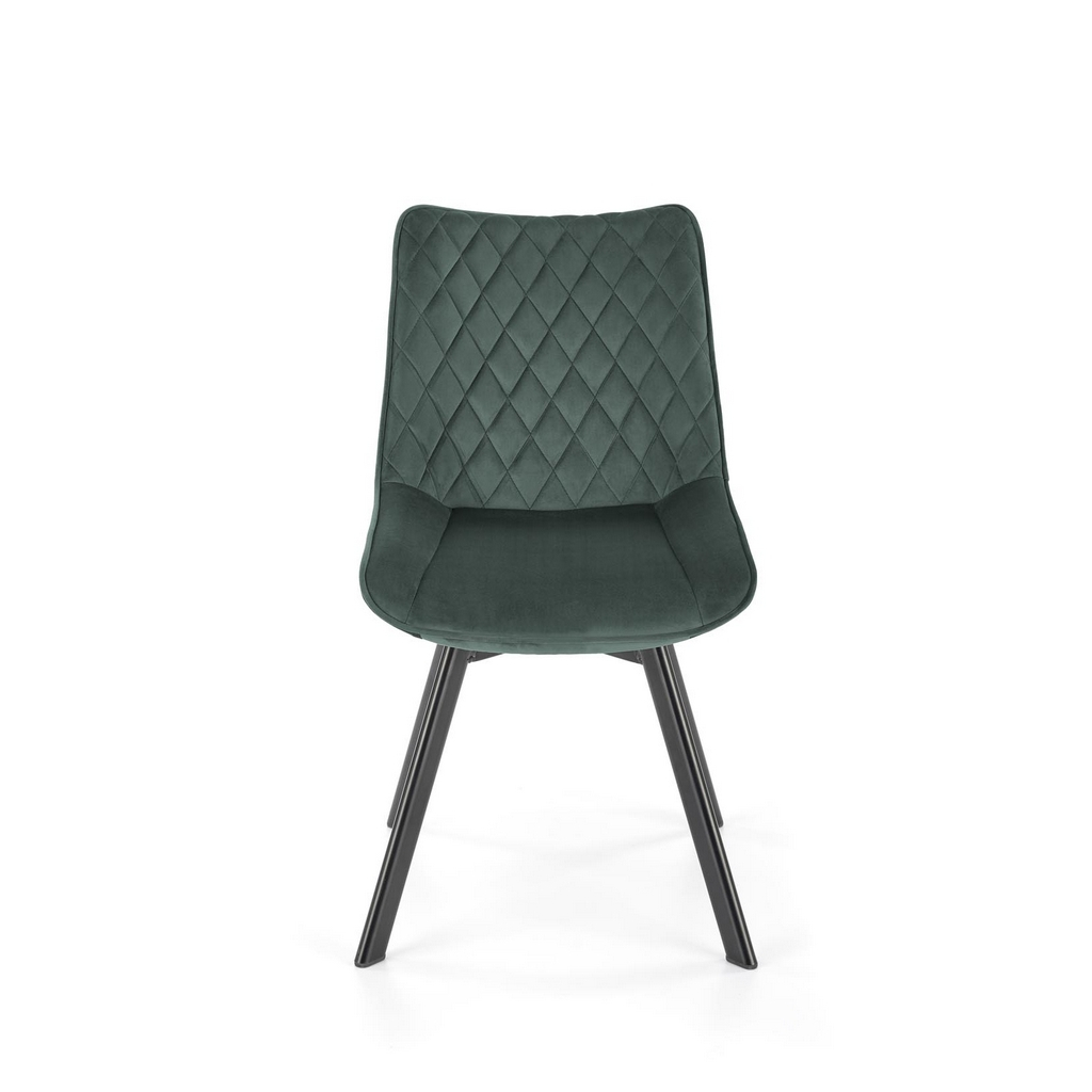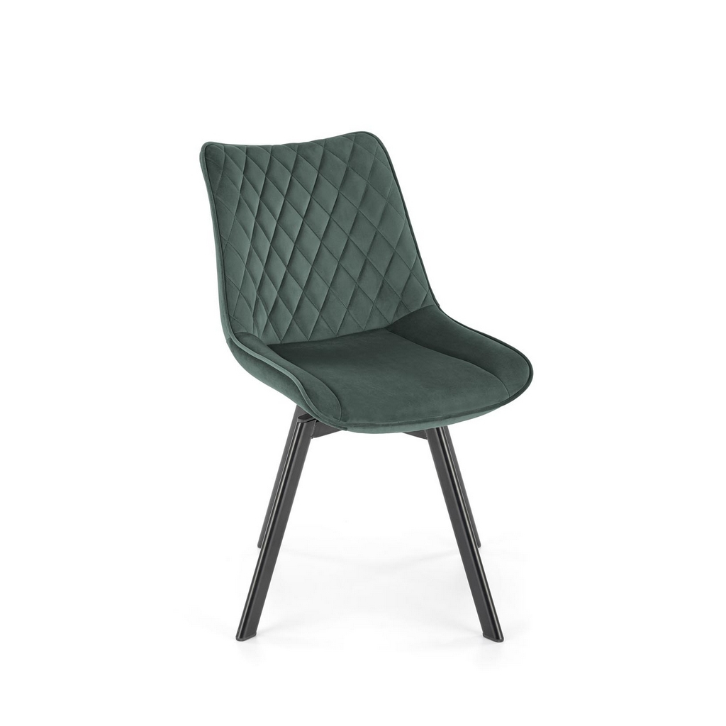 Sedadlo je čalúnené hebkou látkou s kosoštvorcovým vzorom na operadle. Tento vkusný dizajnový prvok ozvláštňuje inak minimalistický vzhľad stoličky.