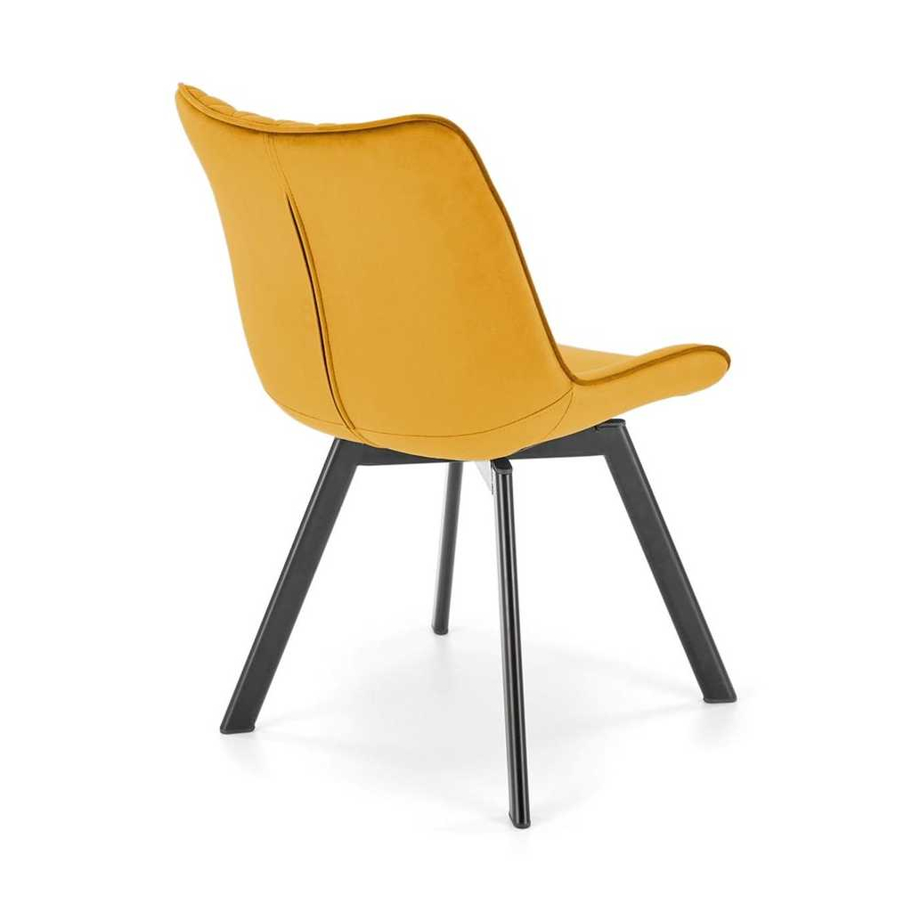 Sedadlo je čalúnené mäkkou látkou s diamantovým vzorom na operadle. Tento vkusný dizajnový prvok zvýrazňuje inak minimalistický vzhľad stoličky.