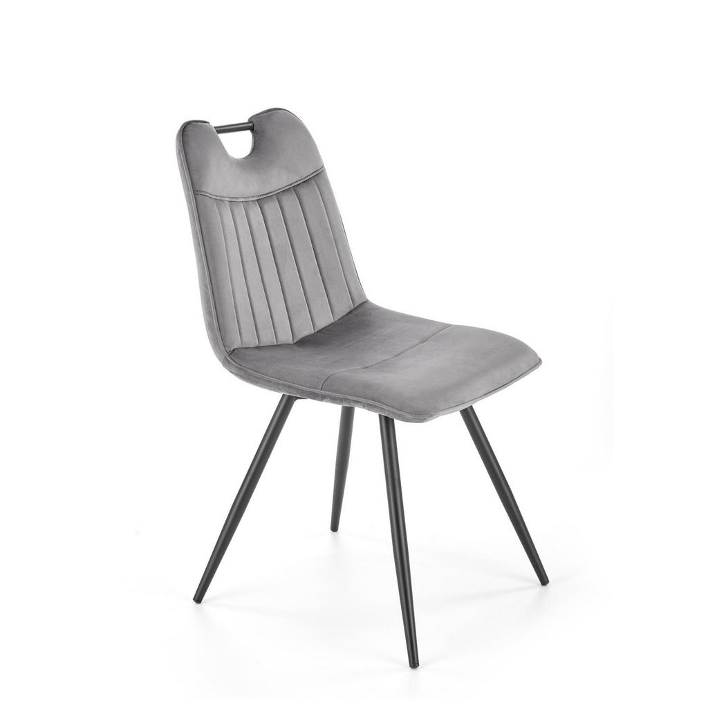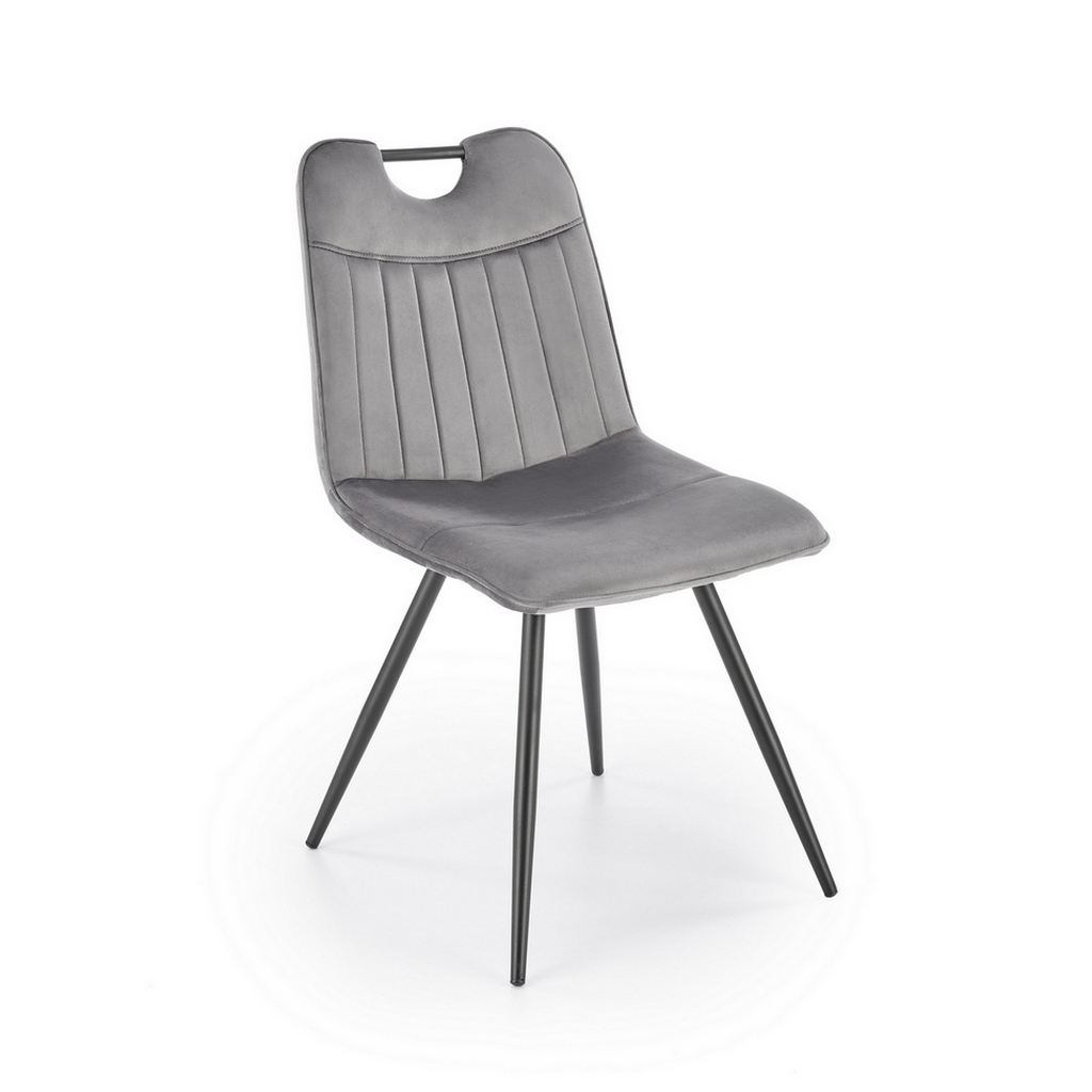 Sedadlo je čalúnené hebkou látkou s dekoratívnym vzorom na operadle. Časť výstuhy operadla je bez čalúnenia a slúži ako madlo, vďaka ktorému stoličku kedykoľvek ľahko premiestnite.