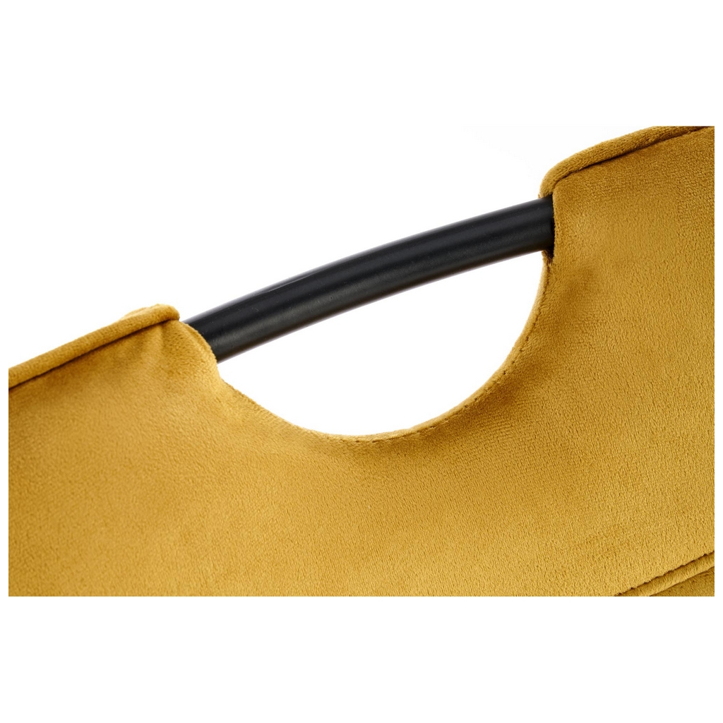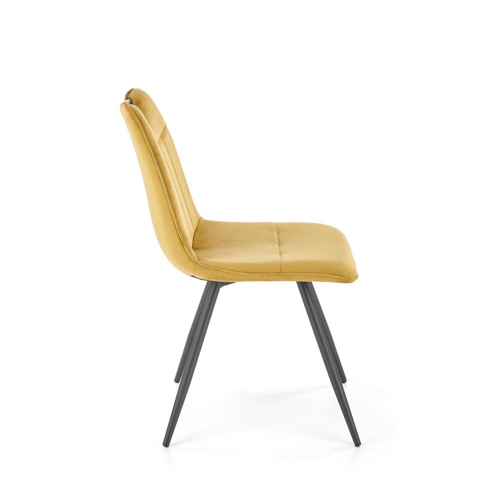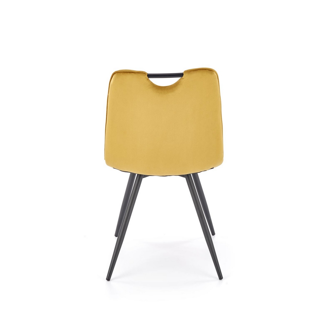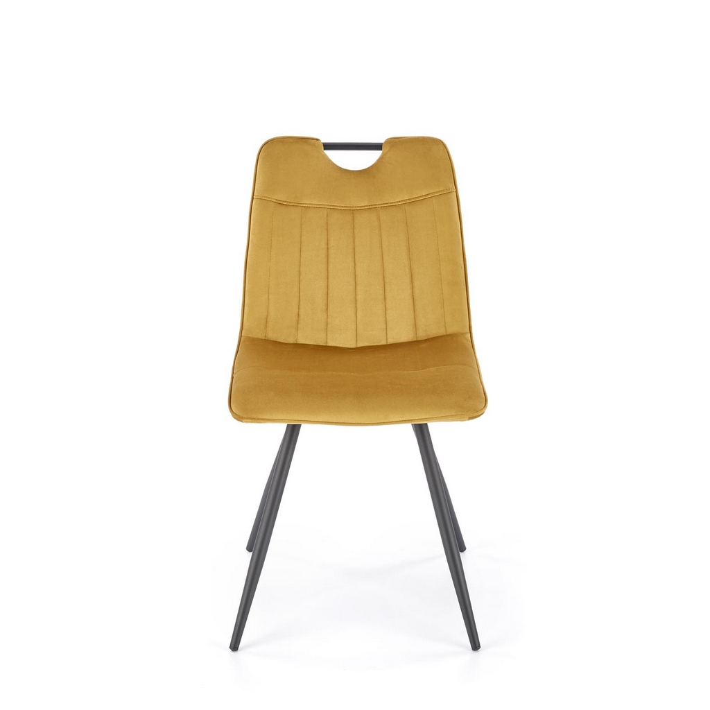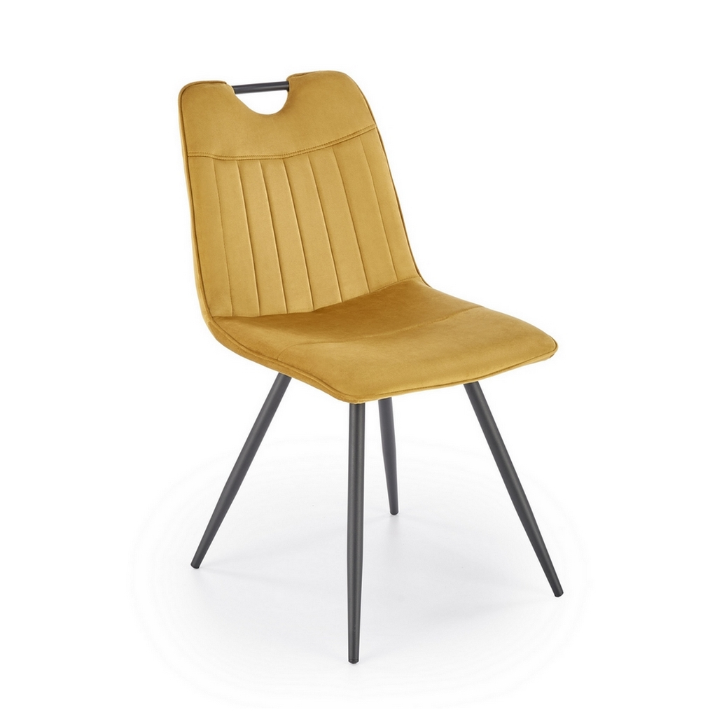 Sedadlo je čalúnené hebkou látkou s dekoratívnym vzorom na operadle. Časť výstuhy operadla je bez čalúnenia a slúži ako madlo, vďaka ktorému stoličku kedykoľvek ľahko premiestnite.