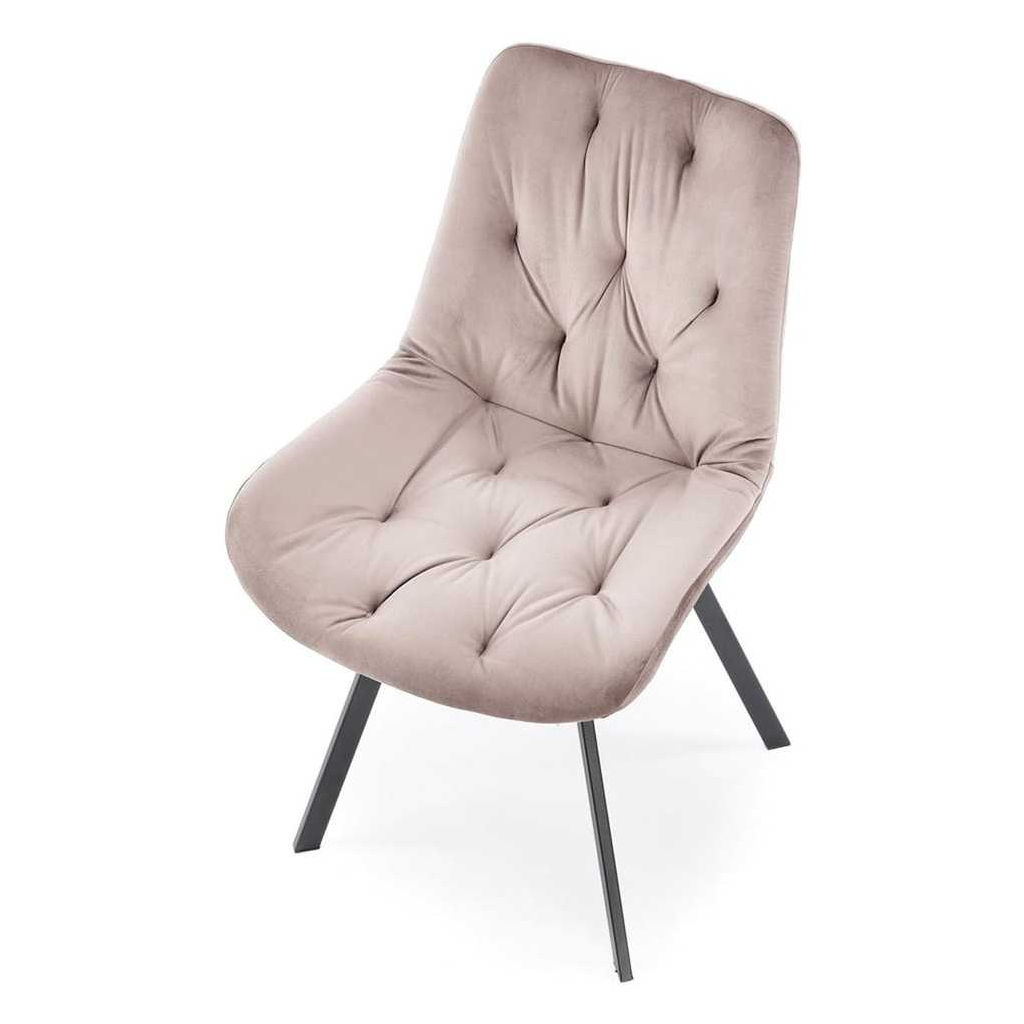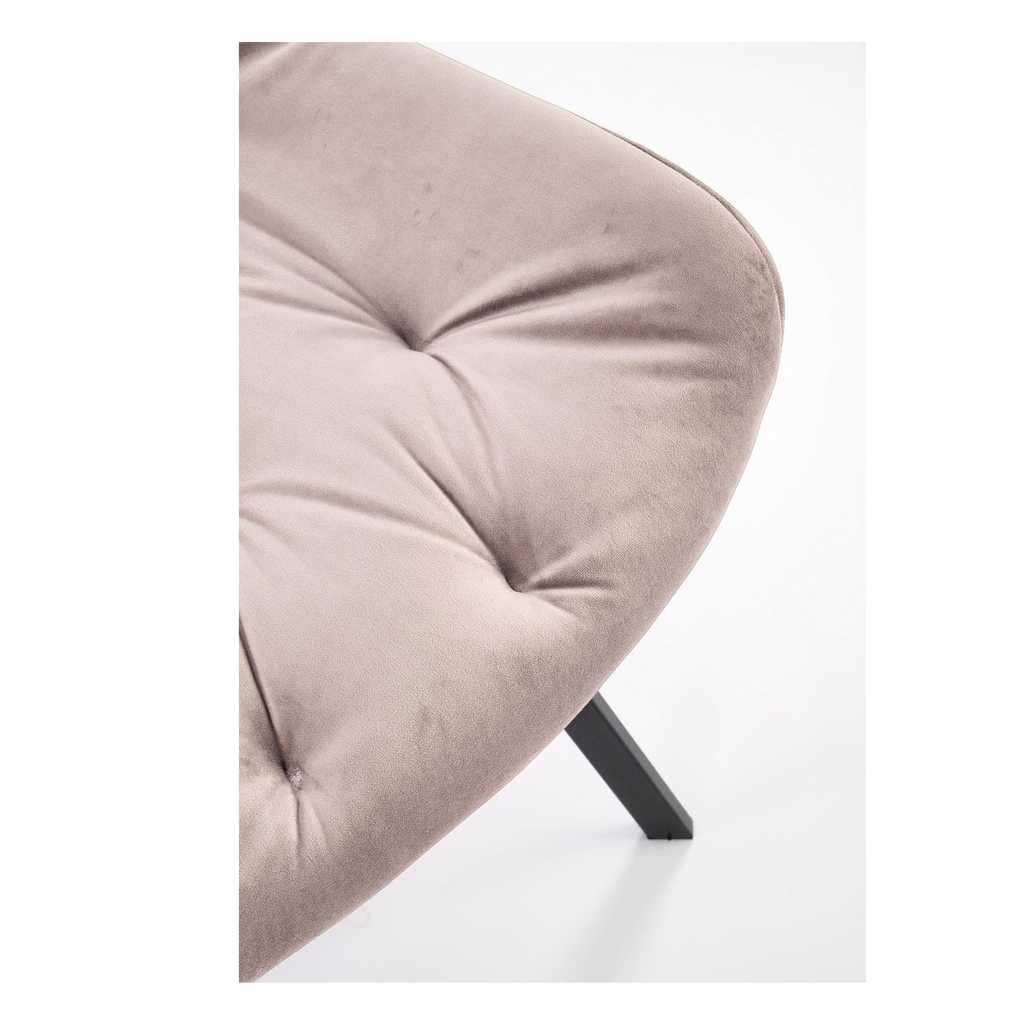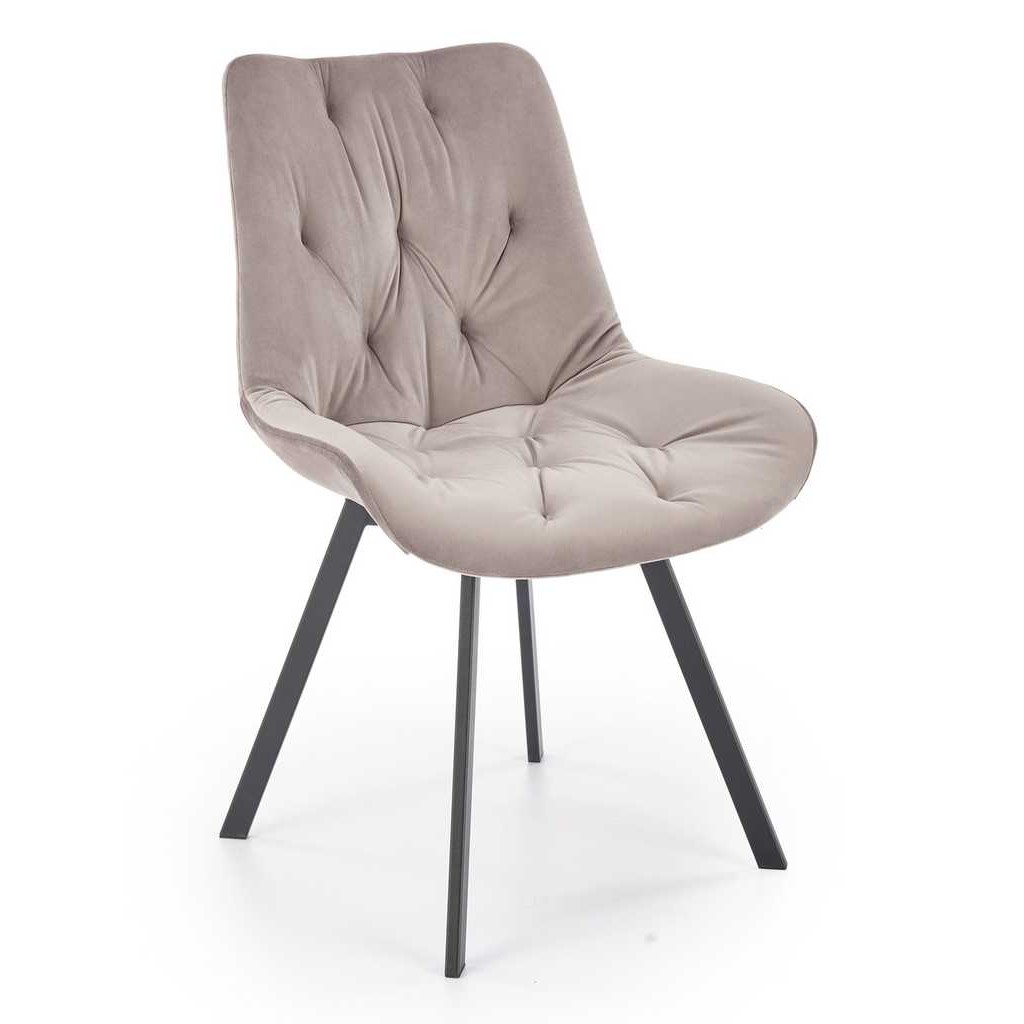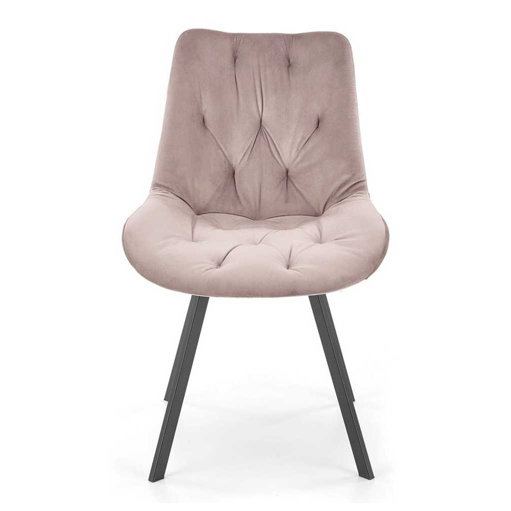 Sedadlo je čalúnené mäkkou látkou s všívanými gombíkmi. Tento vkusný dizajnový prvok zvýrazňuje inak minimalistický vzhľad stoličky.
