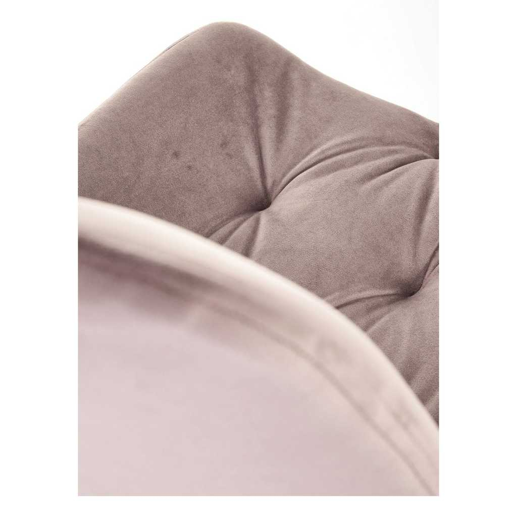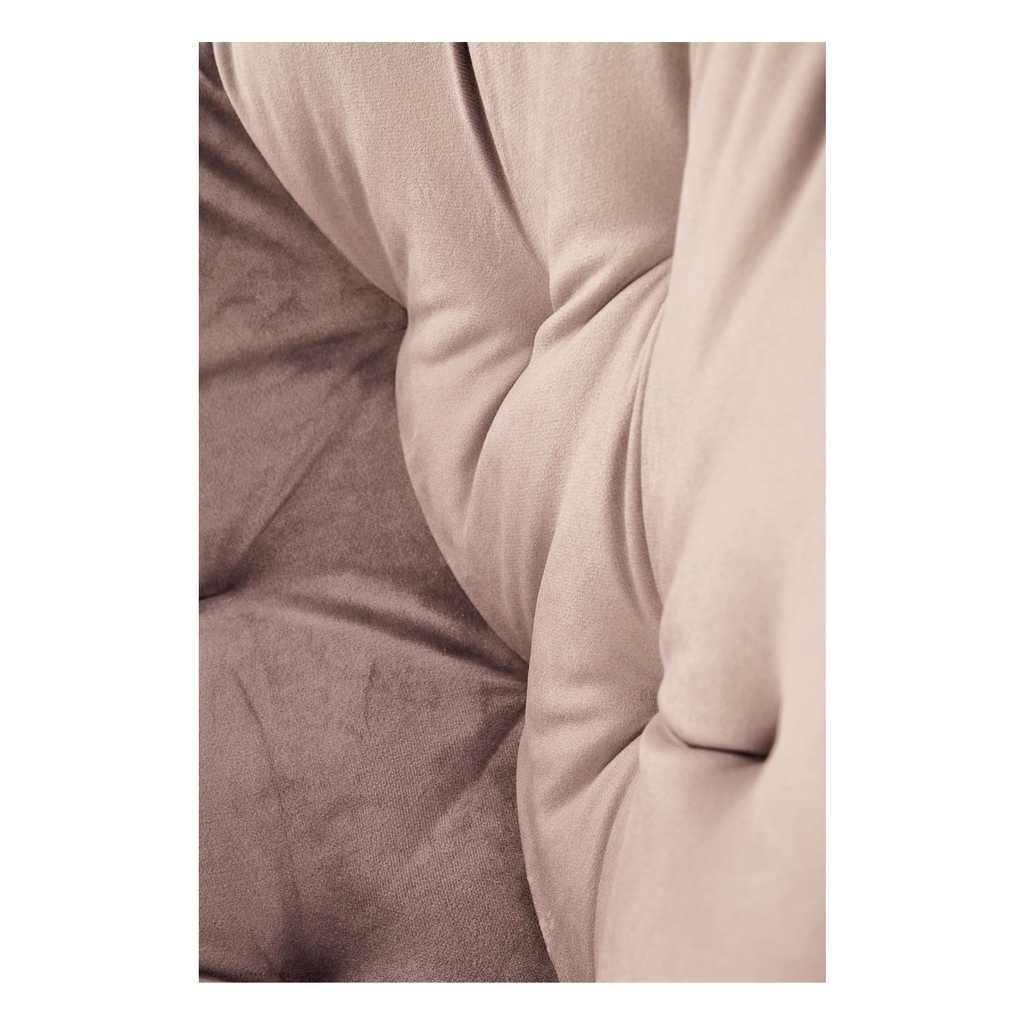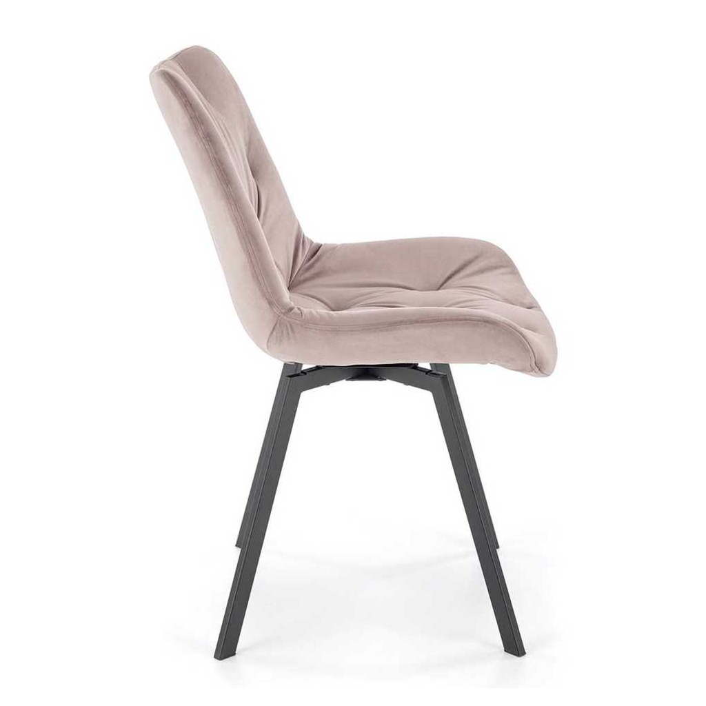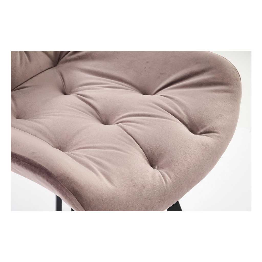 Sedadlo je čalúnené mäkkou látkou s všívanými gombíkmi. Tento vkusný dizajnový prvok zvýrazňuje inak minimalistický vzhľad stoličky.