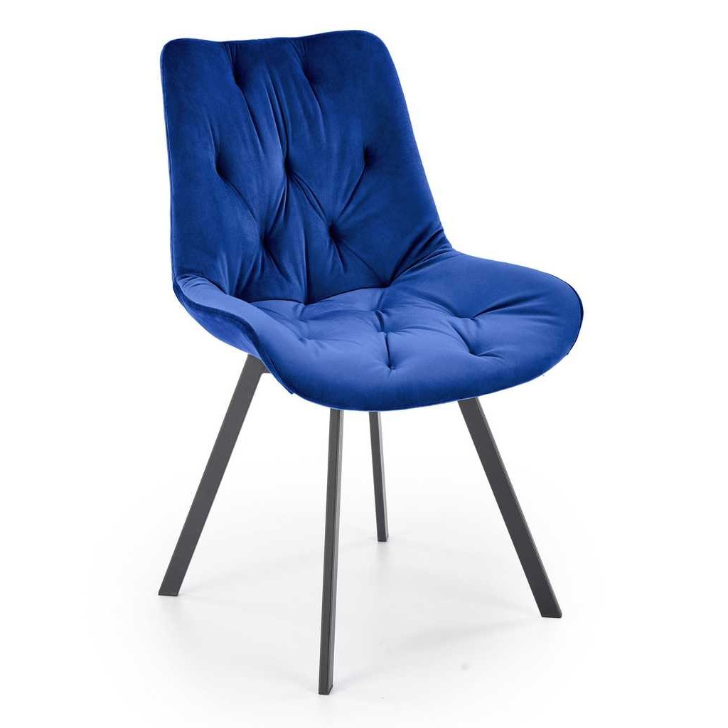 Sedadlo je čalúnené mäkkou látkou s všívanými gombíkmi. Tento vkusný dizajnový prvok zvýrazňuje inak minimalistický vzhľad stoličky.