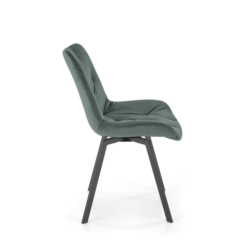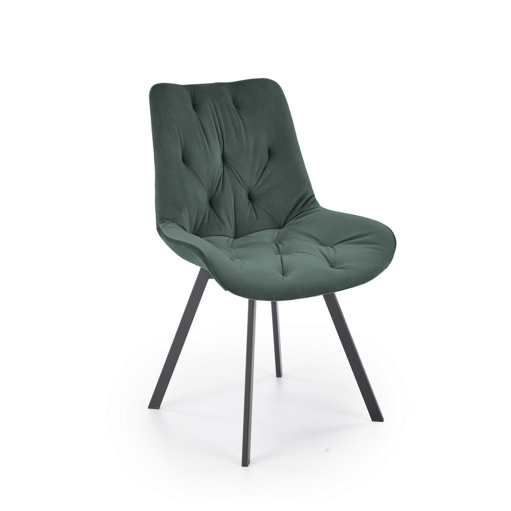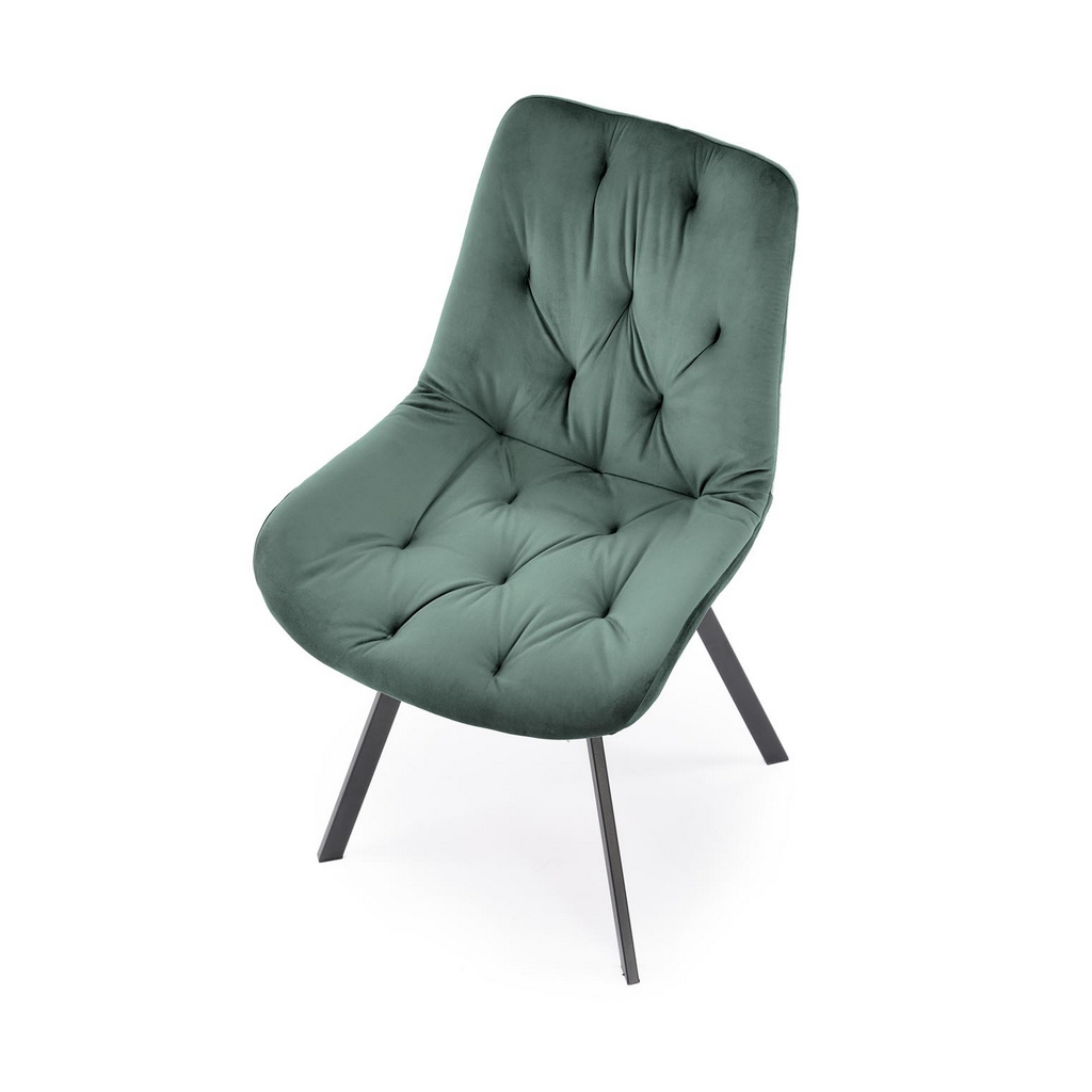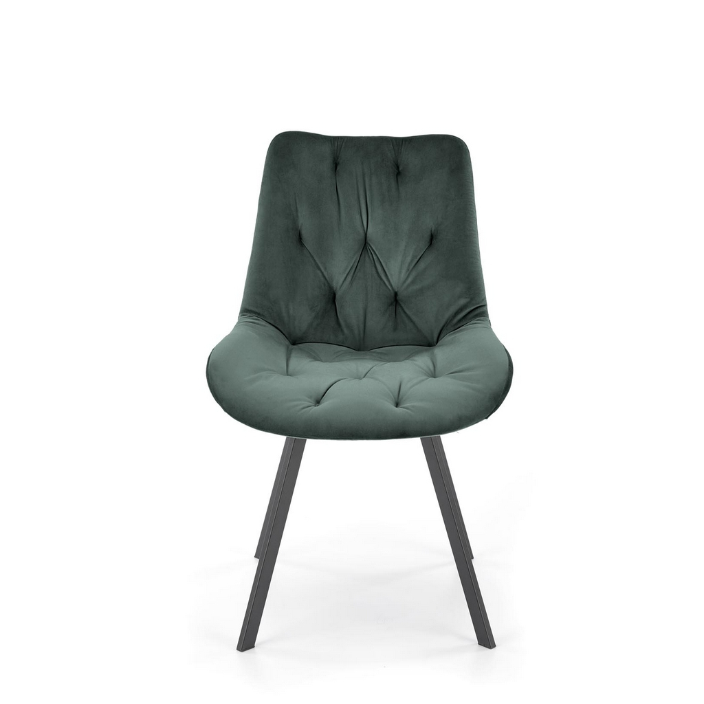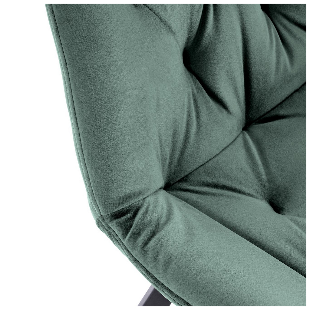 Sedadlo je čalúnené hebkou látkou s vtiahnutými gombíkmi. Tento vkusný dizajnový prvok ozvláštňuje inak minimalistický vzhľad stoličky.