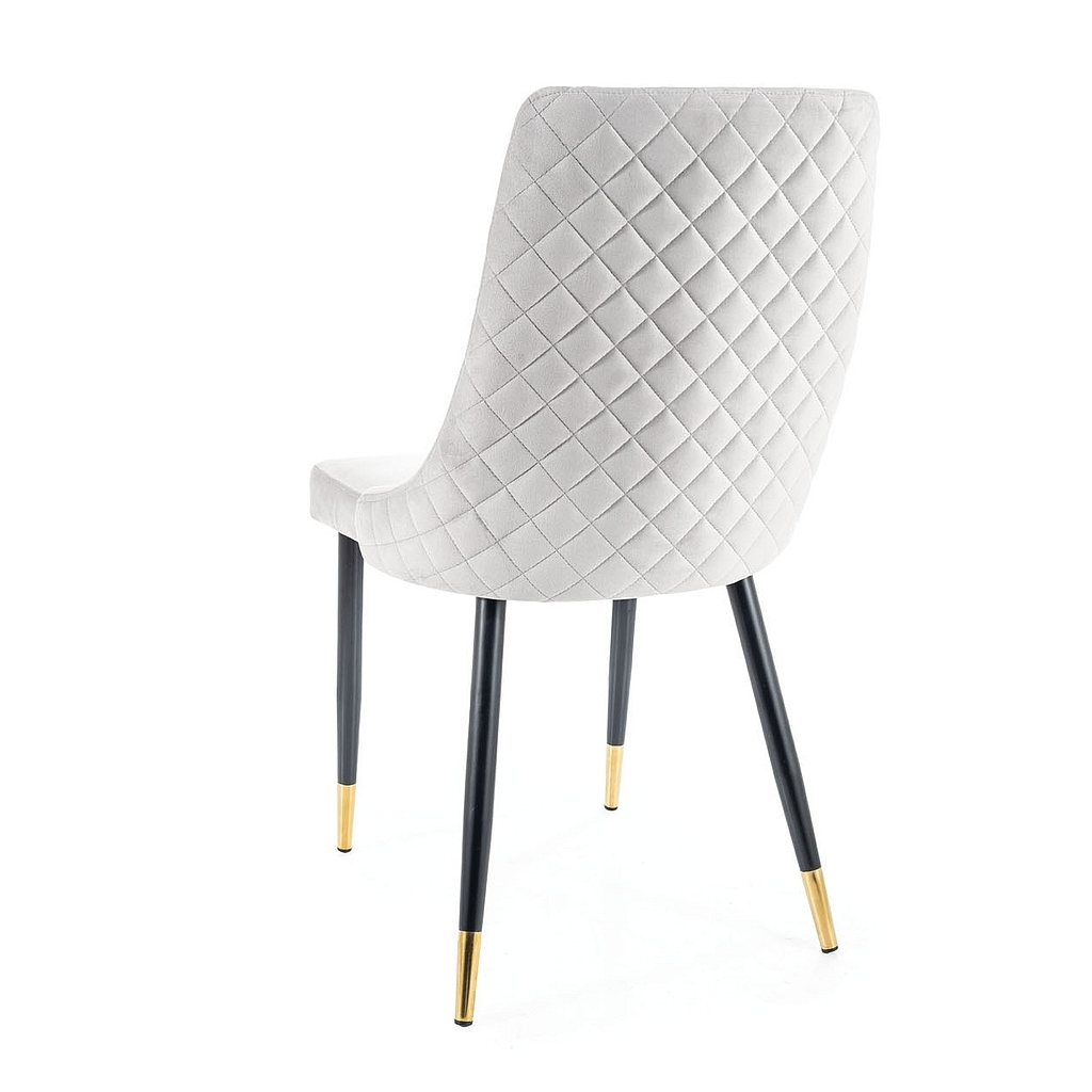 Jedálenská stolička Piano vsádza na luxusný vzhľad a spracovanie. Operadlo aj sedadlo stoličky sú polstrované pre maximálne pohodlie a naviac sú potiahnuté zamatovou látkou, ktorá je veľmi príjemná na dotyk. Konštrukcia a nožičky stoličky sú kovové, v dolnej časti so zlatým detailom.
