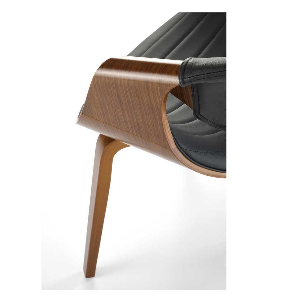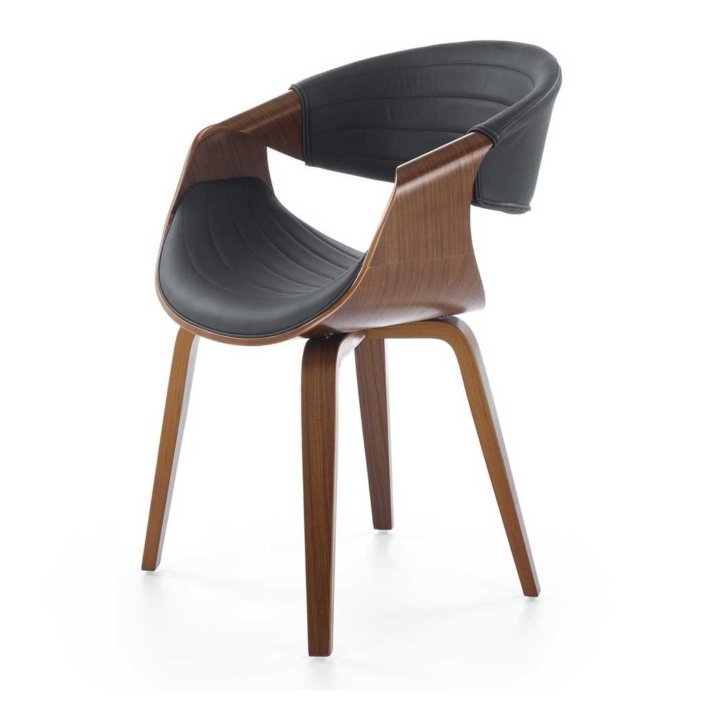 Stolička stojí na 4 nohách z ohýbanej preglejky v povrchovej úprave tmavý orech, ktorá dodáva stoličke reprezentatívny vzhľad. Ten ešte umocňuje koženkové čalúnenie, ktoré nájdete na sedadle a operadle.