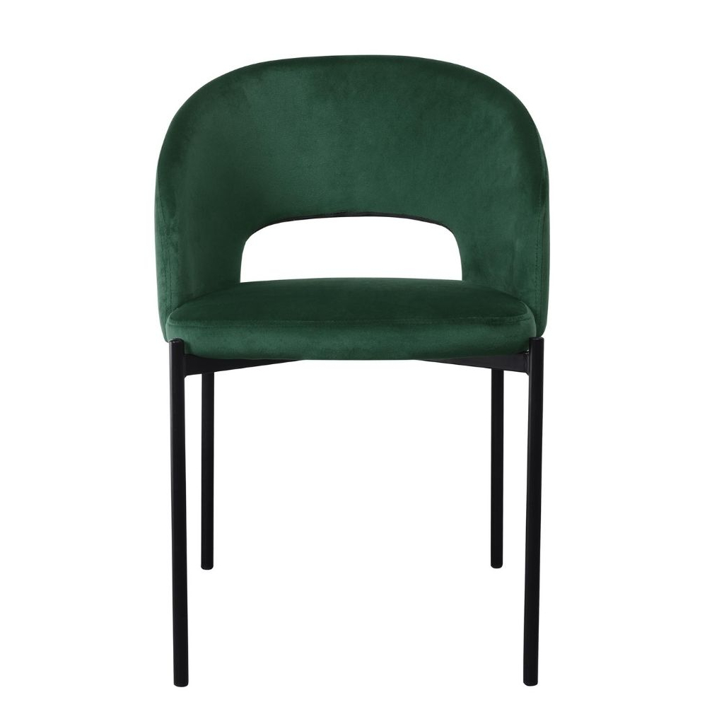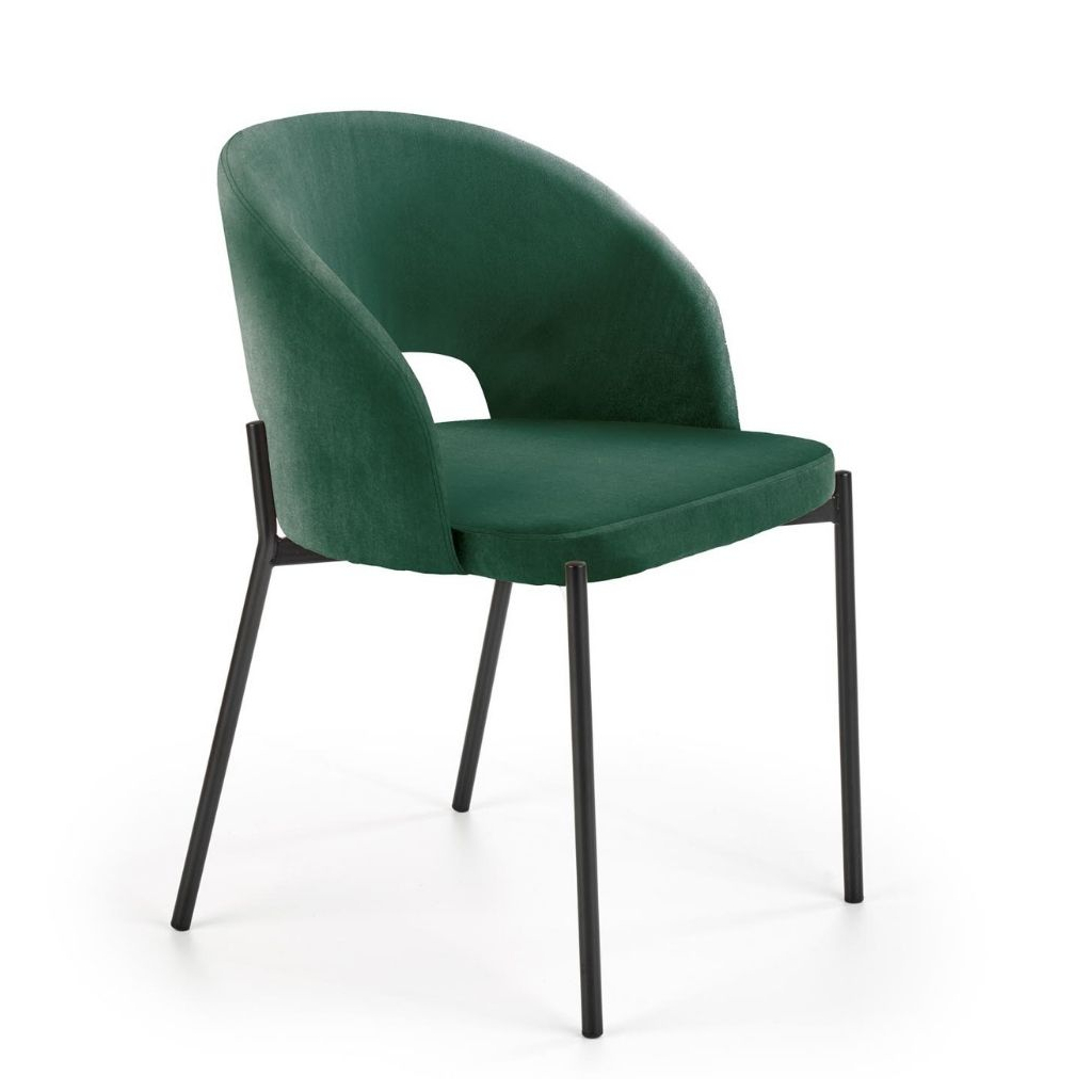 Jej elegantný vzhľad dotvára poťah z odolnej zamatovej tkaniny, ktorá je veľmi príjemná na omak. Polstrovaný zaoblený sedák poskytne maximálne pohodlie. Kovové nohy stoličky zaistia úplnú stabilitu.