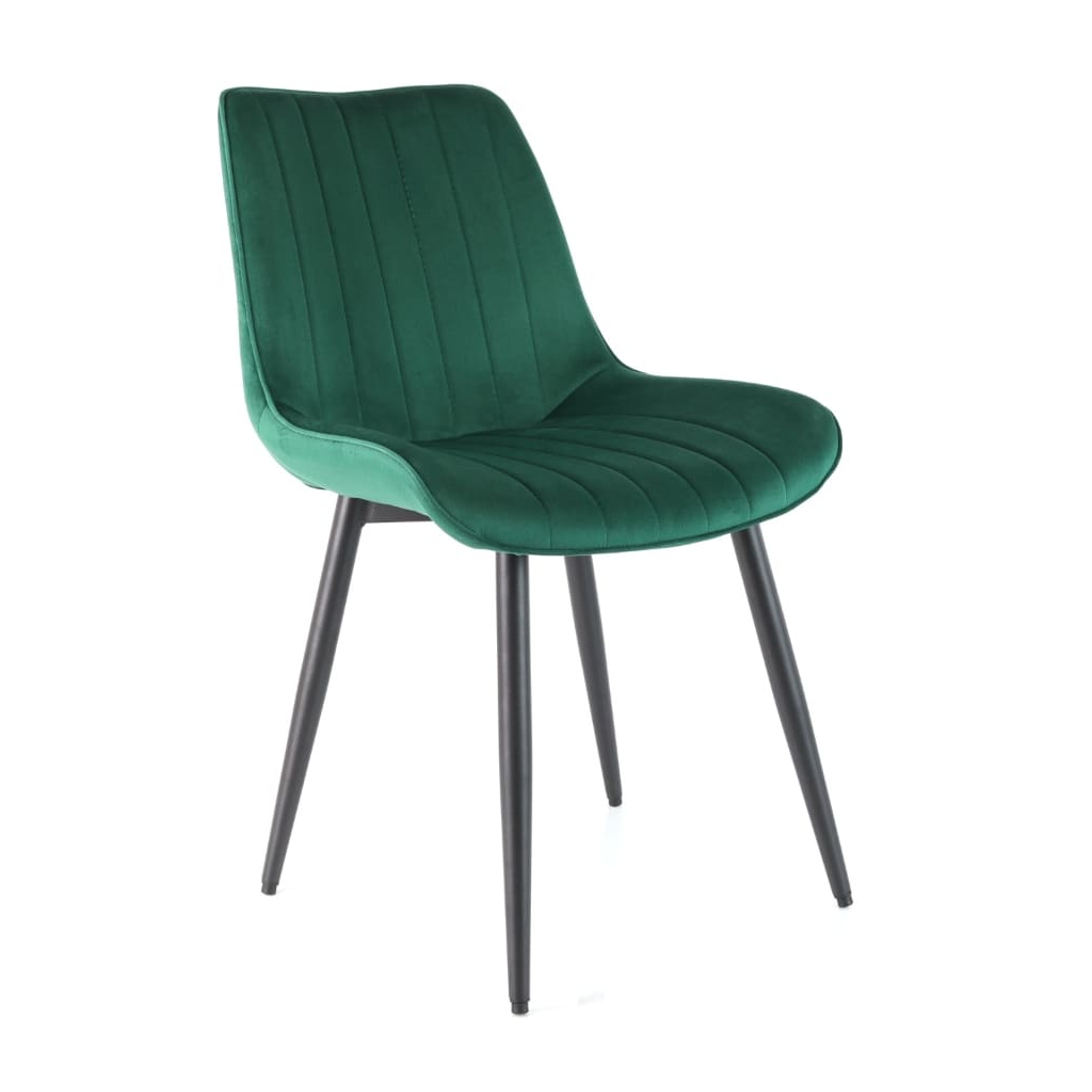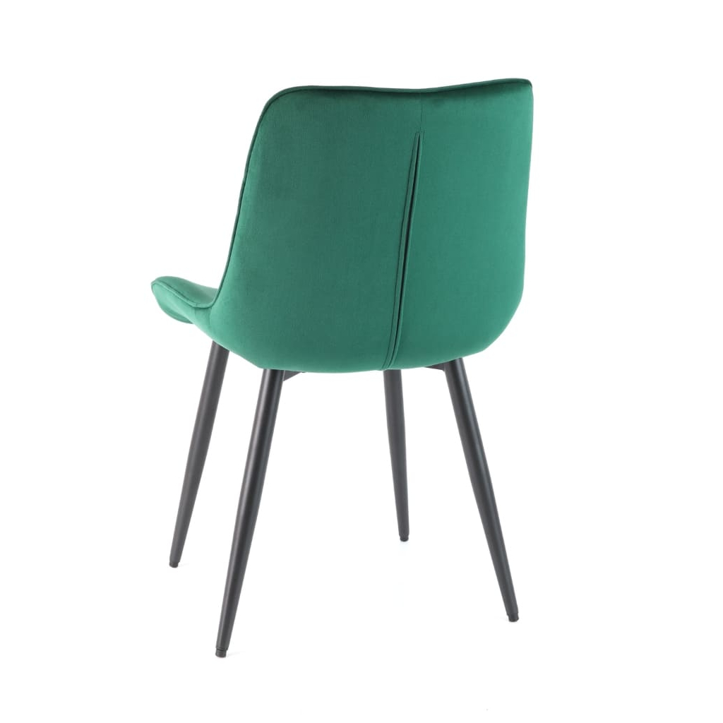 Jedálenská stolička Rowena stojí na čiernych kovových nohách, ktoré pod sedadlom pevne spája krížová konštrukcia. Aj vďaka nej si stoličky poradia so záťažou až 120 kg.