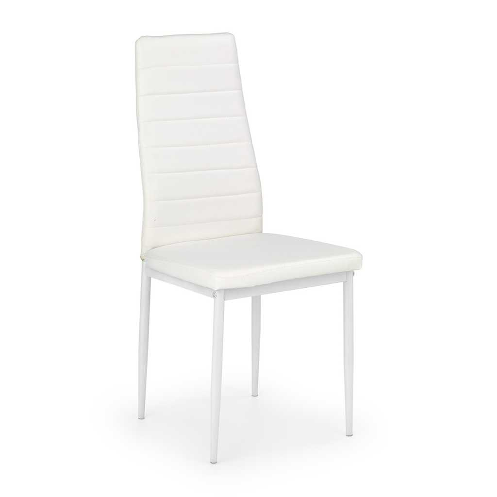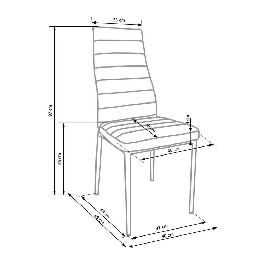 Poťah sedadla z kože je nielen pohodlný, ale taktiež ľahko udržiavateľný, čo ocení každý, kto hľadá praktický a štýlový nábytok. Jej rozmery sú prispôsobené na pohodlné sedenie s ideálnou výškou sedu a opierkou chrbta pre lepšiu podporu. Stolička je bez podrúčok, čo narušuje jej čistý a jednoduchý vzhľad.