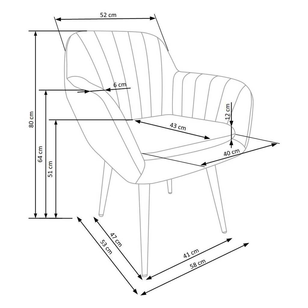 Čalúnené sedadlo poskytne maximálne pohodlie. Súčasťou stoličky sú aj čalúnené podrúčky. Kovové nohy zabezpečujú stoličke absolútnu stabilitu.