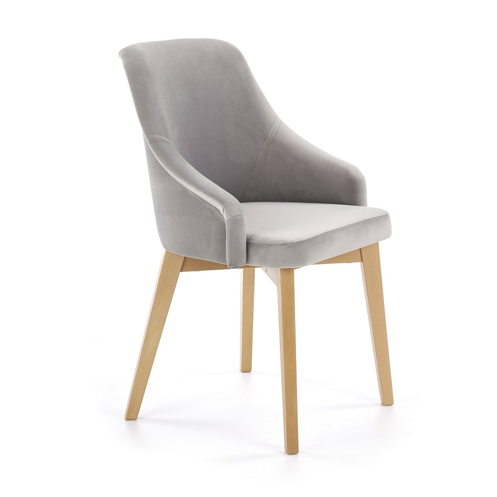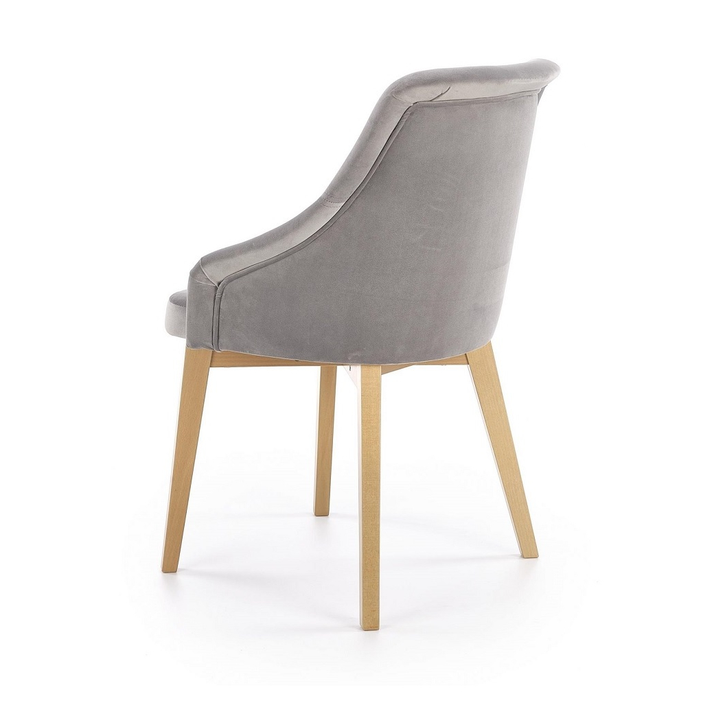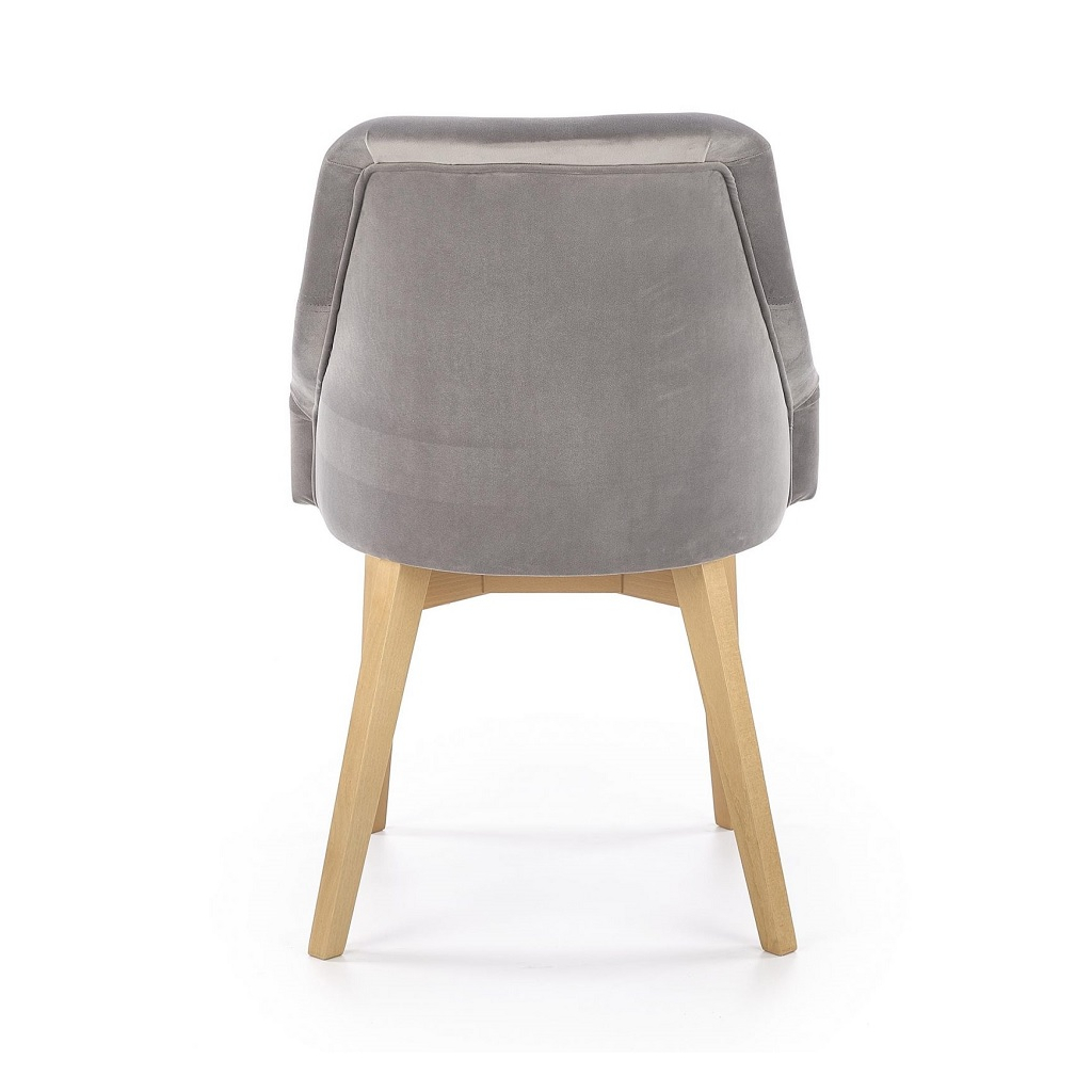 Stolička je vybavená stabilnou konštrukciou v podobe 4 drevených nôh, ktoré sú vyrobené vo farbe medového duba. Sedák i operadlo sú čalúnené príjemnou sametovou látkou, ktorá zaistí vždy pohodlné sedenie.