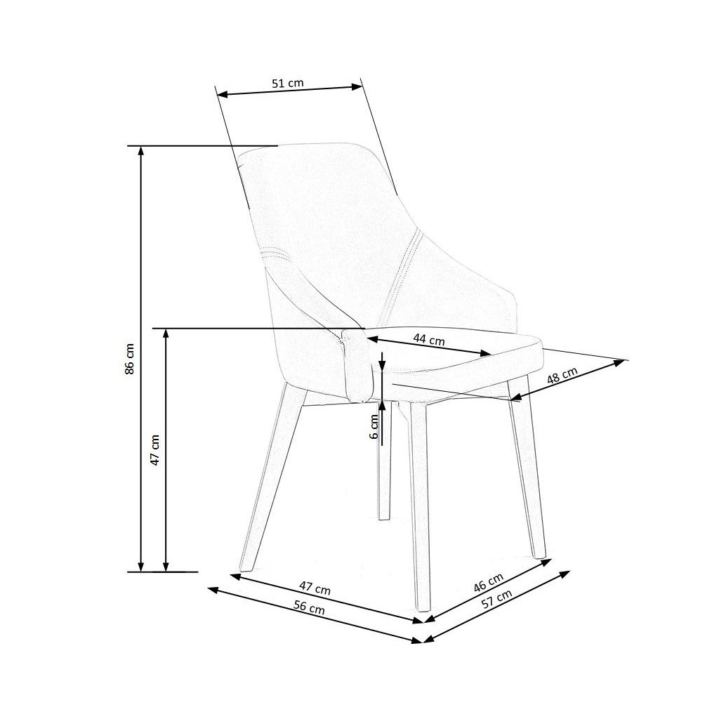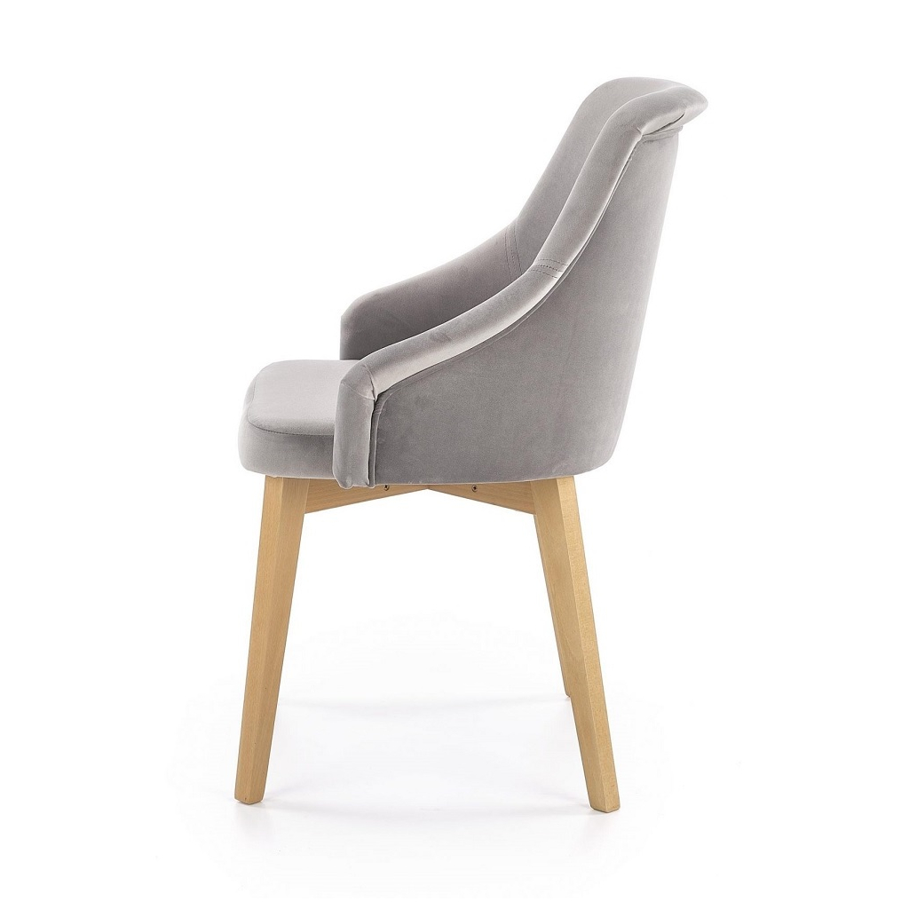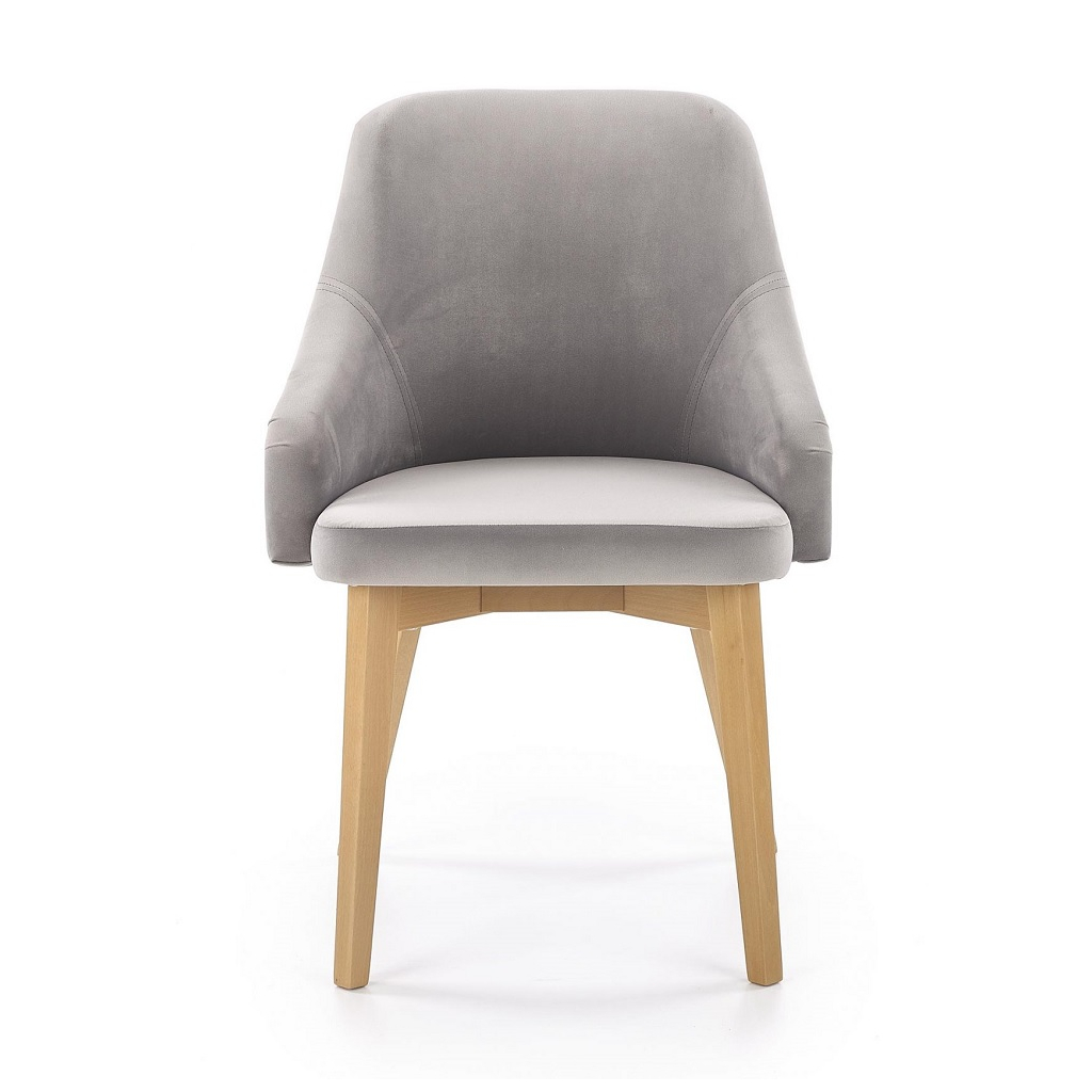 Stolička je vybavená stabilnou konštrukciou v podobe 4 drevených nôh, ktoré sú vyrobené vo farbe medového duba. Sedák i operadlo sú čalúnené príjemnou sametovou látkou, ktorá zaistí vždy pohodlné sedenie.