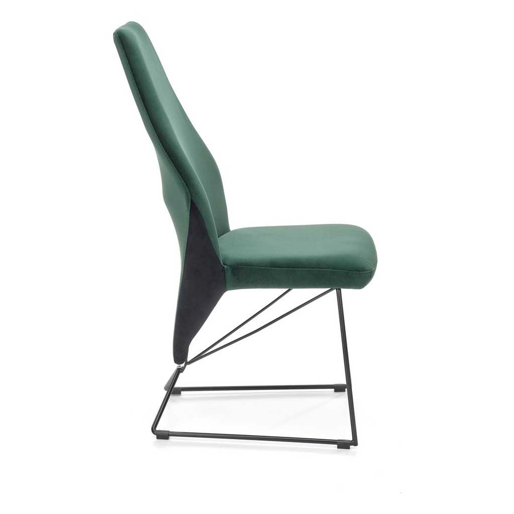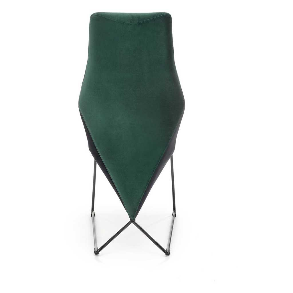 Štíhly dizajn nájdete aj na sedadle a operadle. Tie sú čalúnené zamatovou látkou, ktorá kreslu dodáva prestíž a pohodlie. Jedinečným prvkom tejto stoličky je kombinácia 2 farieb na čalúnení a "špička" na zadnej strane operadla. Tá šikovne ukrýva časť rámu, vďaka čomu je stolička prekvapivo pevná.
