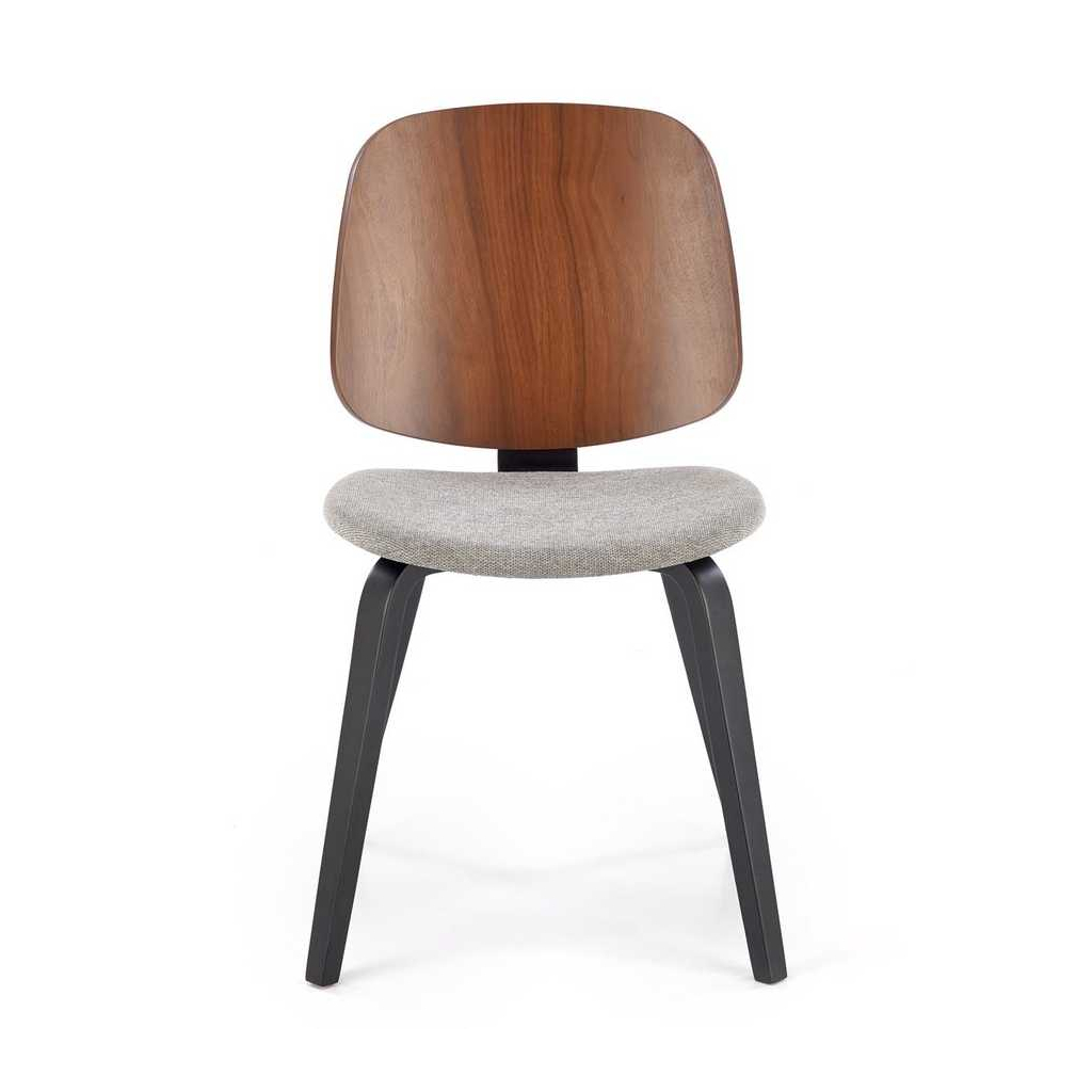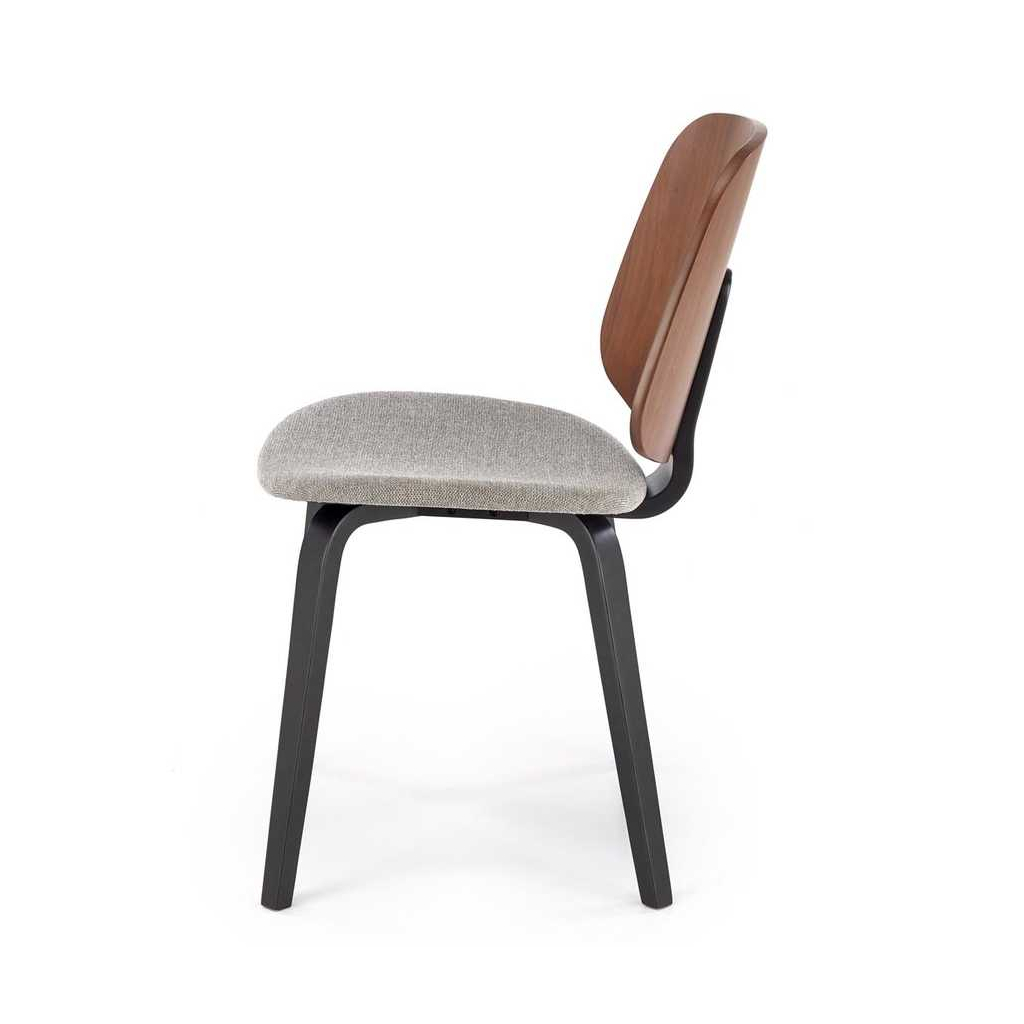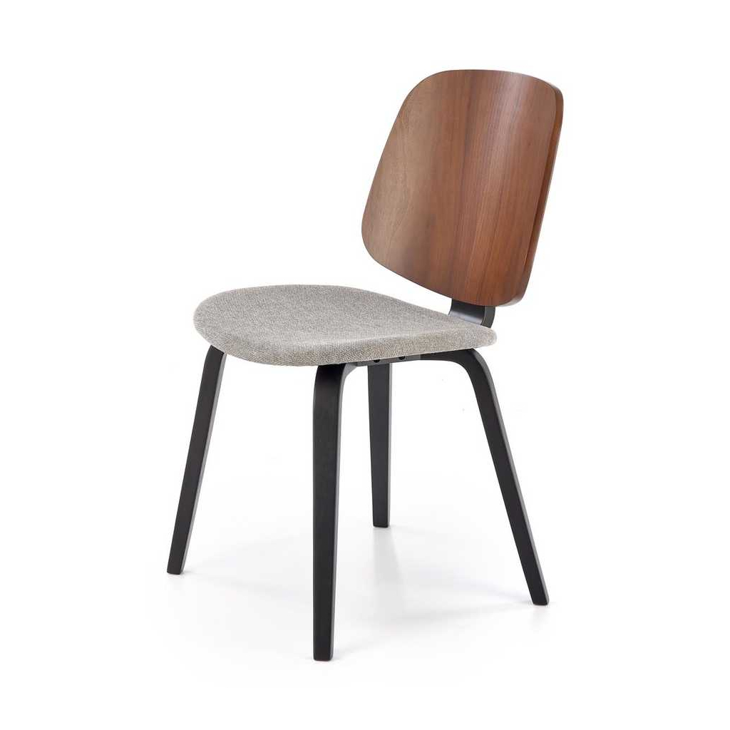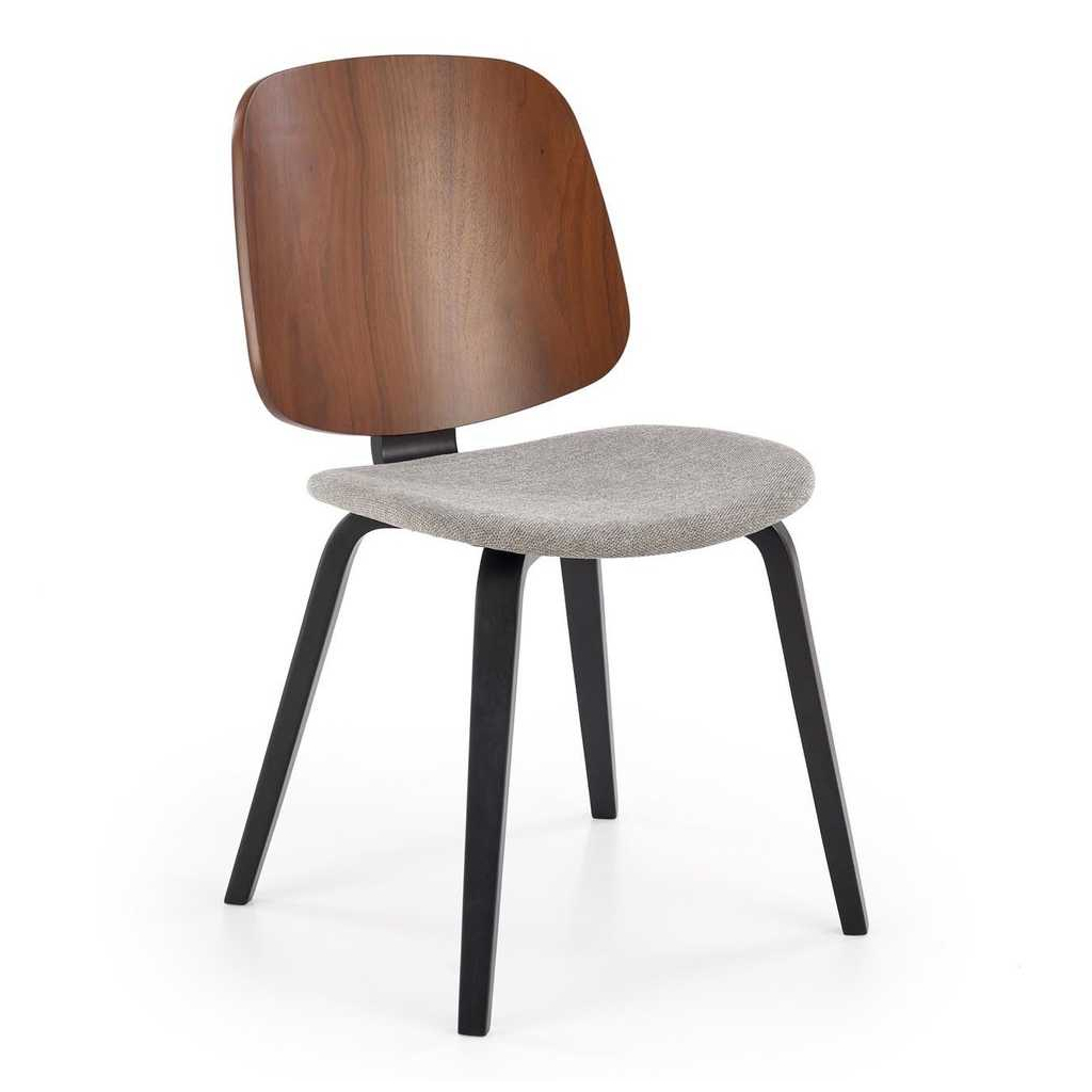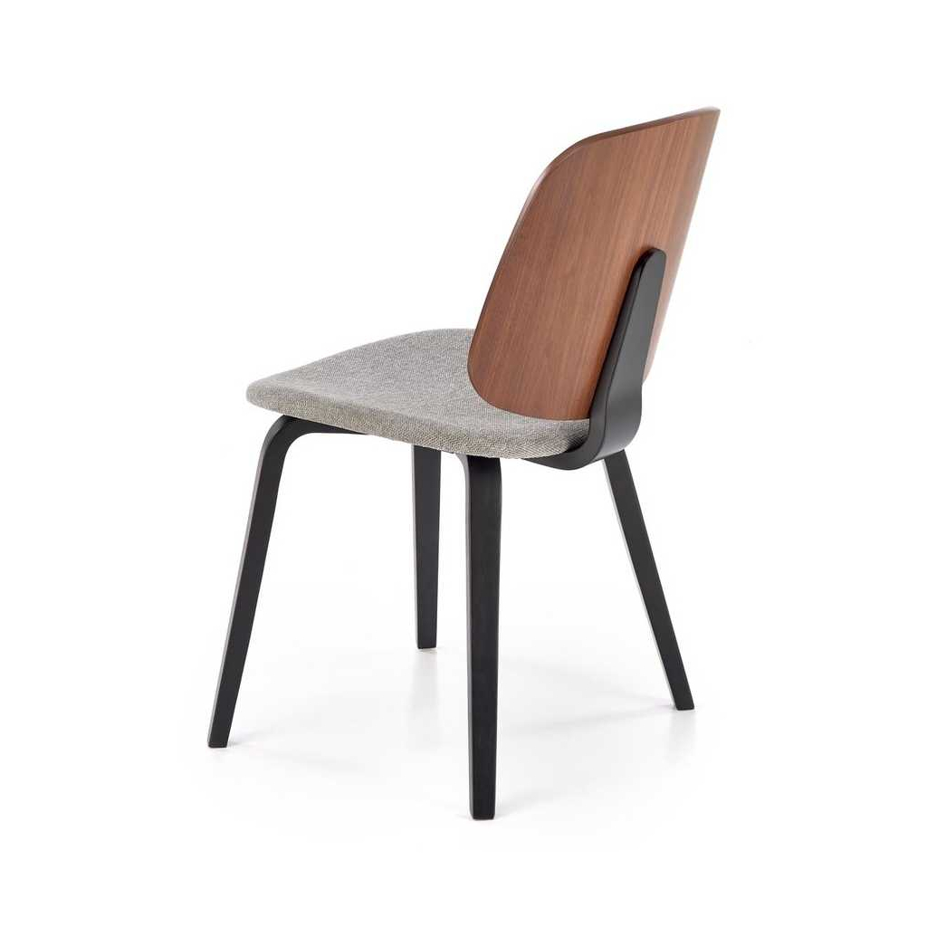 Podstava stoličky je vyrobená z masívneho dreva v čiernej farbe. Príjemne ju dopĺňa operadlo z ohýbanej preglejky vo farbe orech.