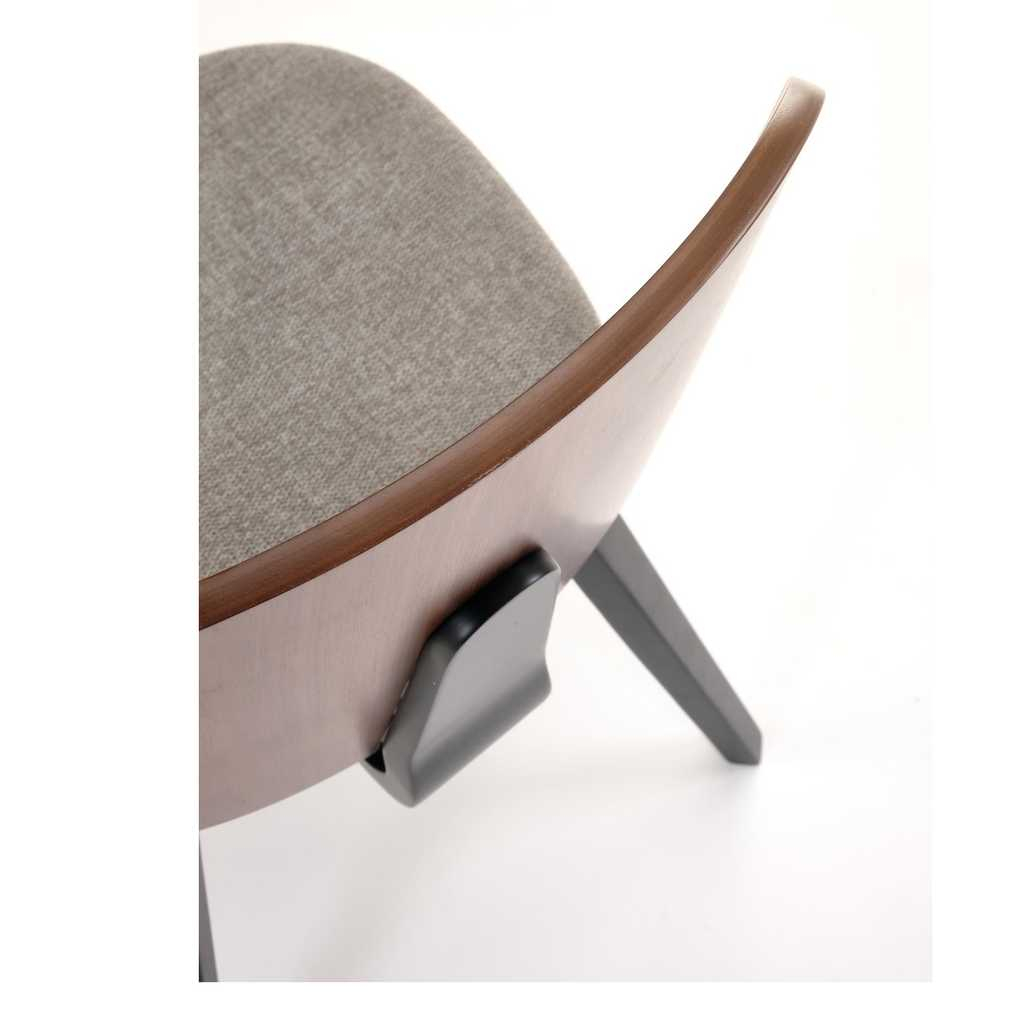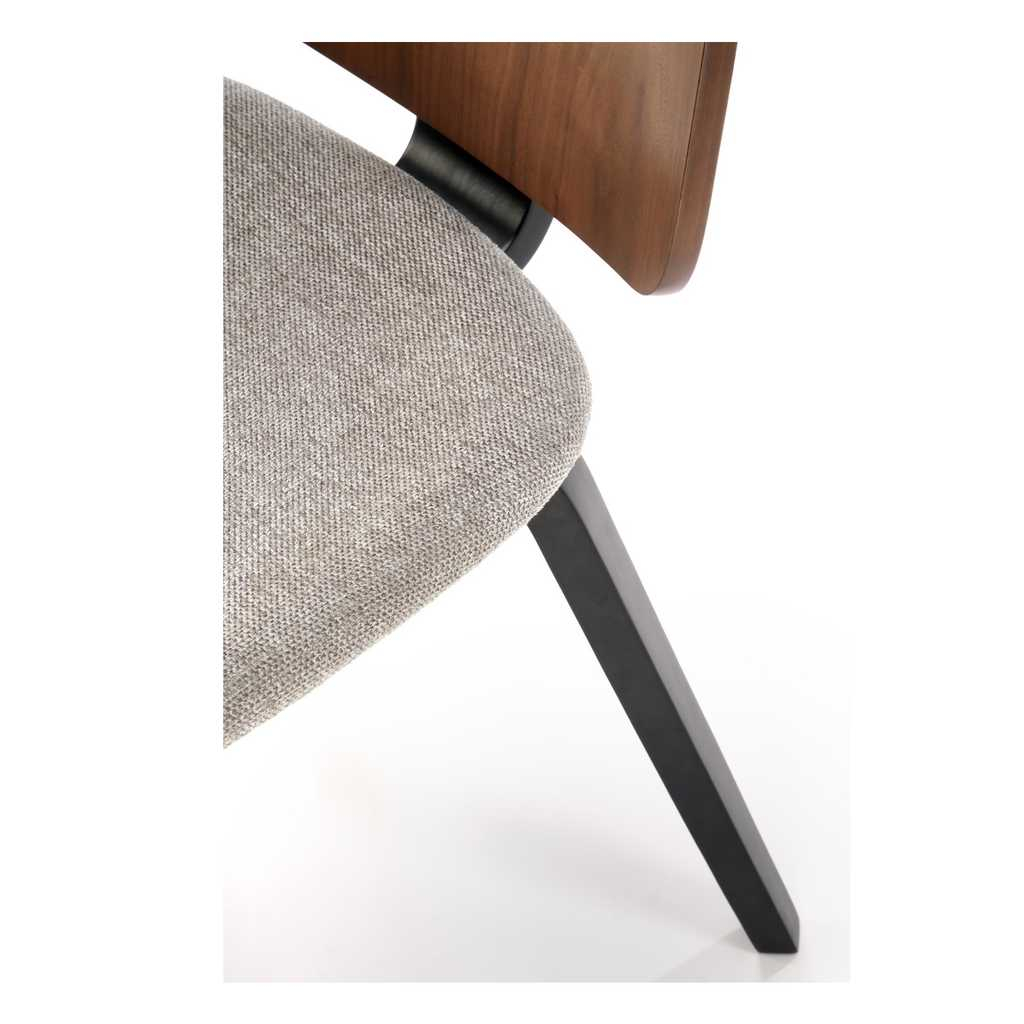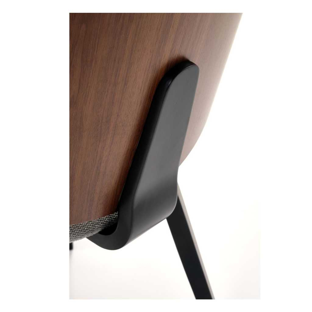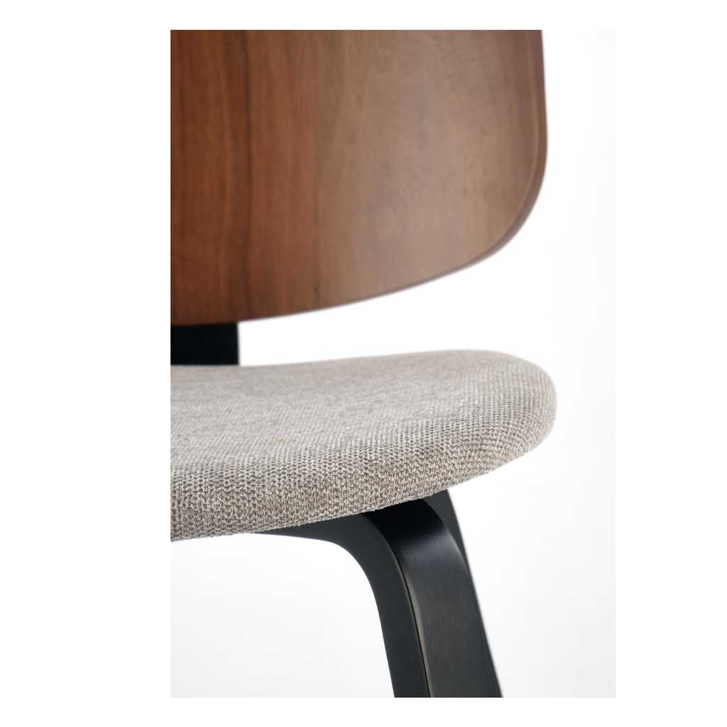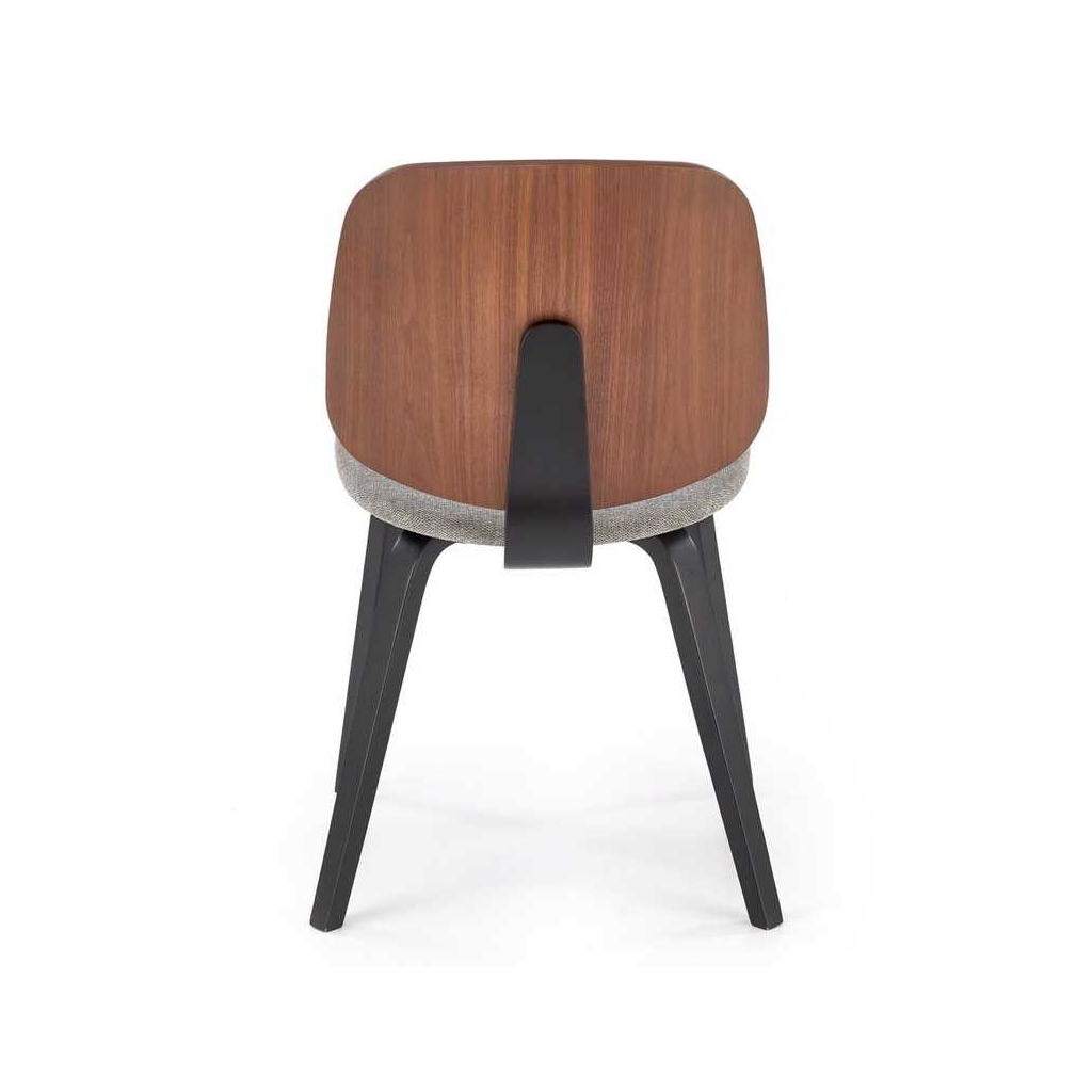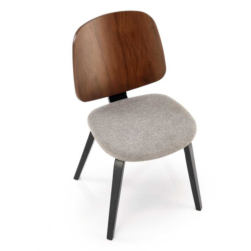Podstava stoličky je vyrobená z masívneho dreva v čiernej farbe. Príjemne ju dopĺňa operadlo z ohýbanej preglejky vo farbe orech.