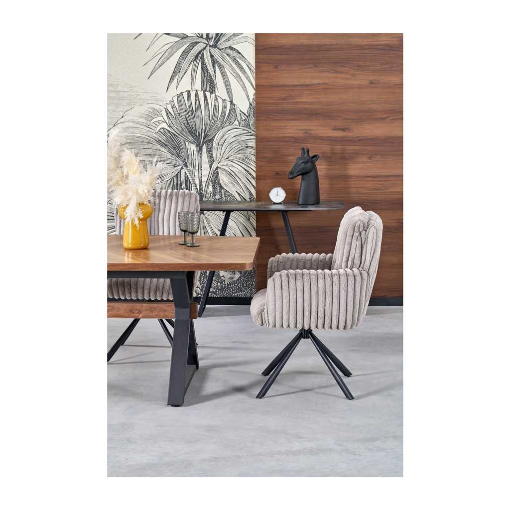 Jedálenská stolička Zora prináša kombináciu pohodlia a odolnosti pre váš jedálenský kútik či pracovný priestor. Vďaka látkovému čalúneniu je pohodlná na sedenie, zatiaľ čo pevná kovová podnož zabezpečuje stabilitu a dlhú životnosť. S nosnosťou až 120 kg je vhodná pre široké spektrum užívateľov a jej kompaktné rozmery zaručujú, že nájde miesto aj v menších priestoroch.
