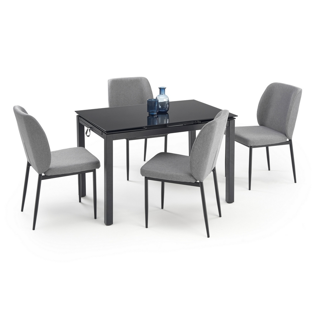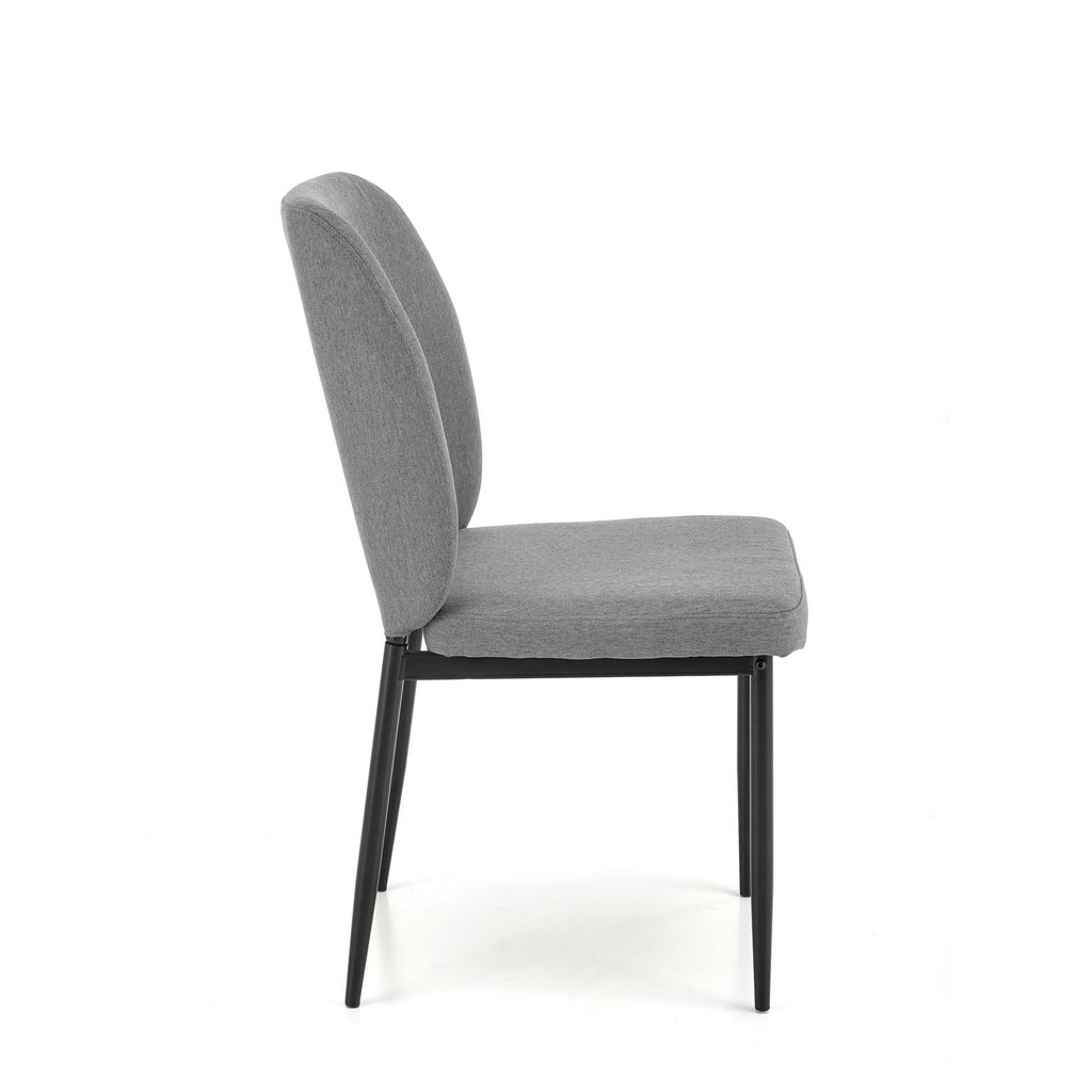Druhou časťou setu sú 4 jedálenské stoličky s oceľovými nohami a látkovým čalúnením.