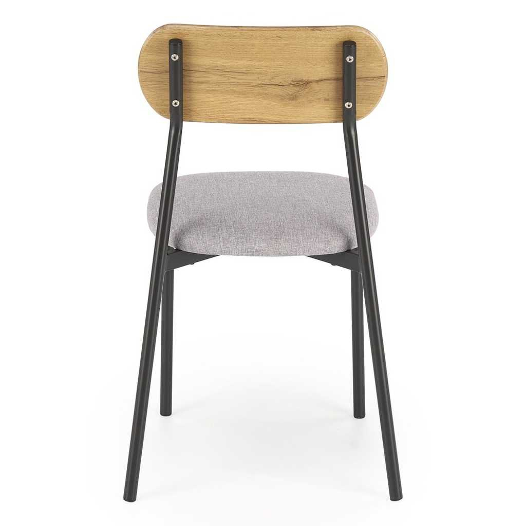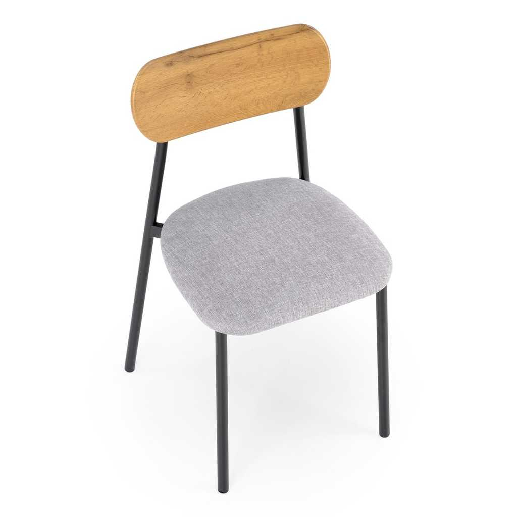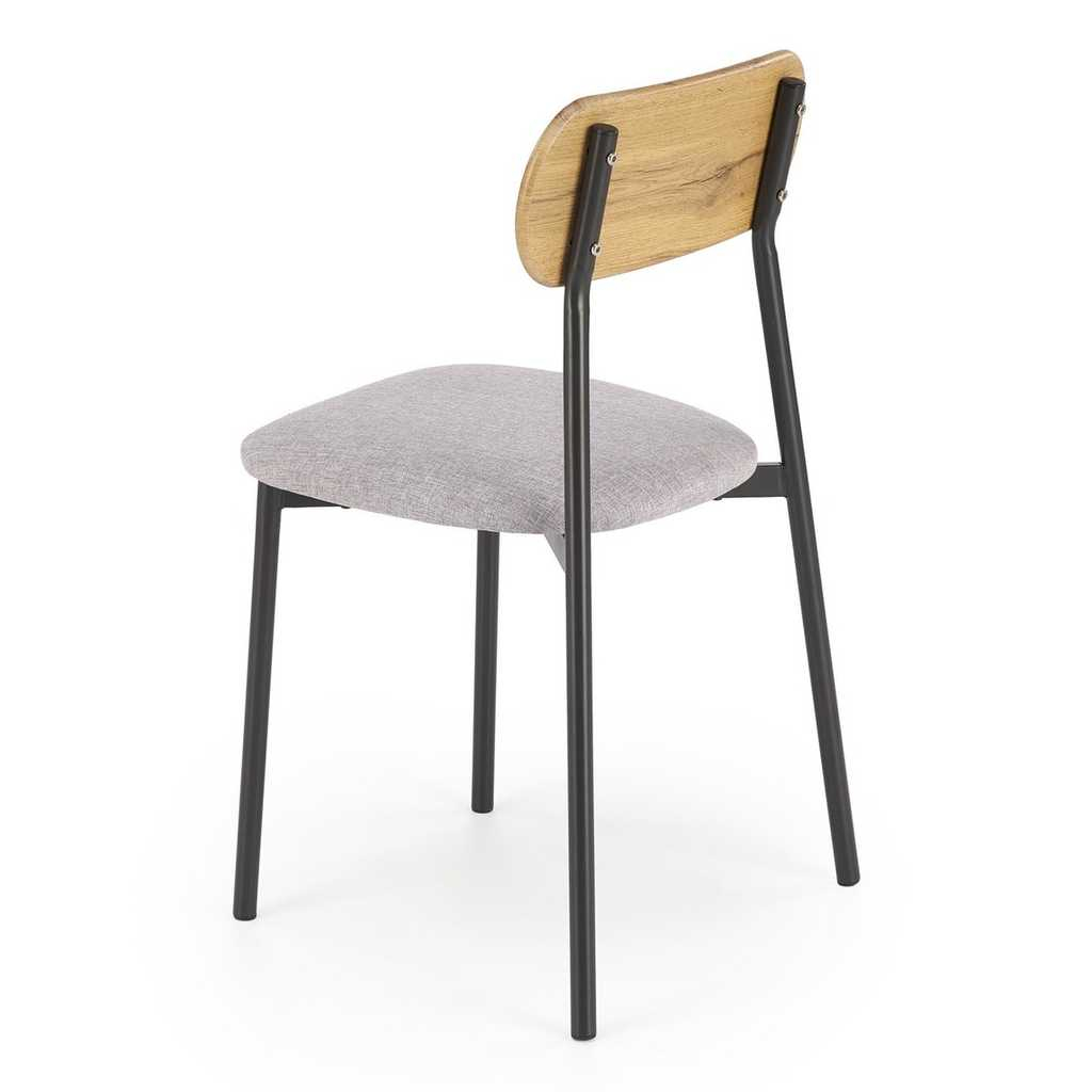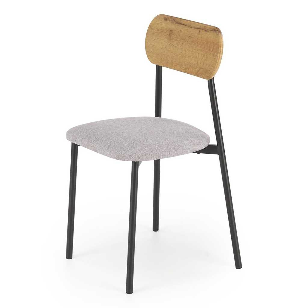Stoličky sú vybavené pohodlným čalúnením, ktoré poskytuje pohodlie počas dlhých posedení pri jedle alebo šálke kávy. Sivá farba látkového čalúnenia krásne kontrastuje s dreveným dekorom a čiernym kovom, čím súprava získava moderný a zároveň nadčasový vzhľad.