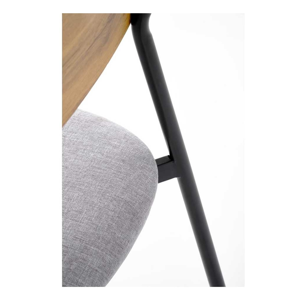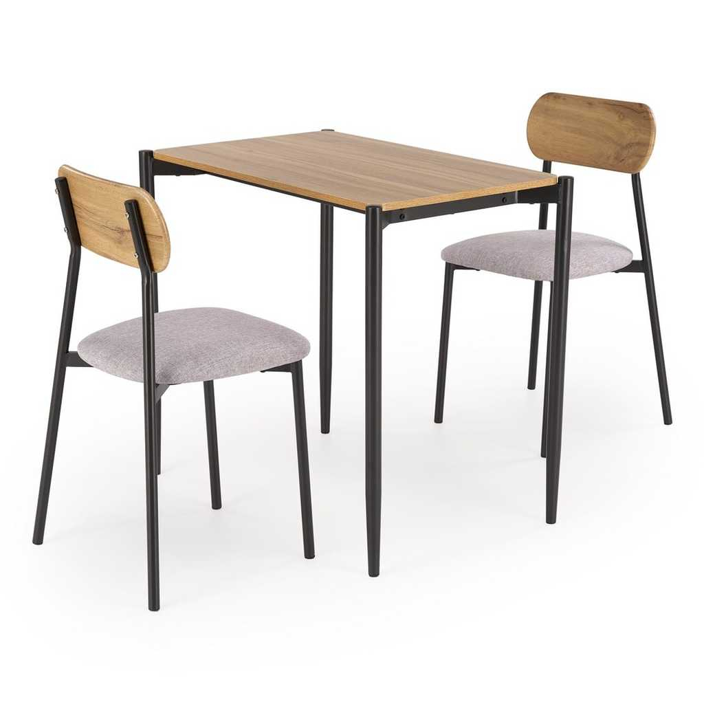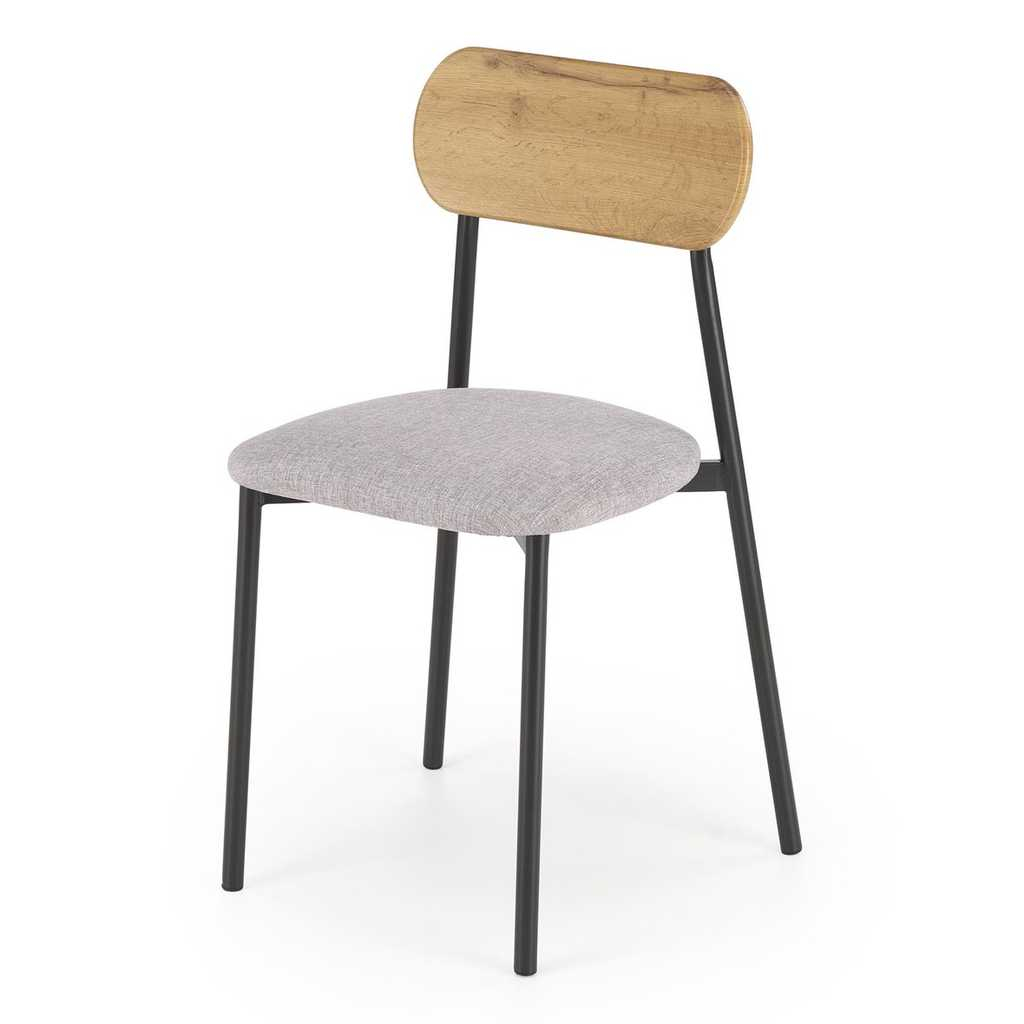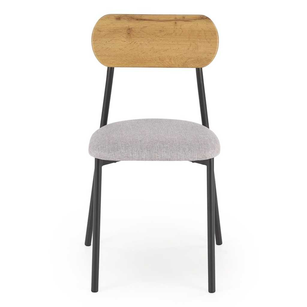 Stoličky sú vybavené pohodlným čalúnením, ktoré poskytuje pohodlie počas dlhých posedení pri jedle alebo šálke kávy. Sivá farba látkového čalúnenia krásne kontrastuje s dreveným dekorom a čiernym kovom, čím súprava získava moderný a zároveň nadčasový vzhľad.