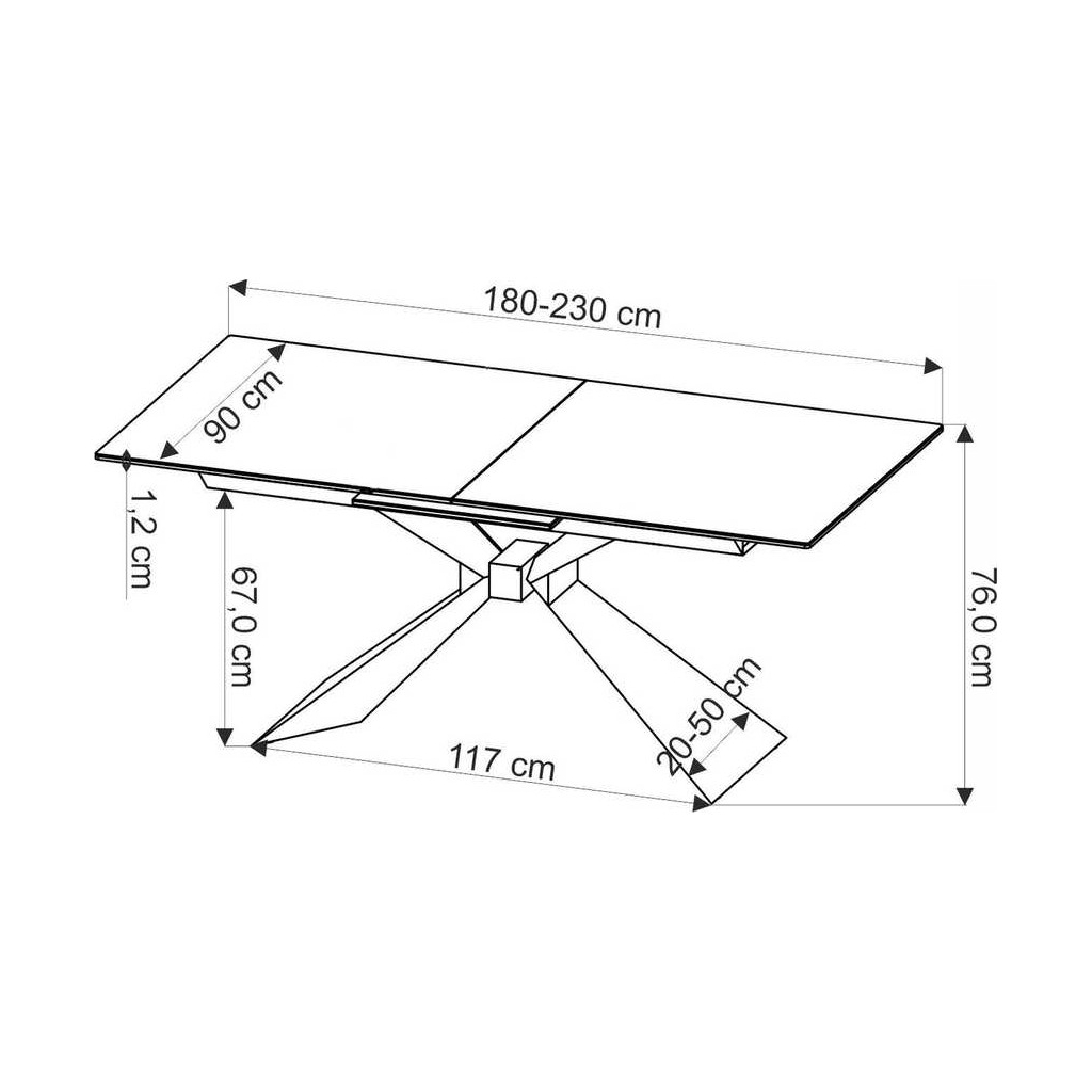 Vďaka obdĺžnikovému tvaru a rozmerom 180 cm na šírku, ktoré je možné rozložiť až na 230 cm, poskytuje dostatočný priestor pre pohodlné stolovanie až pre 8 osôb. Stôl má výšku 76 cm a hĺbku 90 cm, čo je ideálny rozmer pre väčšinu jedálenských priestorov.