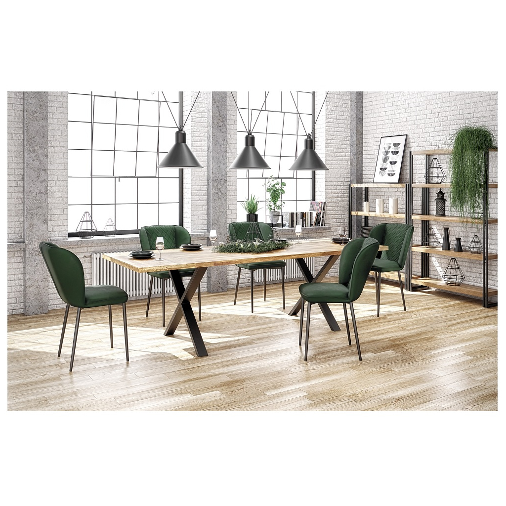 Vrchná doska stola je vyrobená z masívneho dubového dreva. Pevná kovová podnož s práškovanou úpravou povrchu sa postará o celkovú stabilitu stola, ktorého nosnosť je 60 kg.