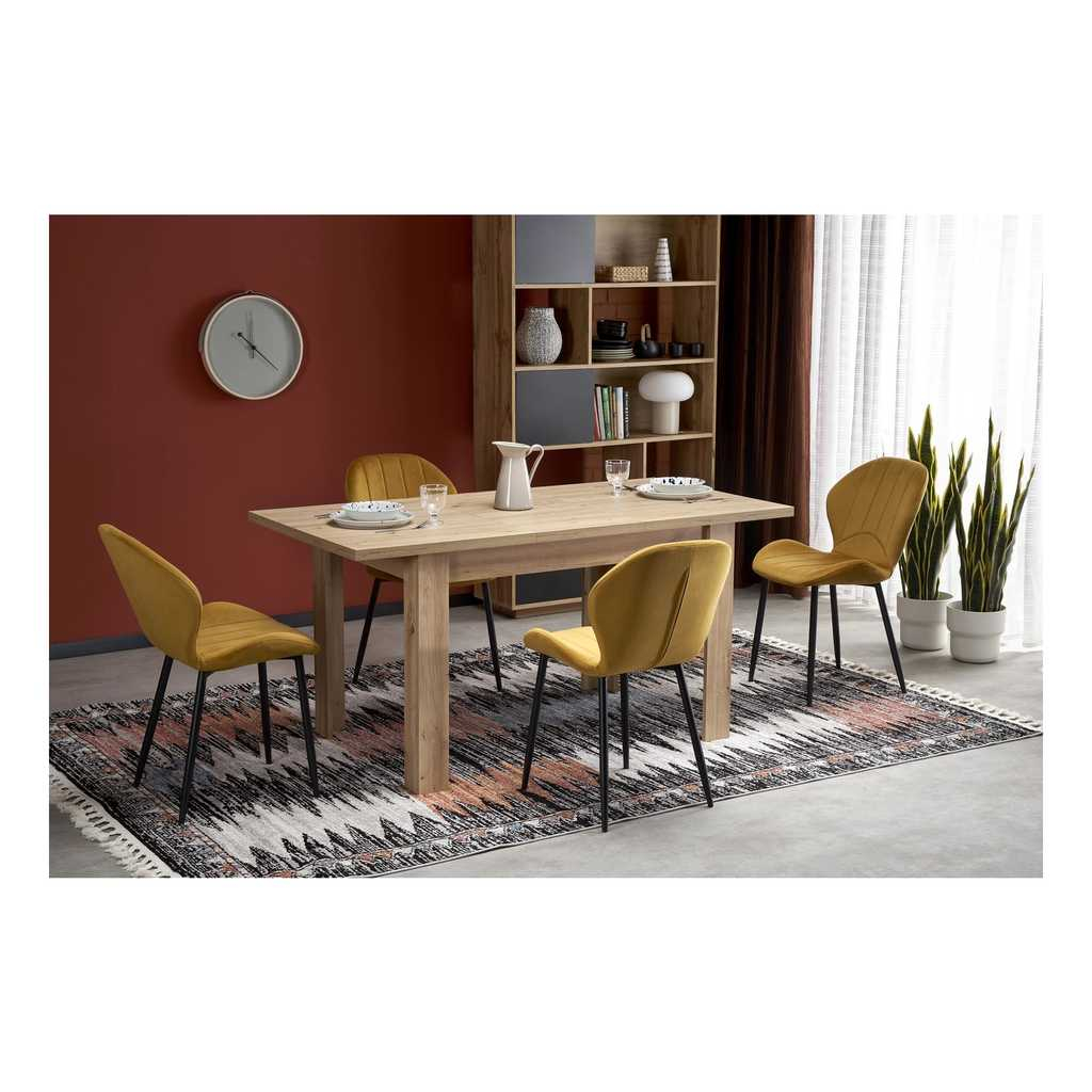 Laminovaná drevotriesková doska, z ktorej je tento stôl vyrobený, ponúka stabilitu a jednoduchú údržbu. Dekor dreva vnáša do interiéru hrejivý a príjemný pocit.