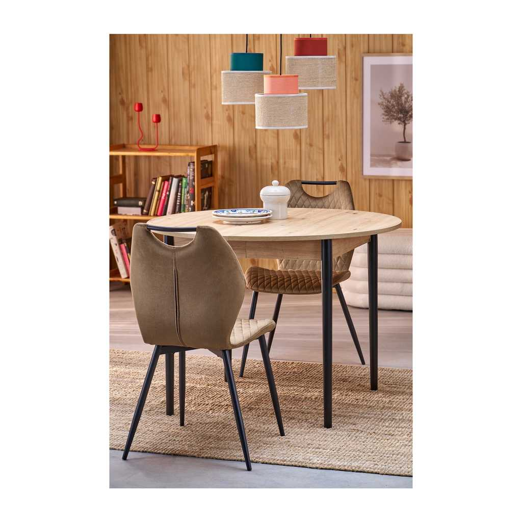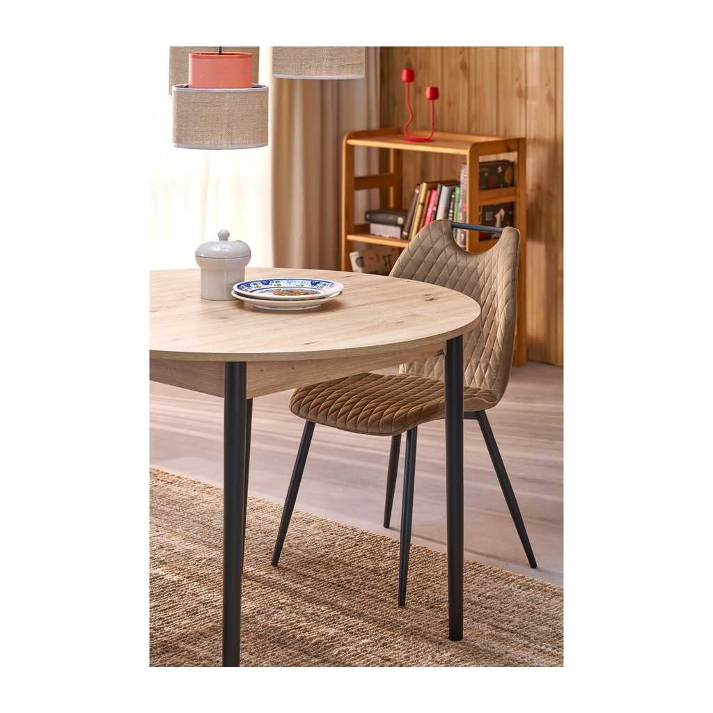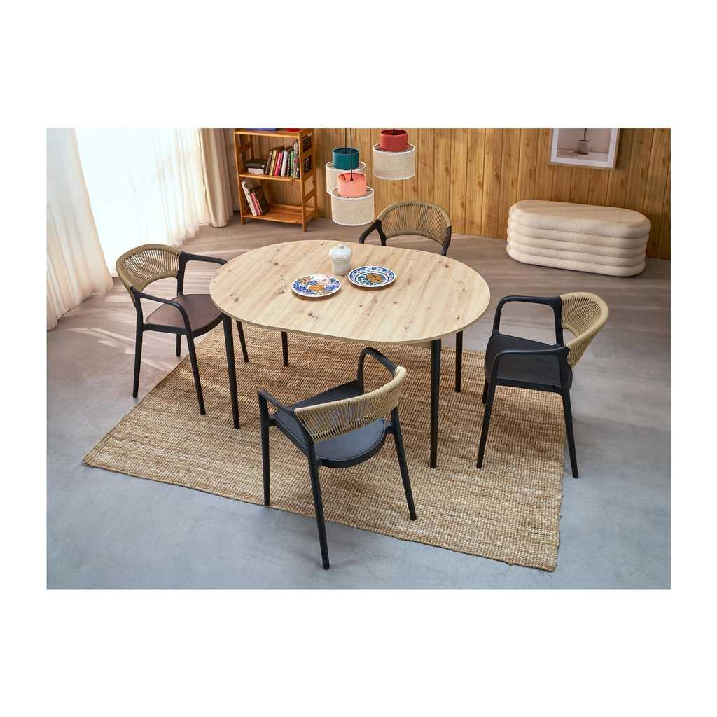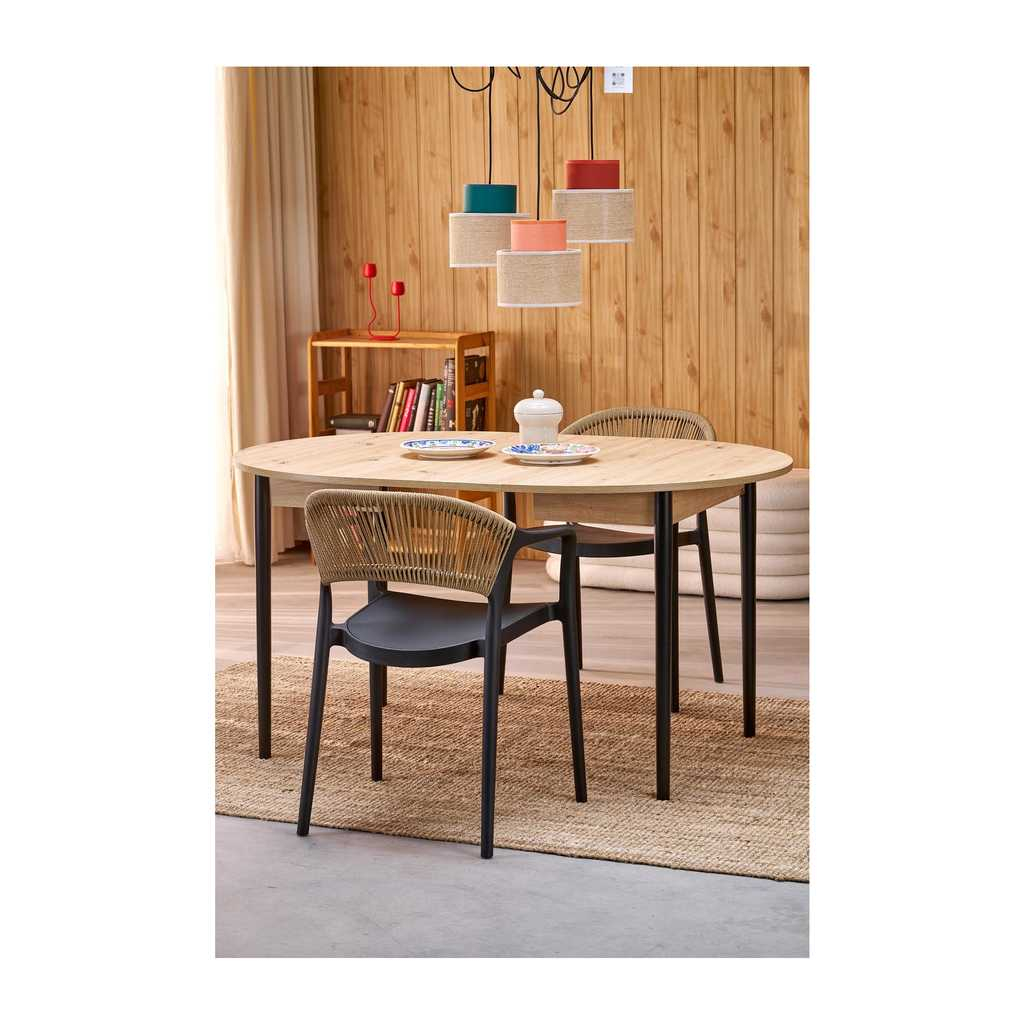 Stôl má moderný dizajn s hladkými líniami a tvarom hornej dosky, ktorý je kombináciou kruhu a oválu, čo dodáva vášmu interiéru elegantný a príjemný vzhľad. Jeho rozmery a ľahká hmotnosť 26,5 kg umožňujú jednoduchú manipuláciu a umiestnenie podľa vašich potrieb.