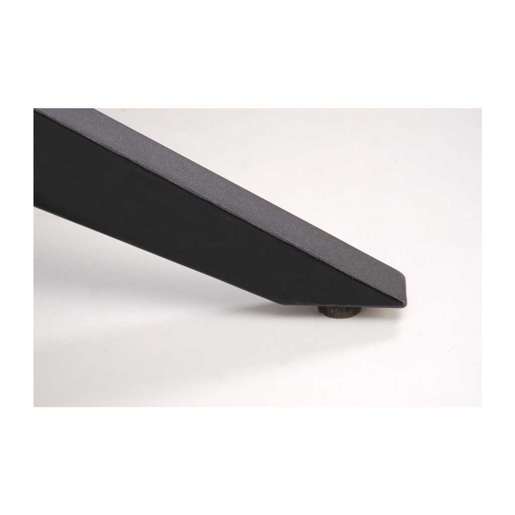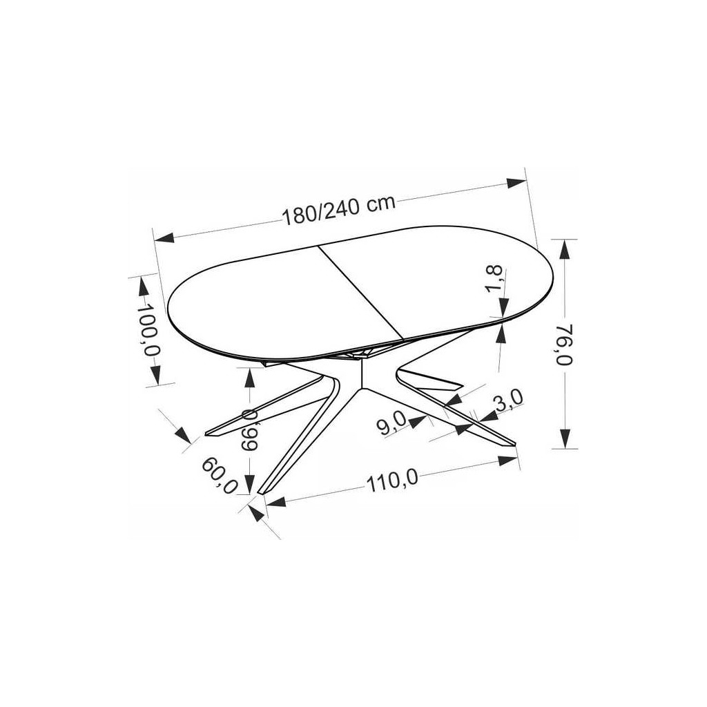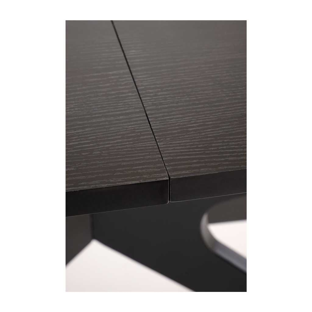 Vrchná doska stola je vyrobená z kvalitného dreva, ktoré dodáva stolíku prirodzený vzhľad a pevnosť. Pevná kovová podnož zabezpečuje stabilitu a dlhodobú odolnosť. Stolík má dĺžku 180 cm, ktorú je možné po rozložení predĺžiť na 240 cm, pričom štandardná výška je 76 cm, čo zaručuje pohodlné sedenie pre každého.