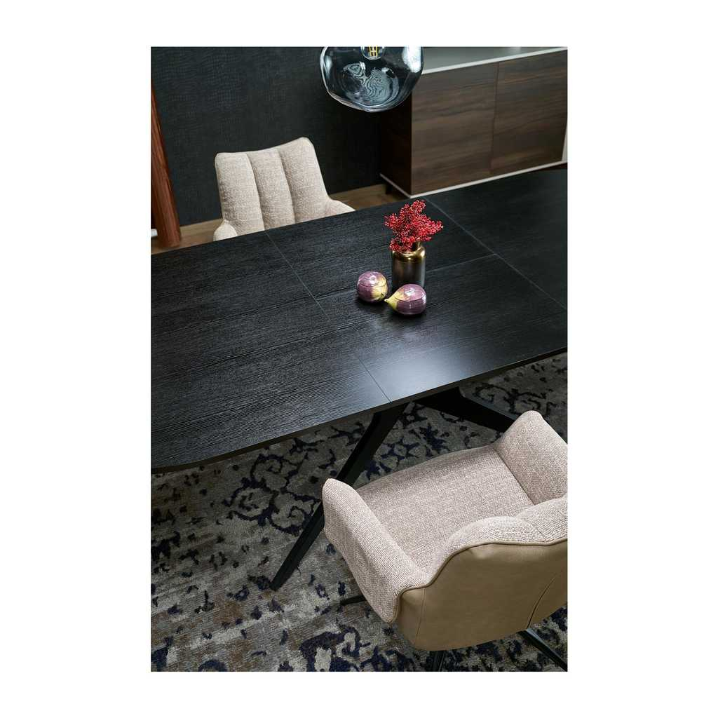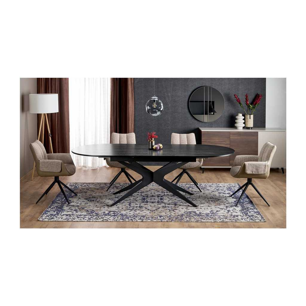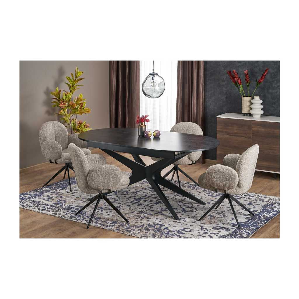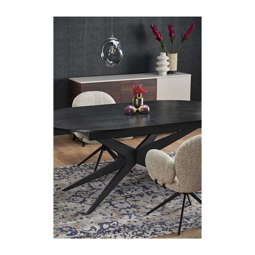 Jedálenský stôl Davis je ideálnym riešením pre moderné domácnosti, ktoré hľadajú štýlový a praktický kus nábytku. Vďaka svojej rozkladacej funkcii ponúka flexibilitu pri zariaďovaní priestoru a možnosť zväčšiť plochu stola podľa potreby. Jeho oválny tvar zabezpečuje pohodlný priestor pre maximálne 8 osôb, čo ho robí ideálnym pre rodinné večere alebo stretnutia s priateľmi.