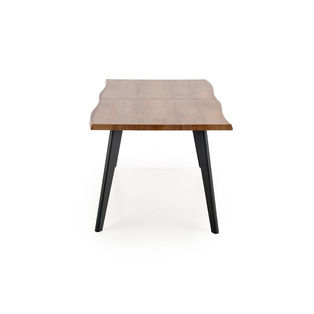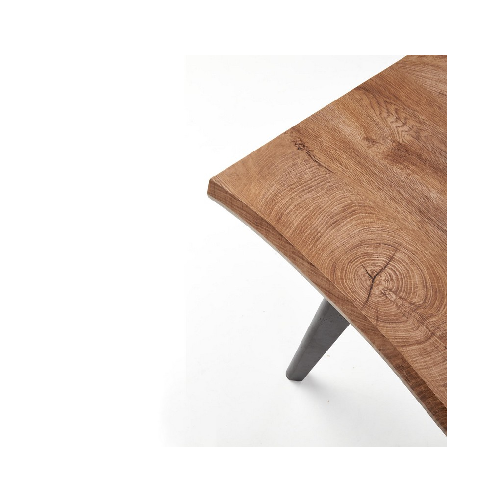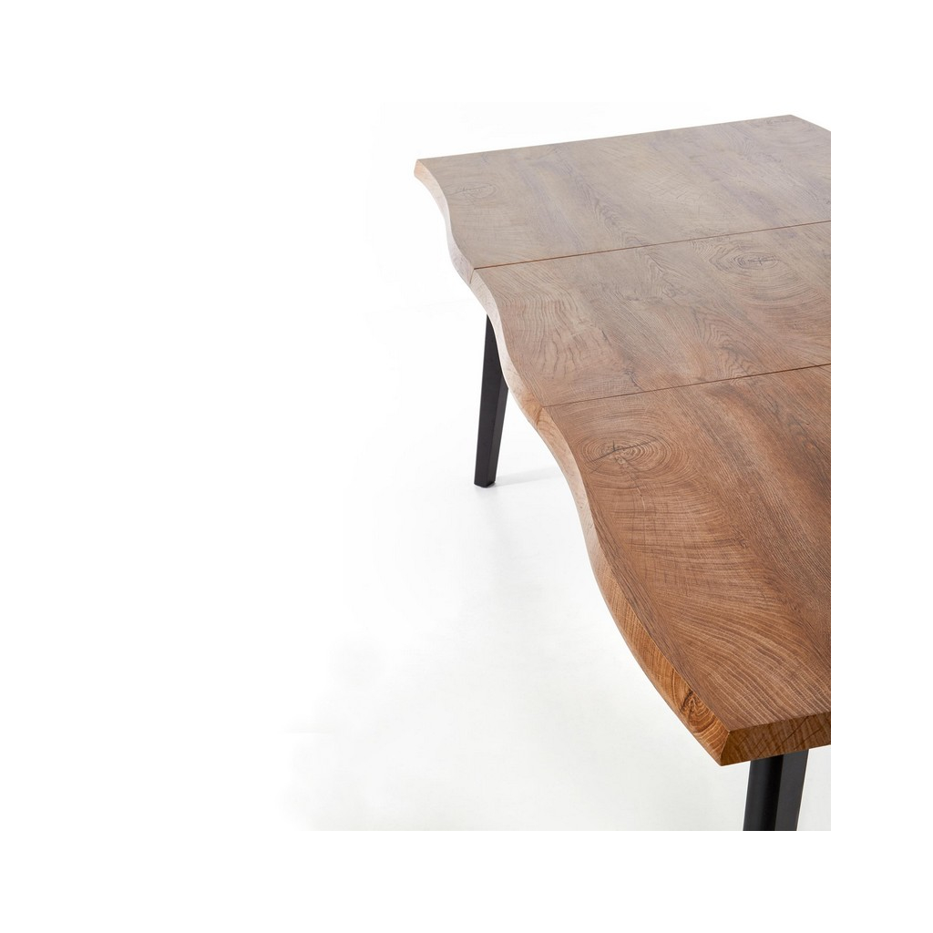 Rozkladací jedálenský stôl Dickson zaujme svojim nepravidelným tvarom a originálnym prevedením. Prírodný vzhľad je neutrálny a bude sa vynímať v moderných aj klasických jedálňach. Premení tak každú večeru na slávnostný okamih.