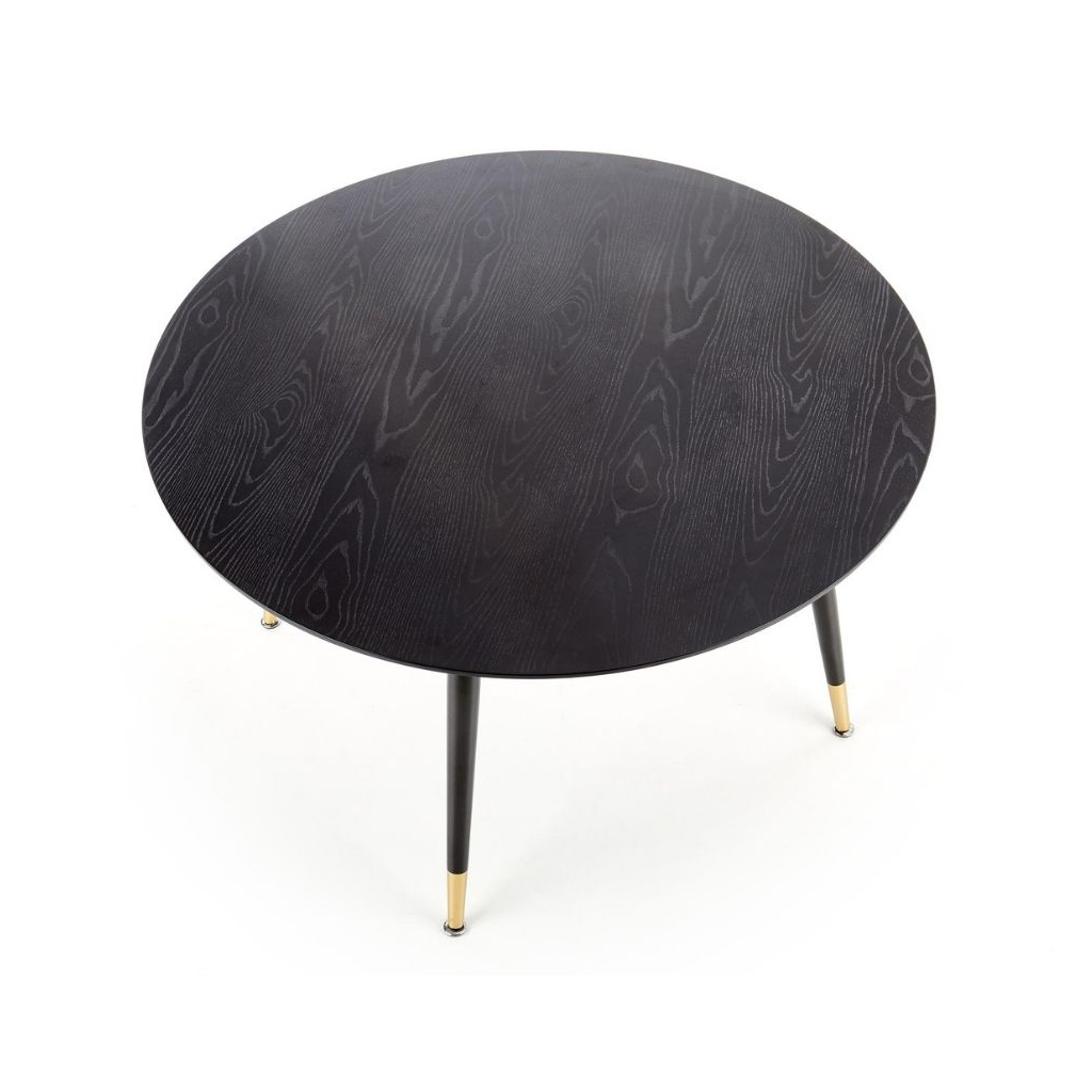 Horná okrúhla doska o priemere 120 cm je vyrobená z dýhovanej MDF dosky v čiernej farbe a pohodlne usadí až 4 osoby. Nohy stola sú v kombinácii chromovanej a lakovanej ocele a dodávajú stolu príjemný moderný vzhľad. Maximálna nosnosť stola Embos je 30 kg.