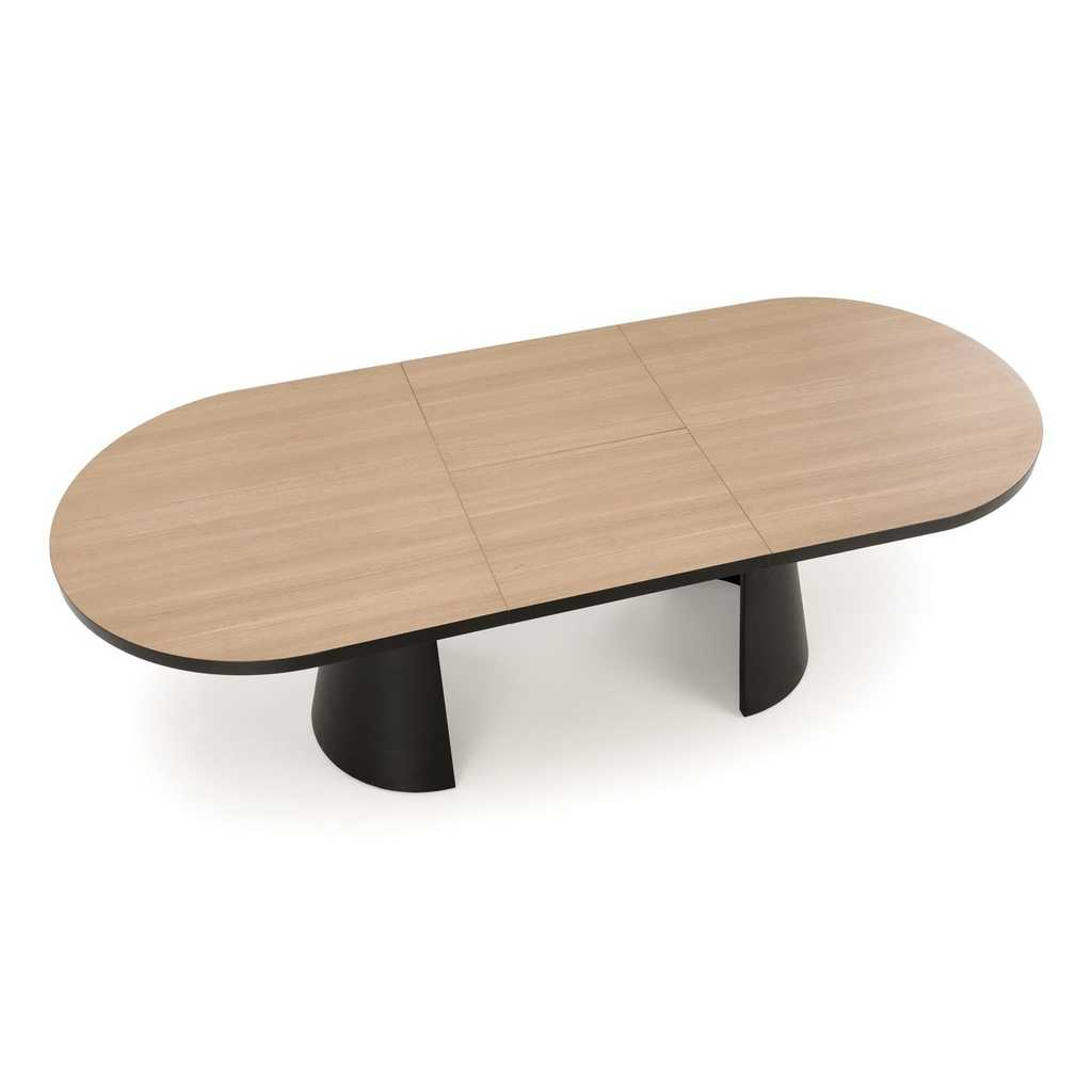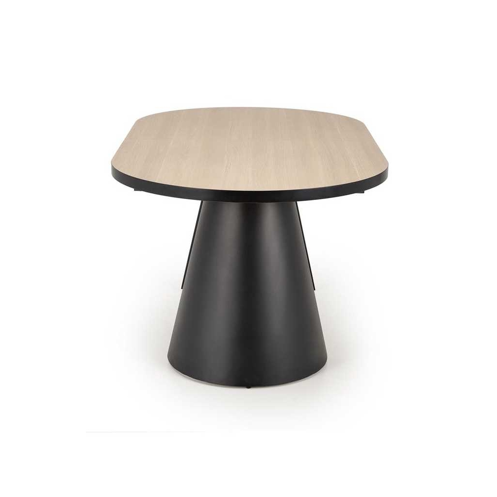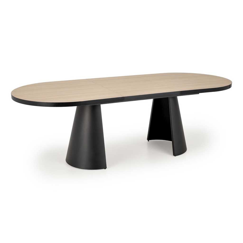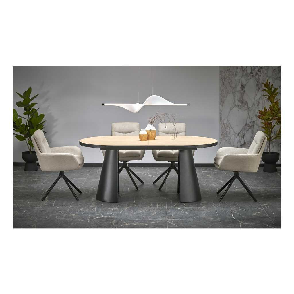 Doska stola je vyrobená z kombinácie dyhovanej MDF a melamínu, čo jej dodáva prirodzený vzhľad s hladkým a odolným povrchom. Tento materiál je ideálny na každodenné používanie vďaka jednoduchej údržbe a odolnosti voči poškodeniu. Prírodný odtieň dyhy dodáva stolu teplý a prívetivý vzhľad, ktorý krásne doplní každý moderný interiér.