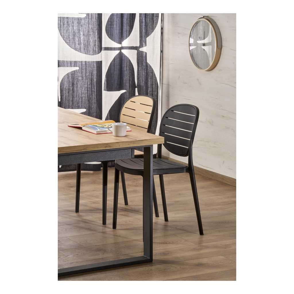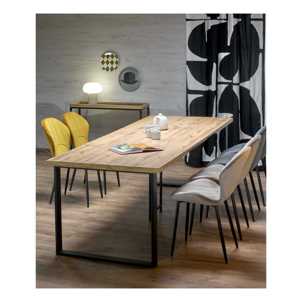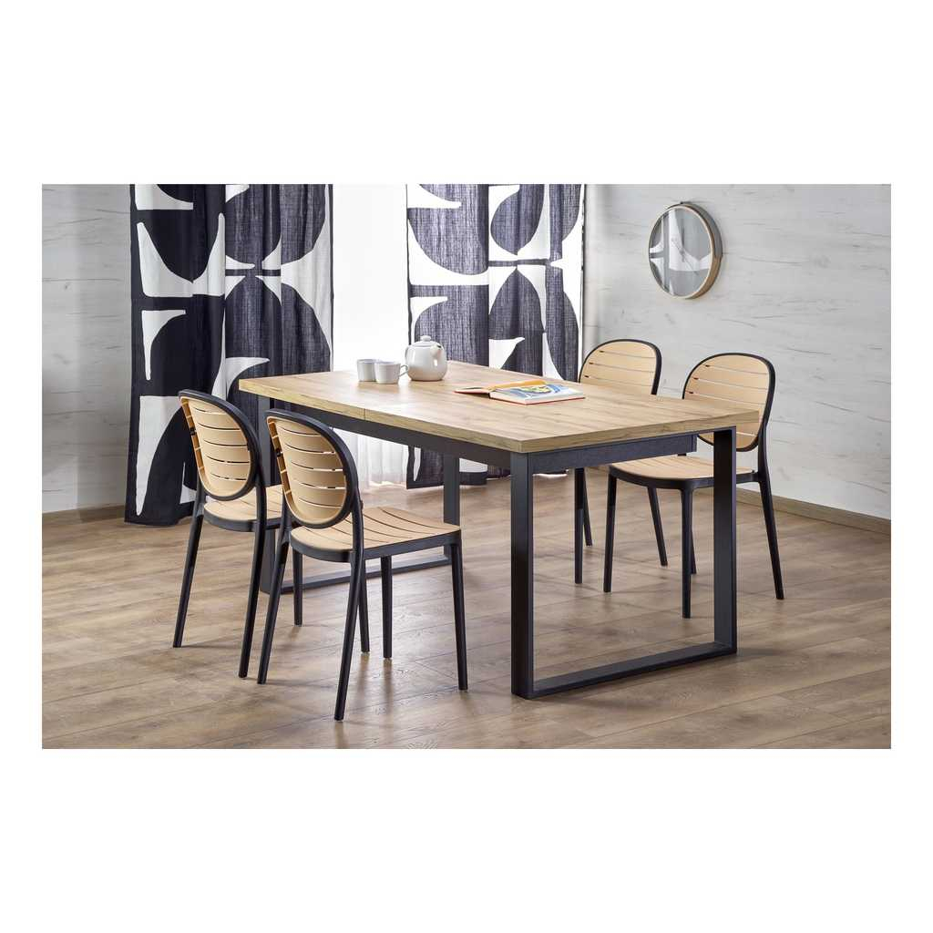 Doska stola je vyrobená z laminovanej drevotrieskovej dosky. Vzhľad prírodného dreva pôsobí hrejivo a prirodzene, takže sa skvele hodí do rôznych štýlov interiéru - od moderného až po rustikálny. Povrch je nielen krásny, ale aj odolný, takže je ideálny na každodenné používanie.