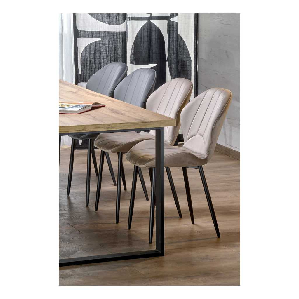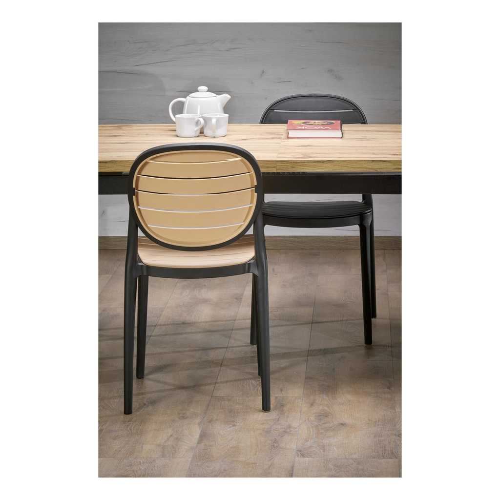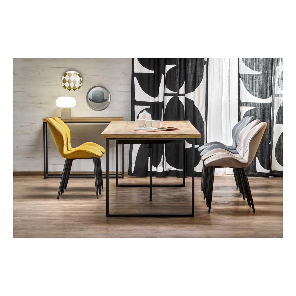 Doska stola je vyrobená z laminovanej drevotrieskovej dosky. Vzhľad prírodného dreva pôsobí hrejivo a prirodzene, takže sa skvele hodí do rôznych štýlov interiéru - od moderného až po rustikálny. Povrch je nielen krásny, ale aj odolný, takže je ideálny na každodenné používanie.
