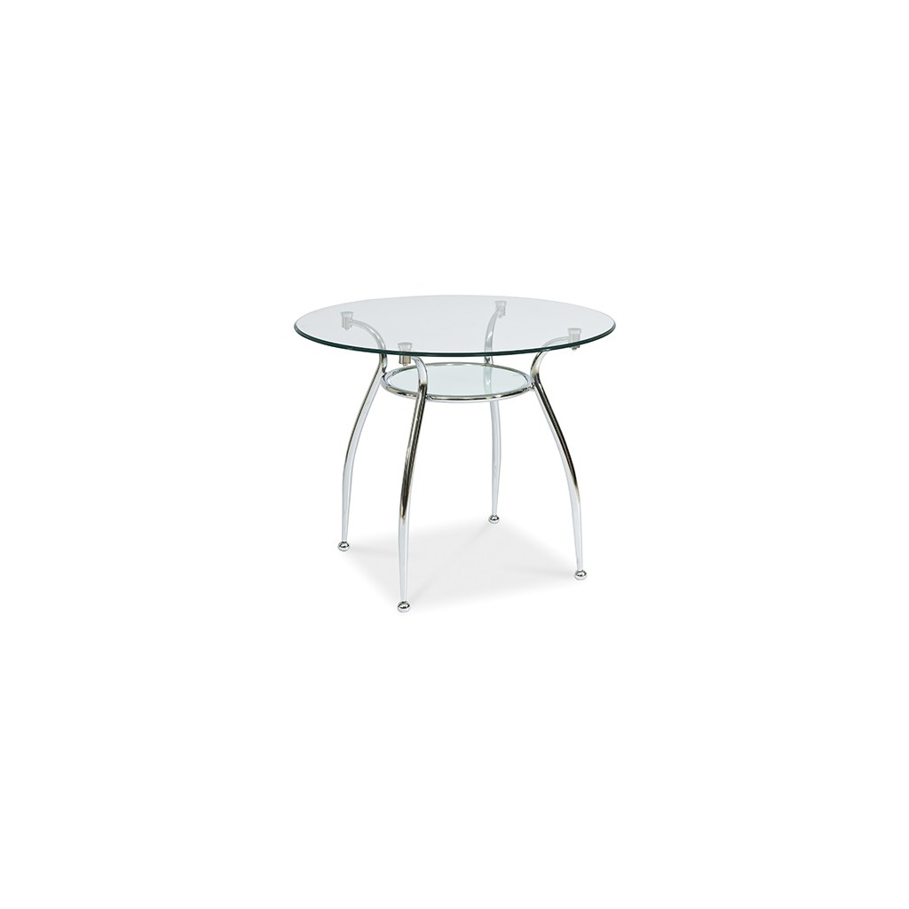 Kovová podnož v chrómovanom prevedení pôsobí veľmi efektne a vyniká celkovou stabilitou. Stôl sa tiež môže pýšiť menšou poličkou na odloženie predmetov.