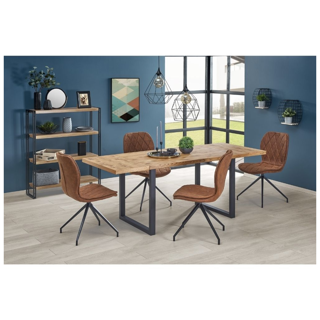 Oceľové nohy sú čierne lakované a dodávajú stolu krásny a prírodný vzhľad. Jedálenská plocha je zhotovená z dyhovanej MDF dosky v dekore prírodného dreva.