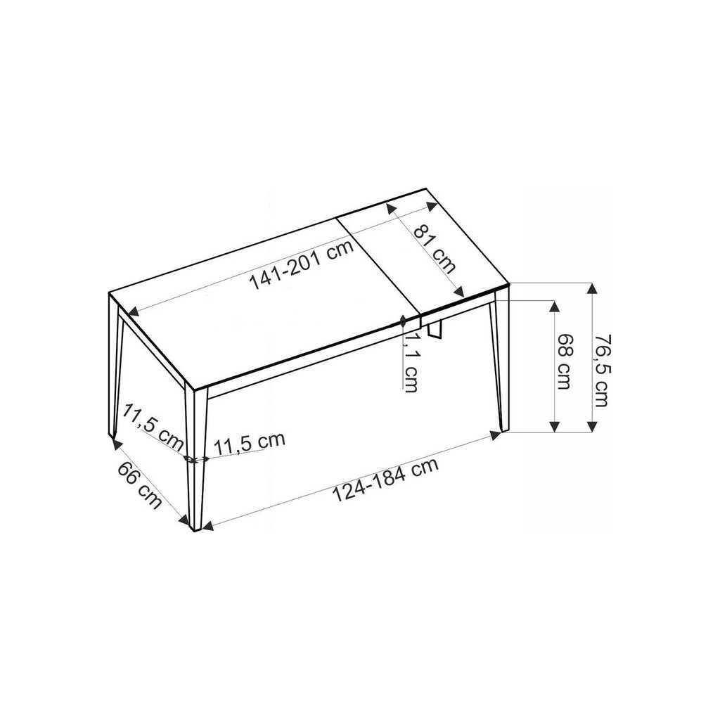 Jedálenský stôl Jonathan pojme až 8 osôb, čo ho robí vhodným riešením pre väčšie spoločnosti. Rozložením sa jeho dĺžka zväčší zo základných 141 cm na impozantných 201 cm, čím získate dostatok miesta pre všetkých hostí.