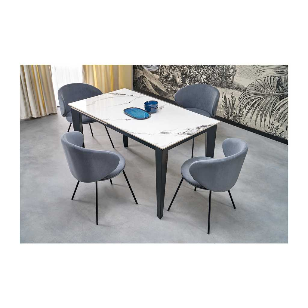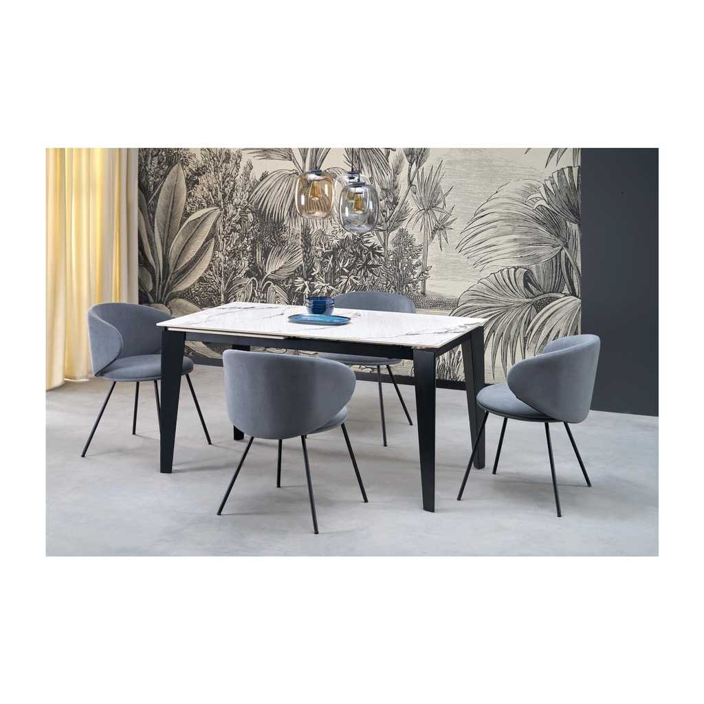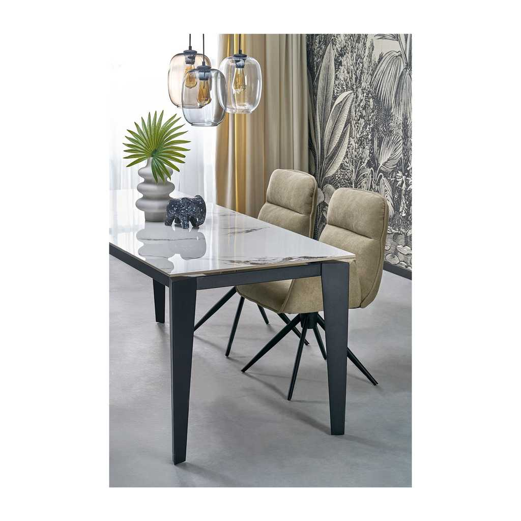 Jedálenský stôl Jonathan je štýlový a praktický doplnok do každej jedálne alebo kuchyne. Vďaka kvalitnej kamennej doske poskytuje pevný a odolný pracovný povrch, ktorý je zároveň elegantný a ľahko sa udržiava. Kovová podnož zaručuje stabilitu a dlhú životnosť stola. Tento stôl je ideálny pre rodinné stolovania alebo večierky, pretože je rozkladací a umožňuje zväčšiť svoju dĺžku podľa potreby.
