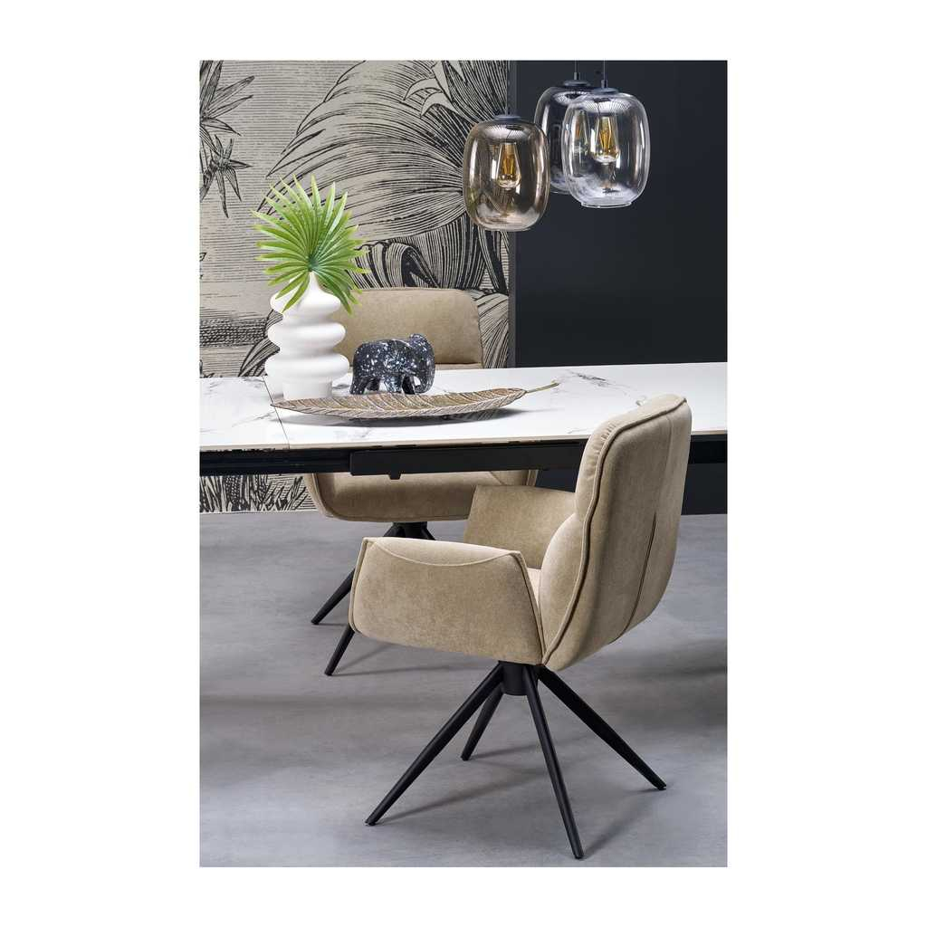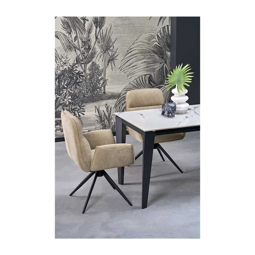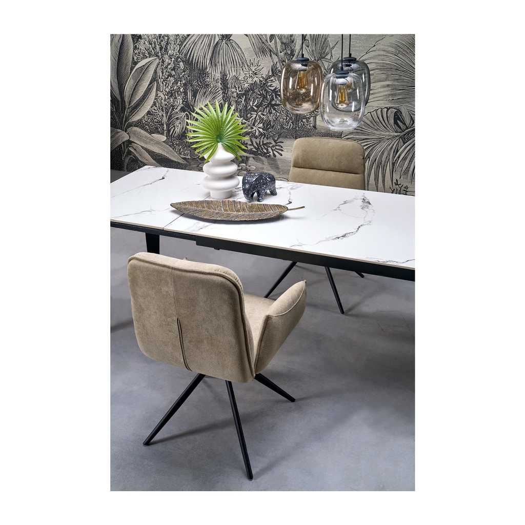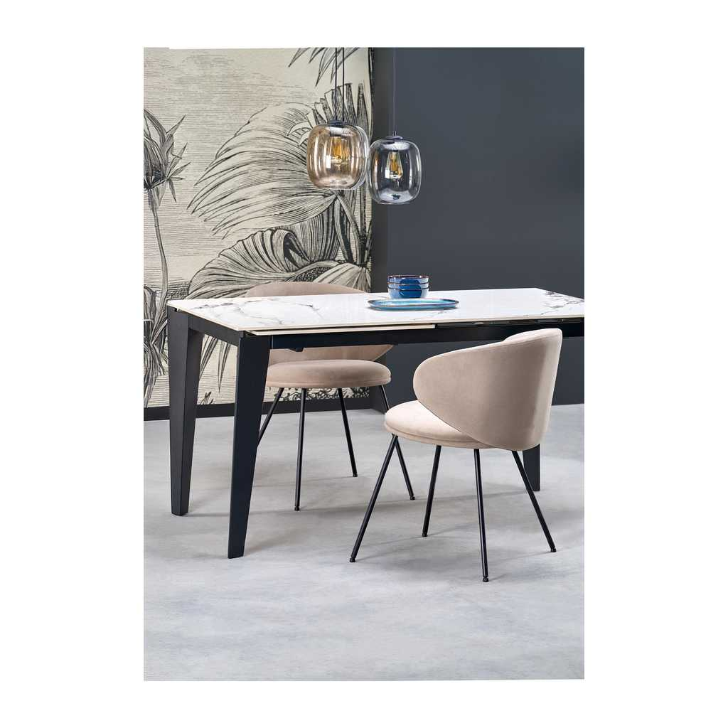 Jedálenský stôl Jonathan je štýlový a praktický doplnok do každej jedálne alebo kuchyne. Vďaka kvalitnej kamennej doske poskytuje pevný a odolný pracovný povrch, ktorý je zároveň elegantný a ľahko sa udržiava. Kovová podnož zaručuje stabilitu a dlhú životnosť stola. Tento stôl je ideálny pre rodinné stolovania alebo večierky, pretože je rozkladací a umožňuje zväčšiť svoju dĺžku podľa potreby.