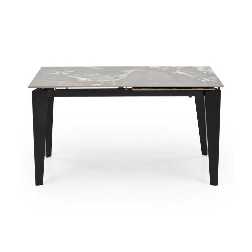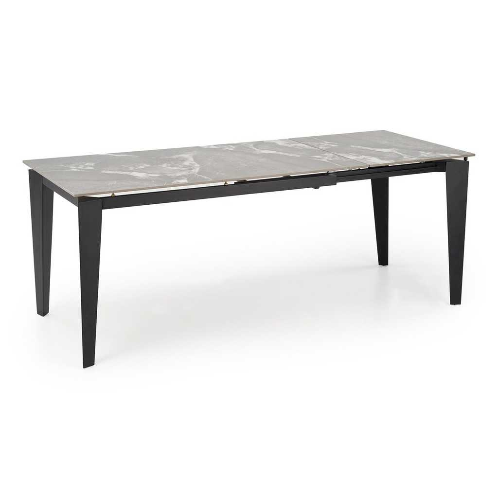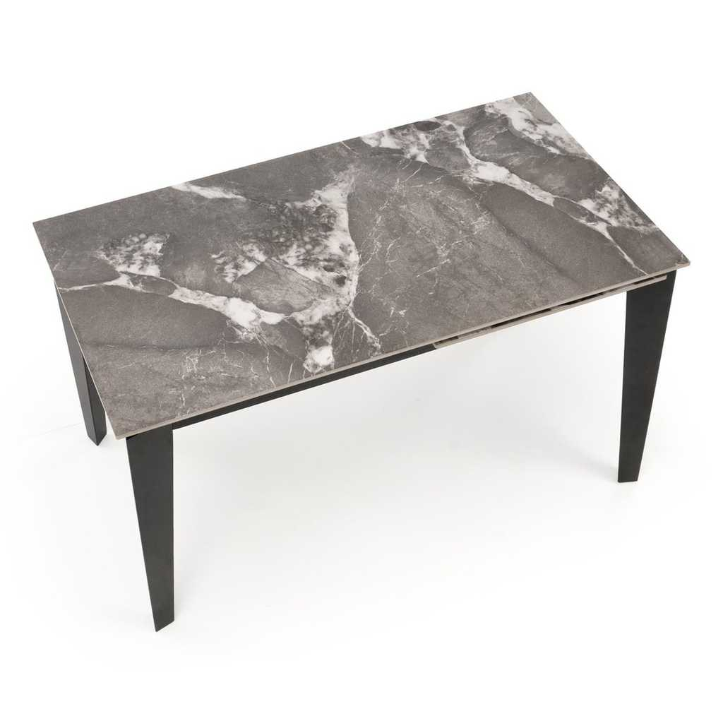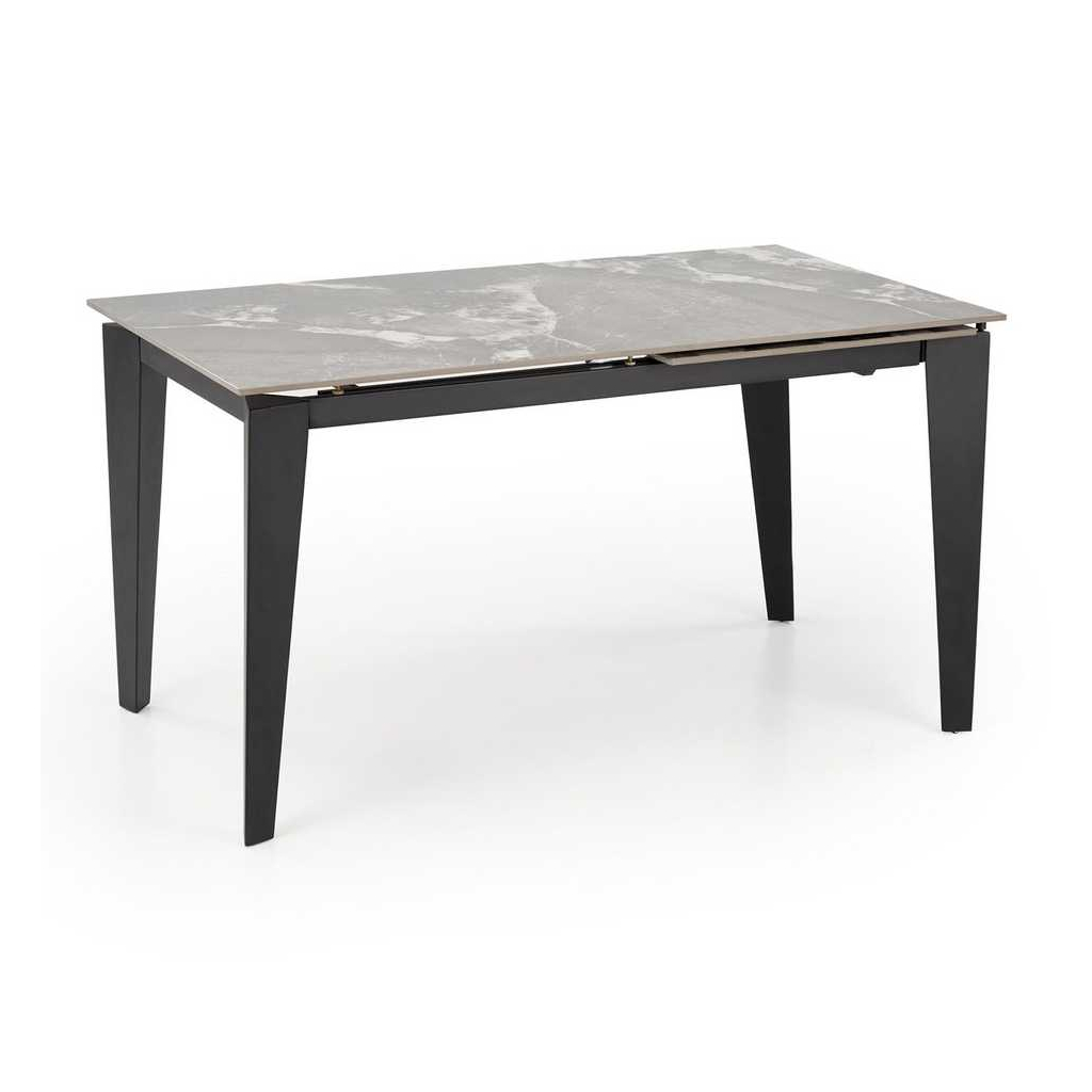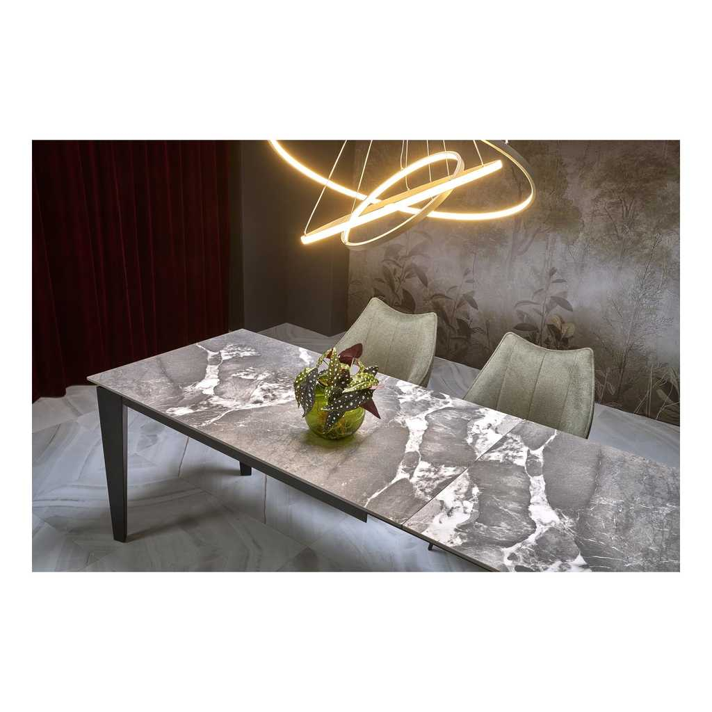 Doska stola je vyrobená zo sintra, vizuálne ohromujúci povrch vytvára dekor mramoru. Stabilitu a eleganciu stolu dodáva jeho oceľová podnož s práškovým nástrekom, ktorú tvoria 4 nohy. Napriek svojej pevnosti pôsobí podnož vzdušne a zabezpečuje dokonalé ukotvenie stola k podlahe. Celá konštrukcia stola je navrhnutá tak, aby uniesla 40 kg dobrôt.