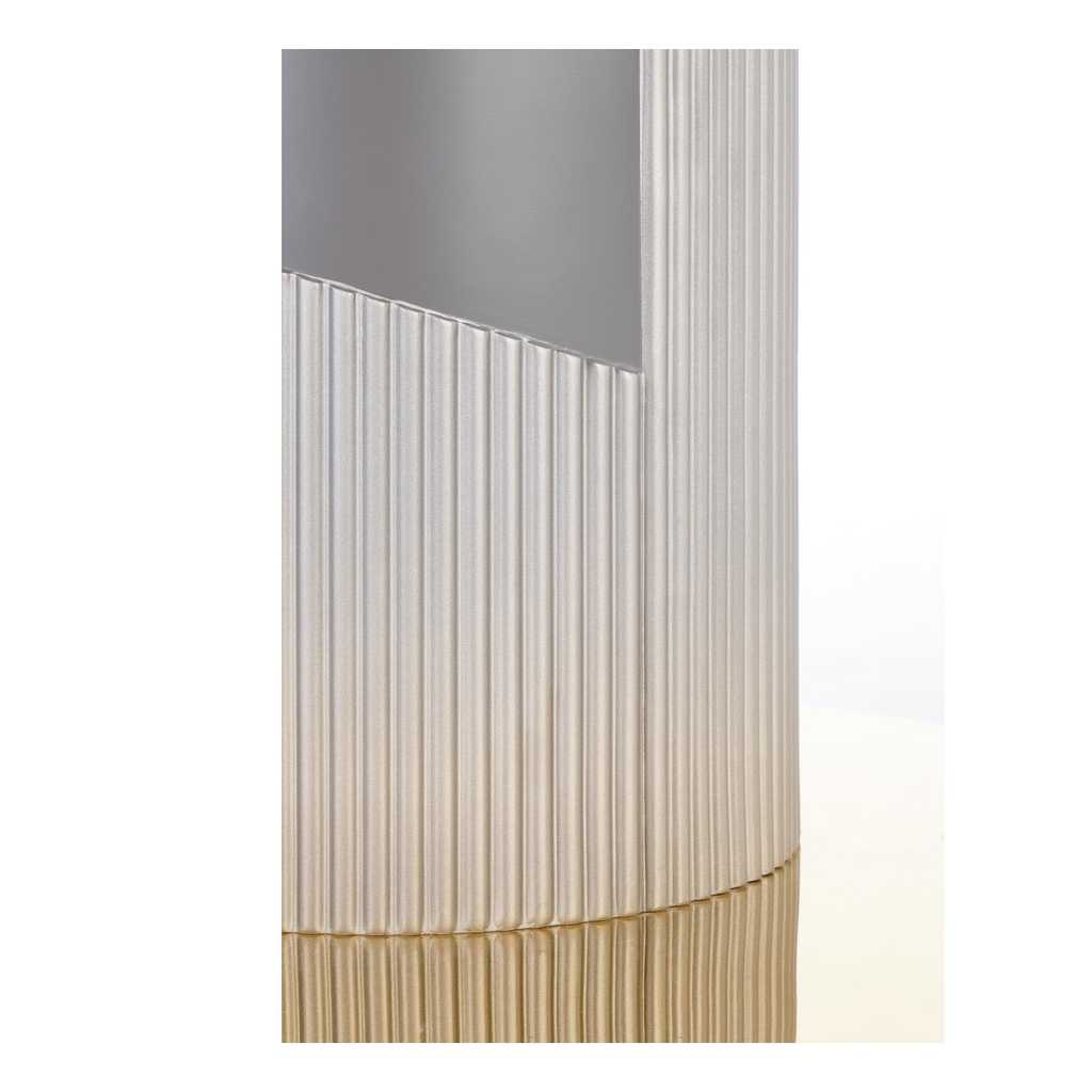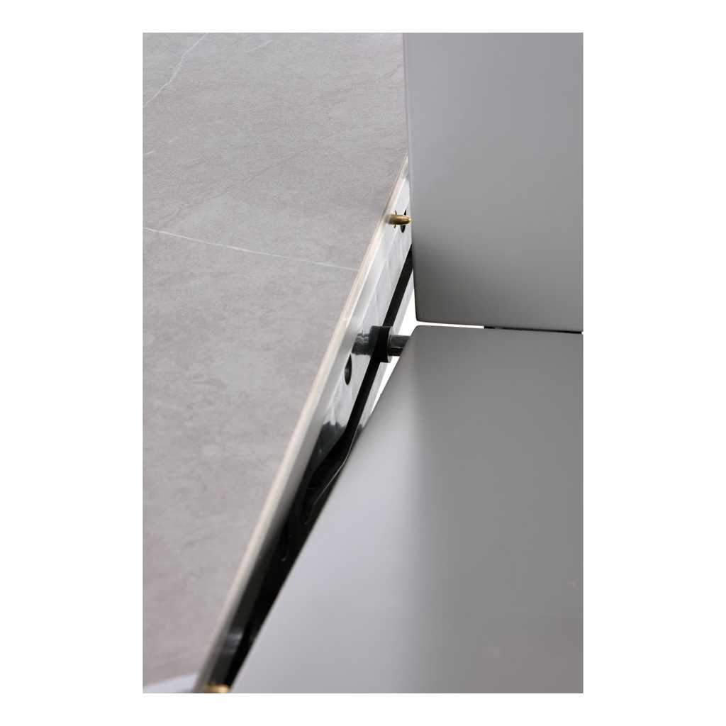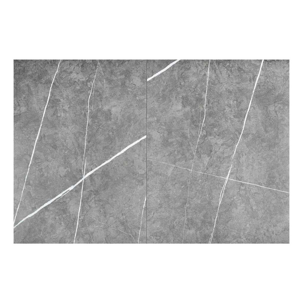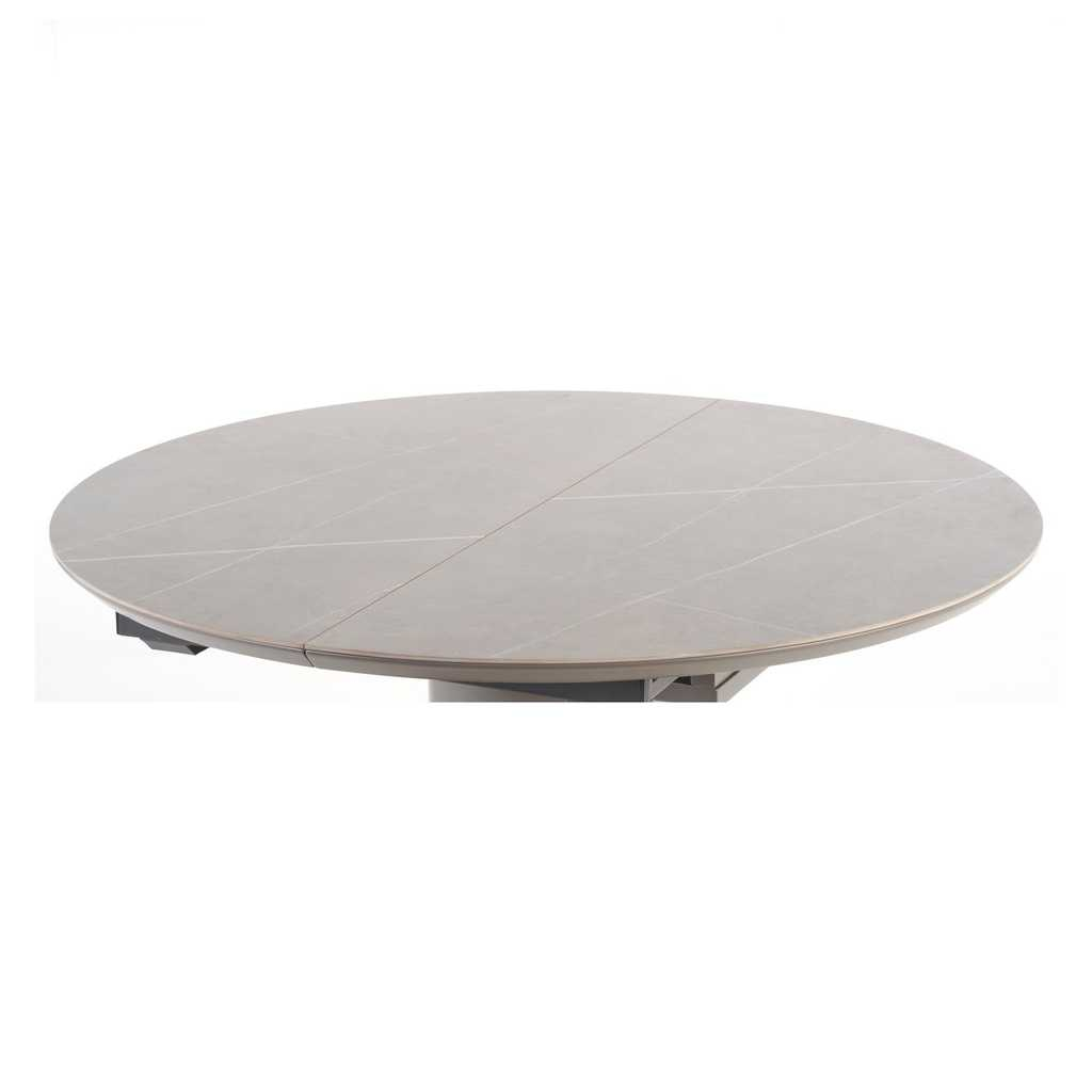 Doska stola je vyrobená z lakovanej MDF a keramiky s efektným mramorovým povrchom. Stabilitu a honosnosť stolu dodáva jeho podnož z chrómovanej ocele a plastu. Zlatá podnož je dizajnovým prvkom a zároveň zabezpečuje pevné ukotvenie stola k podlahe. Celá konštrukcia stola je navrhnutá tak, aby zvládla zaťaženie 60 kg dobrôt.