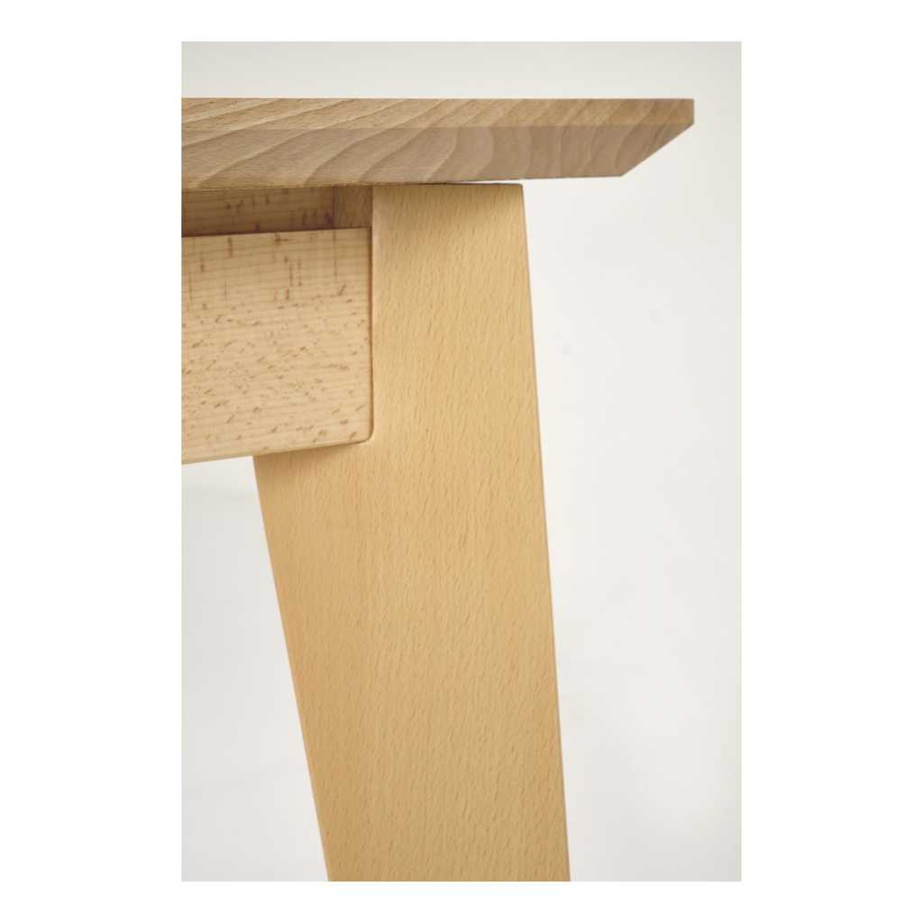 Nohy stola sú vyrobené z masívneho bukového dreva. To zaručuje pevnosť a stabilitu celej konštrukcie. Bukové drevo je známe svojou tvrdosťou a odolnosťou, vďaka čomu má stôl dlhú životnosť a dodáva interiéru pocit útulnosti.