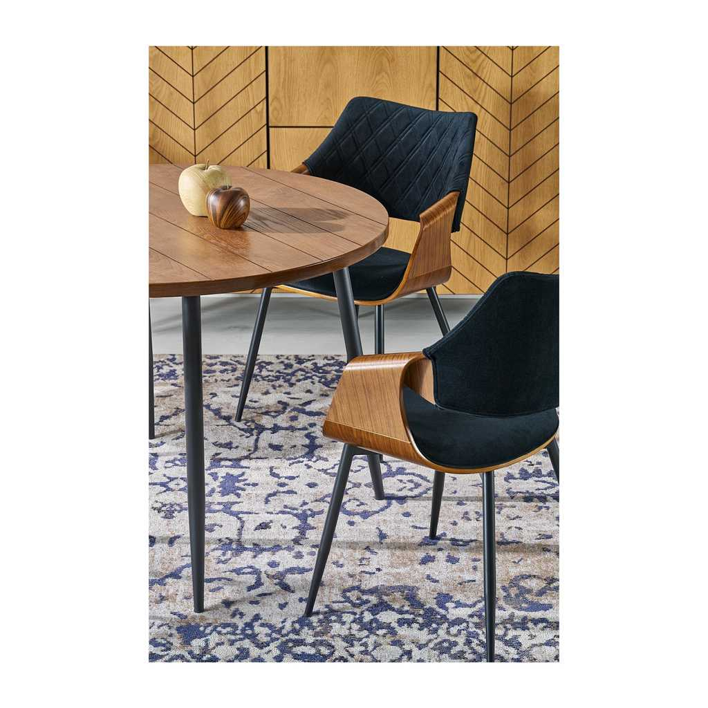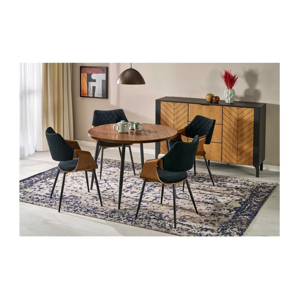 Jedálenský stôl Laplace vnesie do vašej jedálne štýlový a funkčný prvok. Jeho kruhový tvar poskytuje príjemnú atmosféru pre spoločné stolovanie a umožňuje pohodlné miesto pre až štyri osoby. Vďaka pevnej drevenej doske a robustnej kovovej podnoži je stôl stabilný a odolný, pripravený na každodenné použitie.