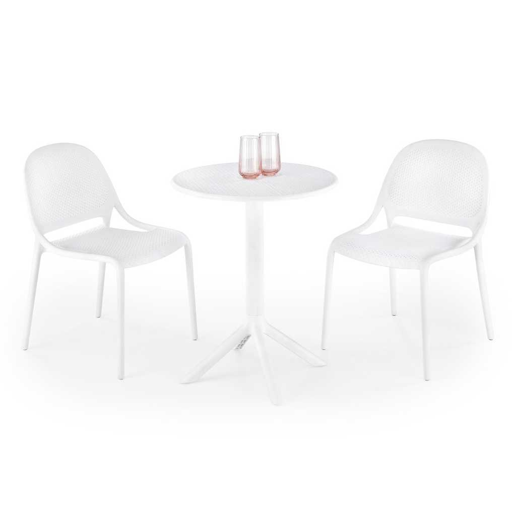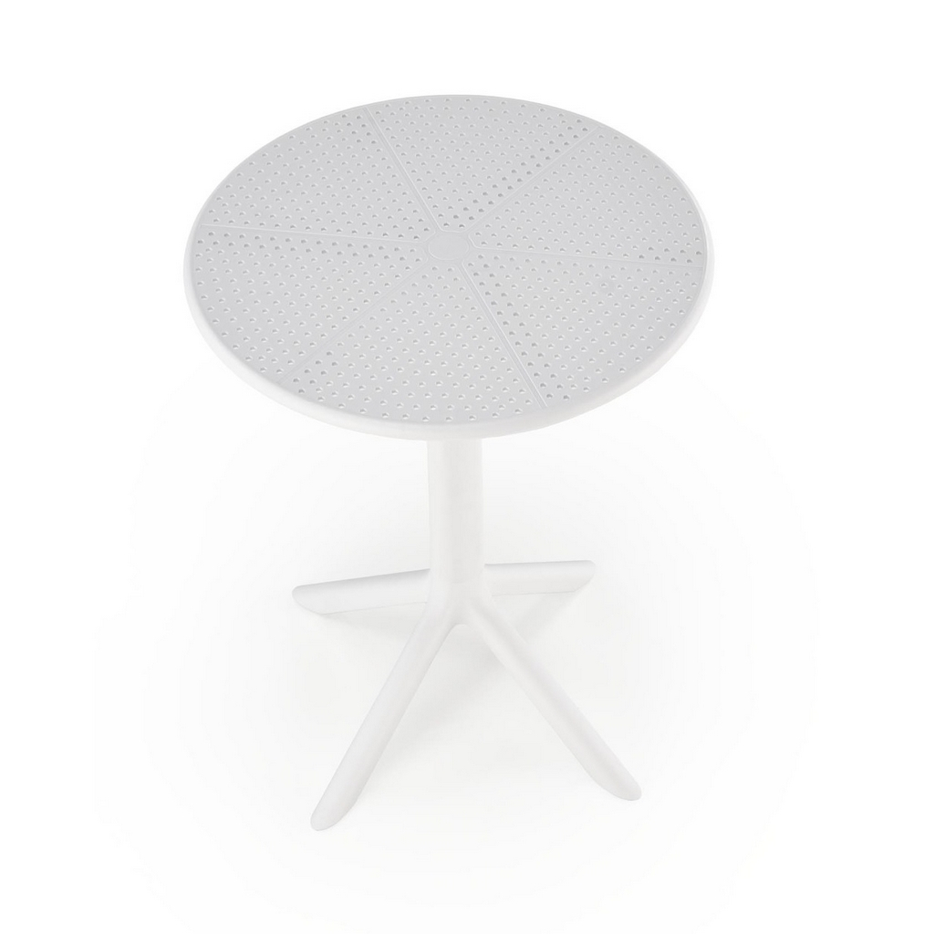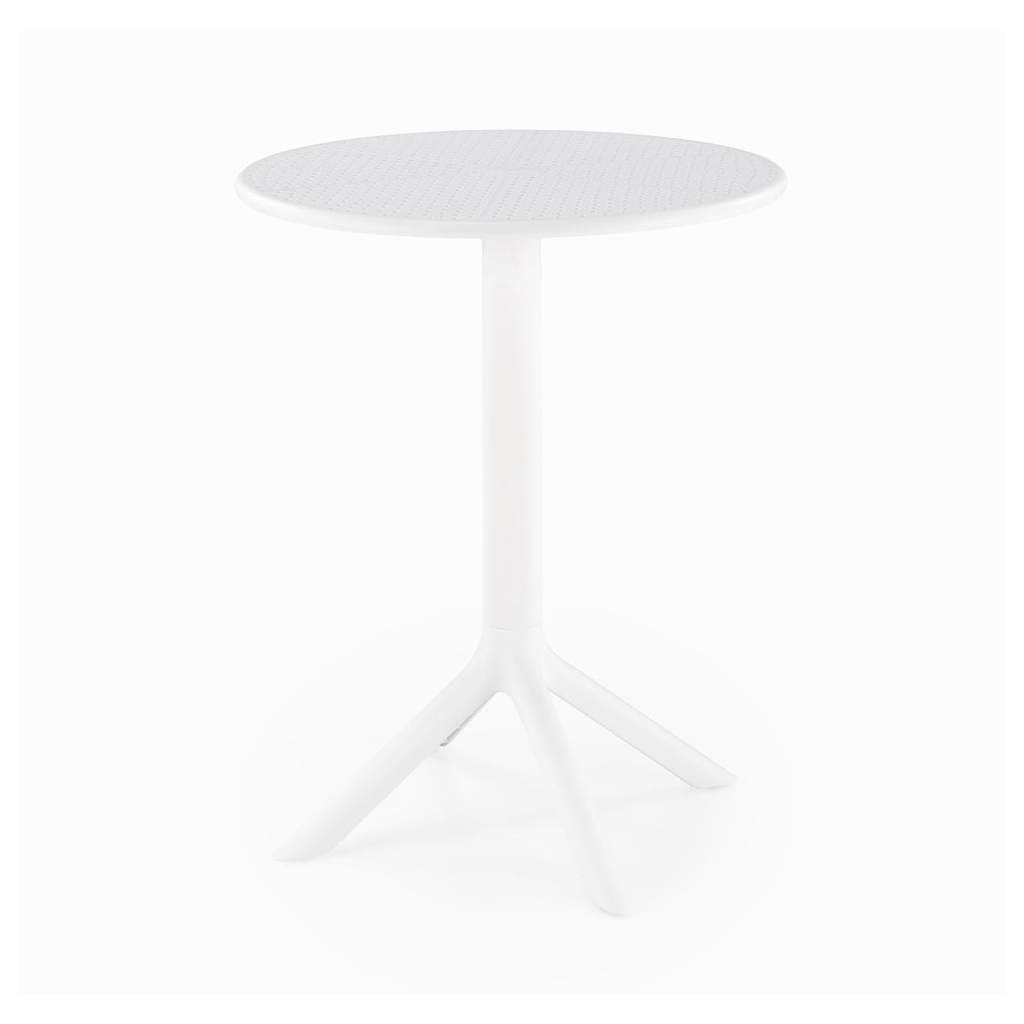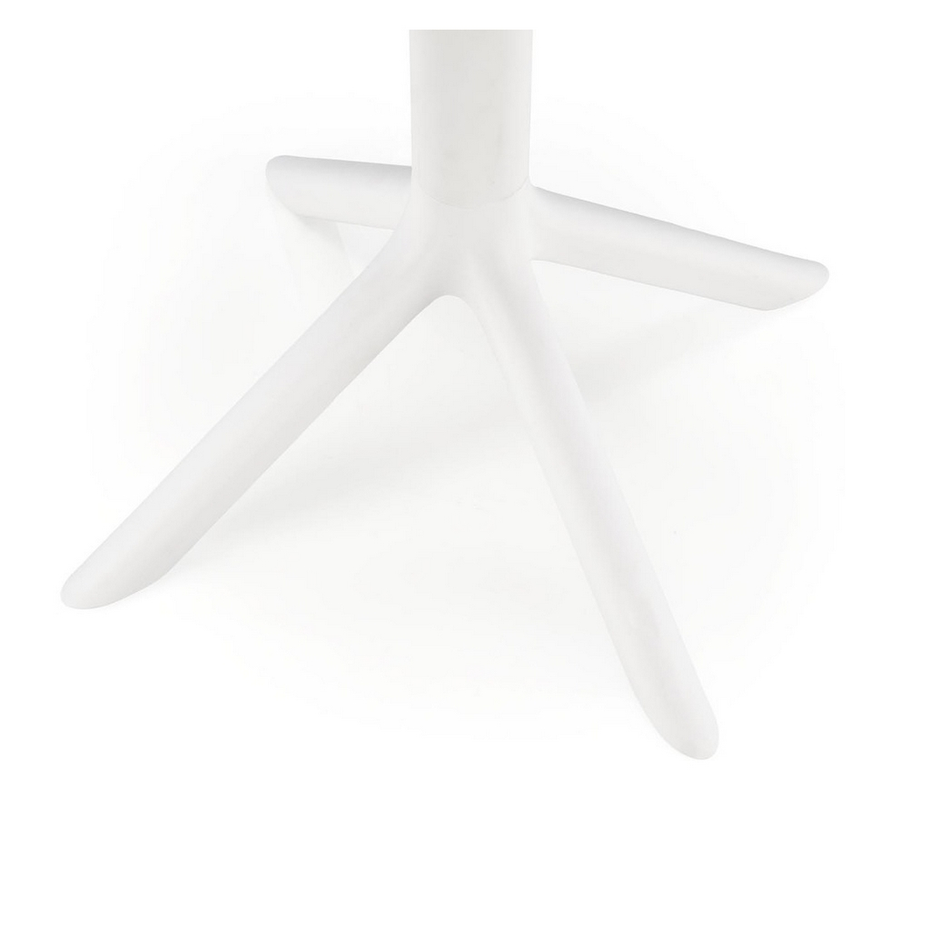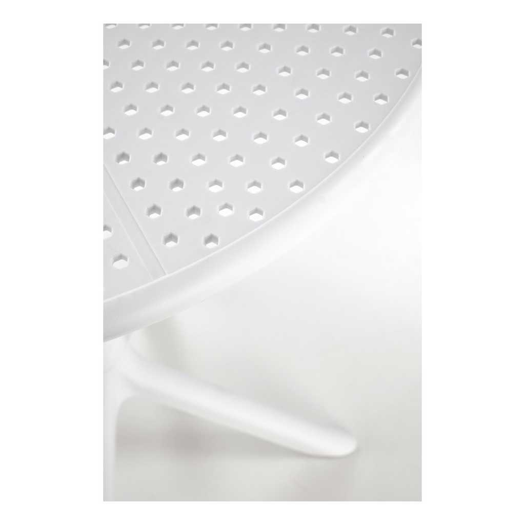 Okrúhla doska a podstava sú vyrobené z pevného plastu. Tento materiál je známy svojou trvanlivosťou, odolnosťou a v neposlednom rade veľmi jednoduchou údržbou. Stačí pár pohladení vlhkou handričkou a stôl je ako nový. Je vhodný aj na vonkajšie použitie.