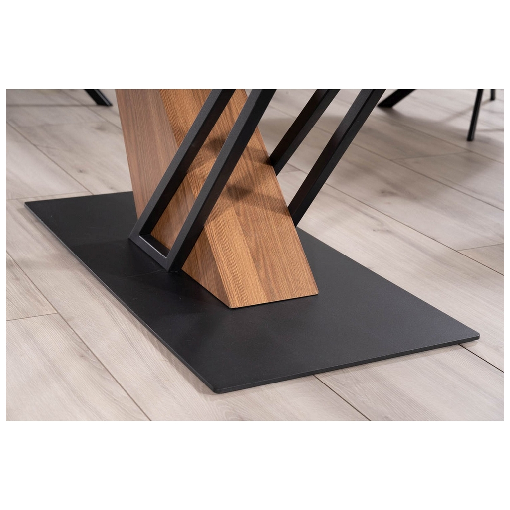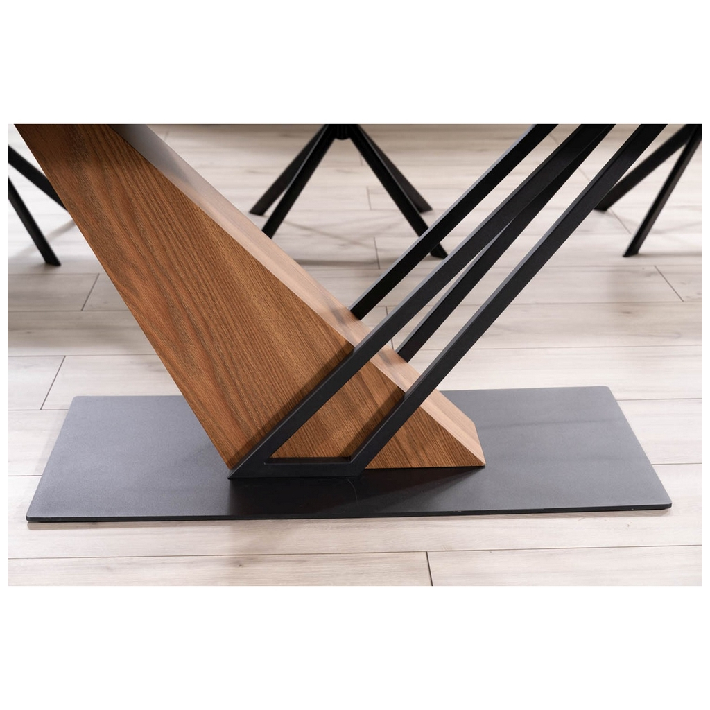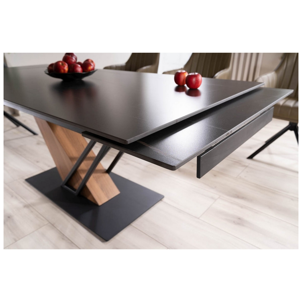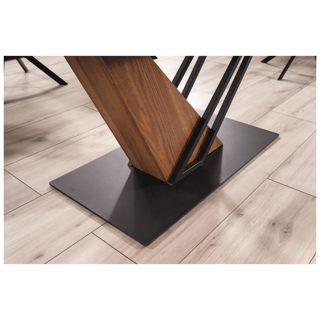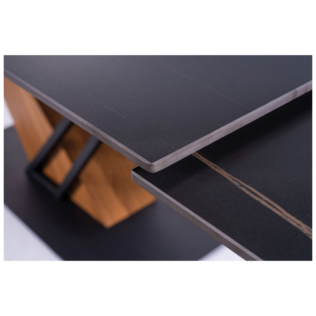 Doska stola je vyrobená z keramiky. Tá vytvára odolný, ale aj vizuálne úchvatný povrch. Efekt prepychu umocňuje dekor mramoru.