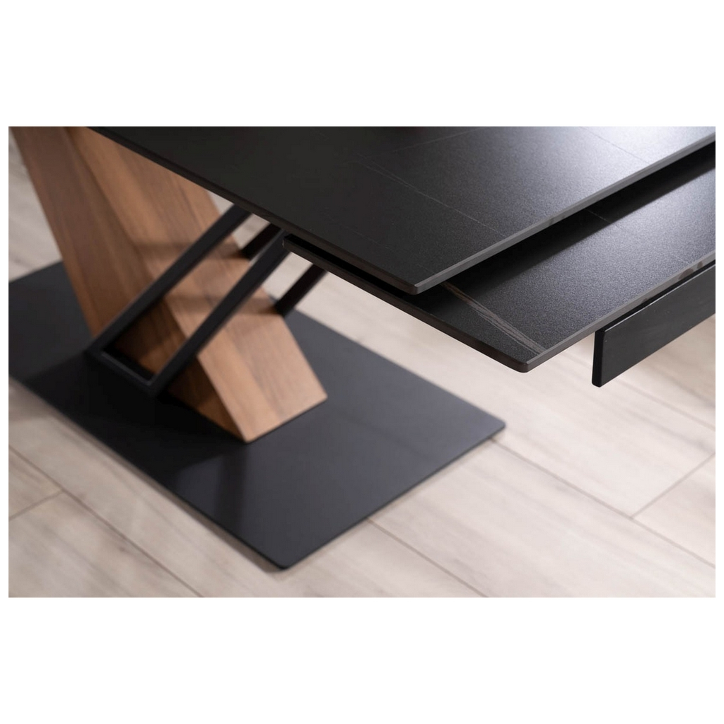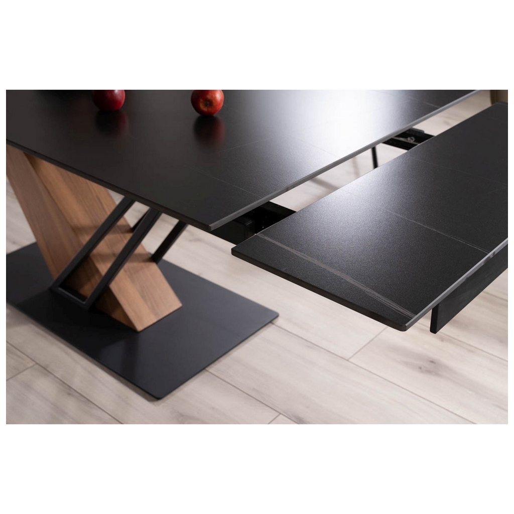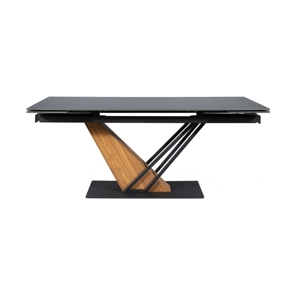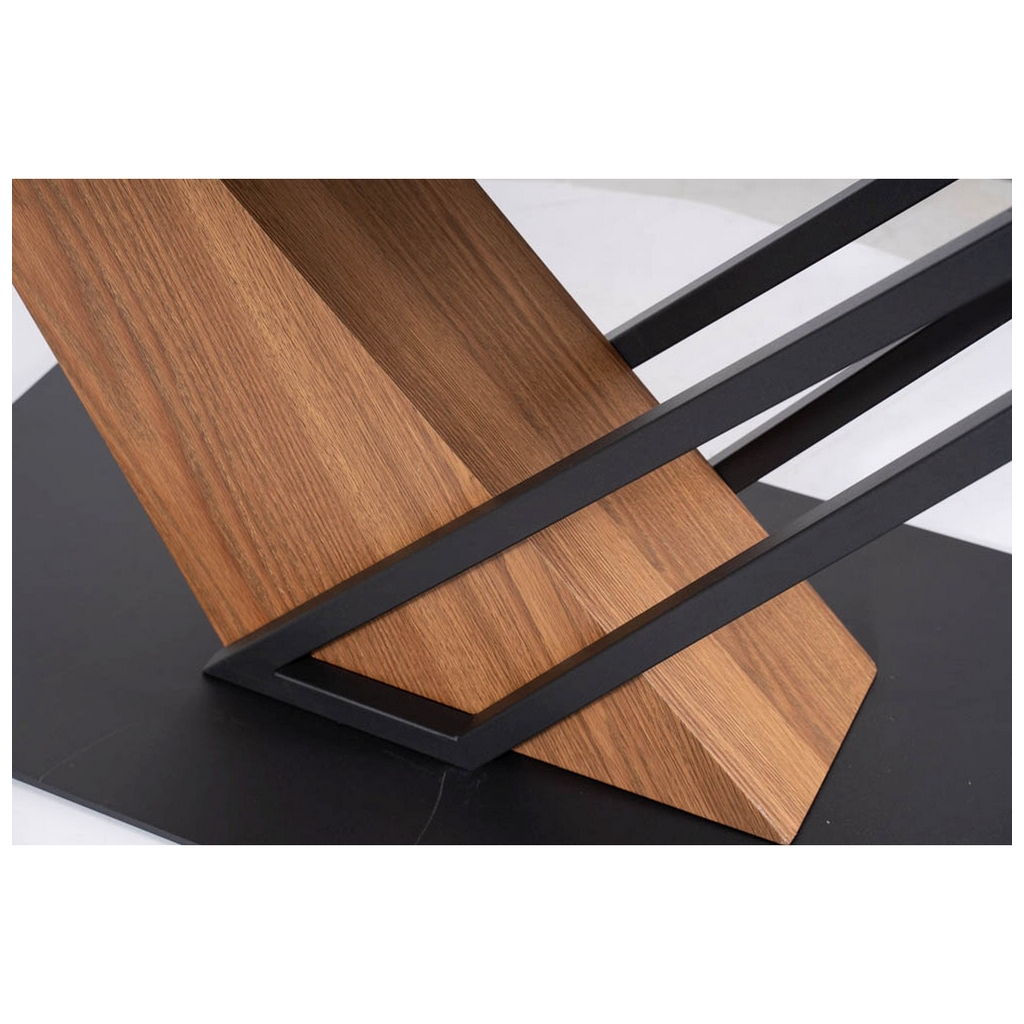 Doska stola je vyrobená z keramiky. Tá vytvára odolný, ale aj vizuálne úchvatný povrch. Efekt prepychu umocňuje dekor mramoru.