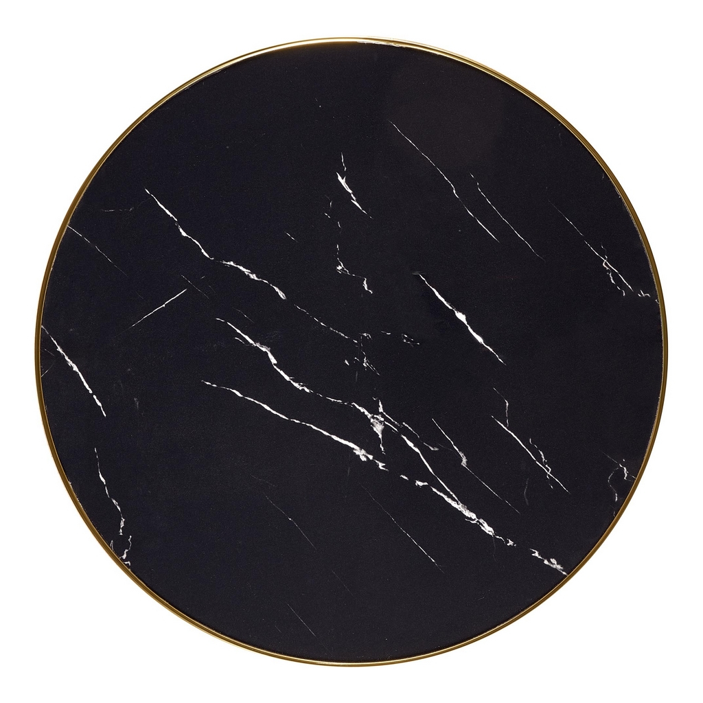 Kruhová doska má priemer 59 cm a je z keramiky s zaujímavou textúrou čierneho mramoru. Pred poškodením ju chráni ochranný lem z chrómovanej ocele vo zlatom lesku.