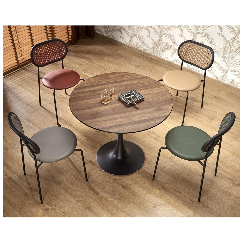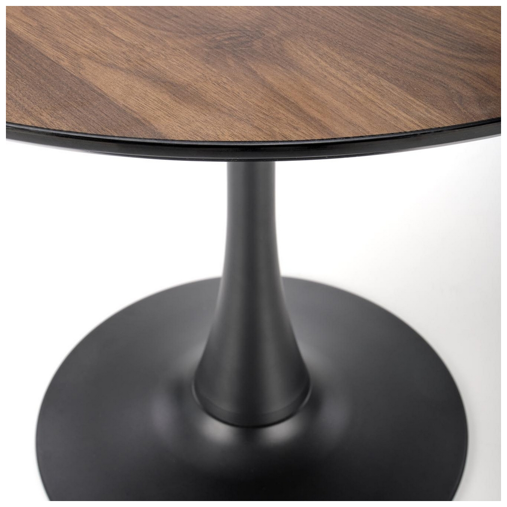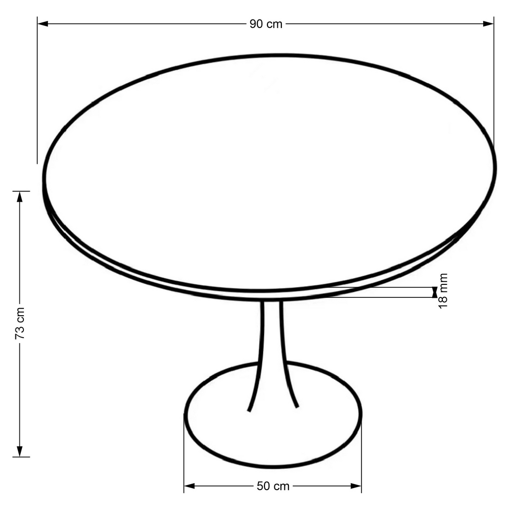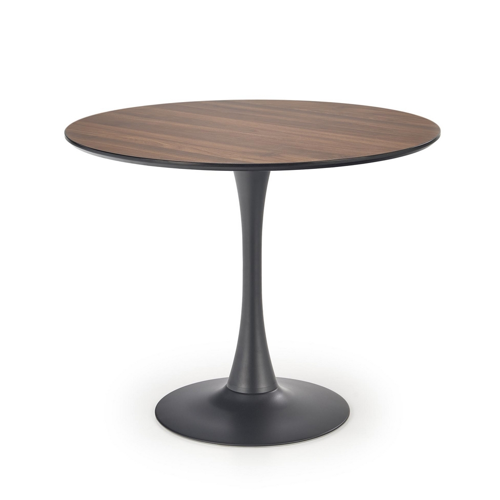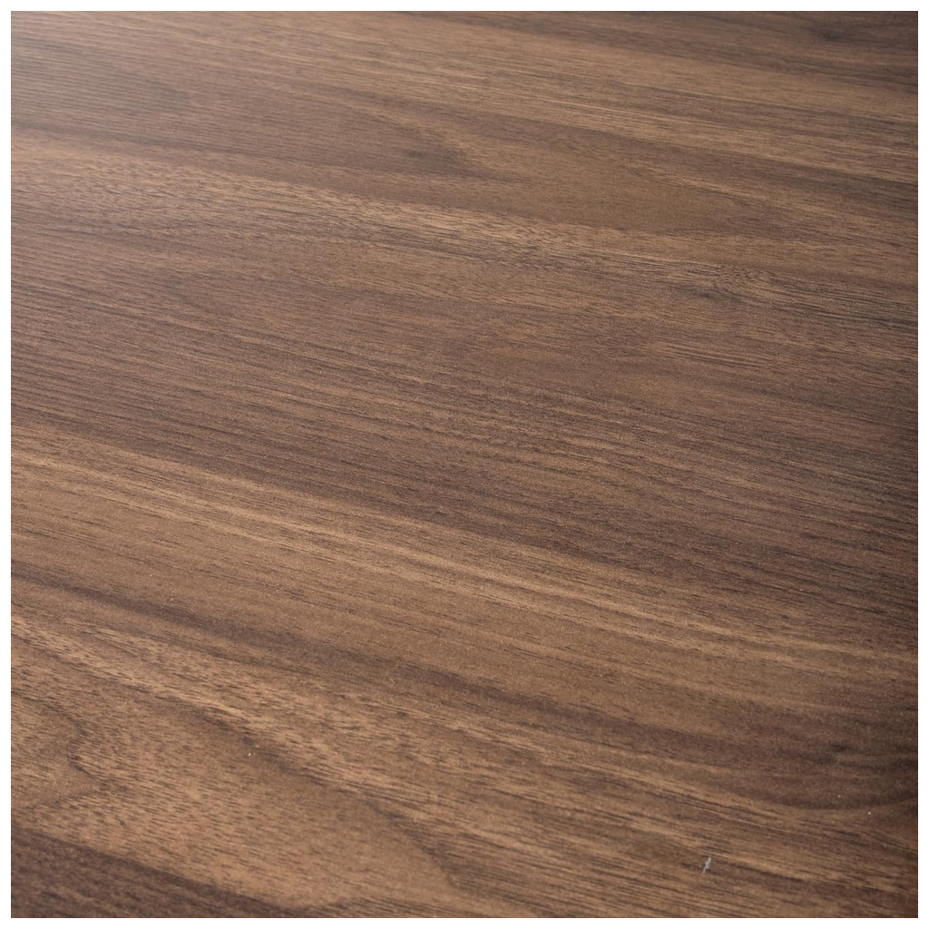 Doska stola je z 18 mm hrubého dyhovaného drevovlákna (MDF) v dezéne orecha. Doska je vo výške 73 cm a jej priemer je 90 cm. Pri stole tejto veľkosti sa pohodlne naobedujú až 3 ľudia, s kávou sa vás k nemu ale zmestí aj viac.