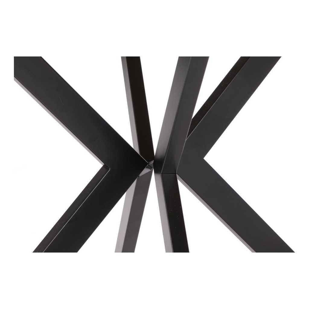 Podnož stola tvoria 4 prekrížené nohy z pevnej ocele s práškovým nástrekom. Tieto nohy majú zaujímavý vzdušný tvar, ktorý dodáva stolu nielen stabilitu, ale aj jedinečný vizuálny charakter. Oceľová konštrukcia dokonale kontrastuje s doskou stola, čím vytvára sofistikovaný a zároveň moderný vzhľad.
